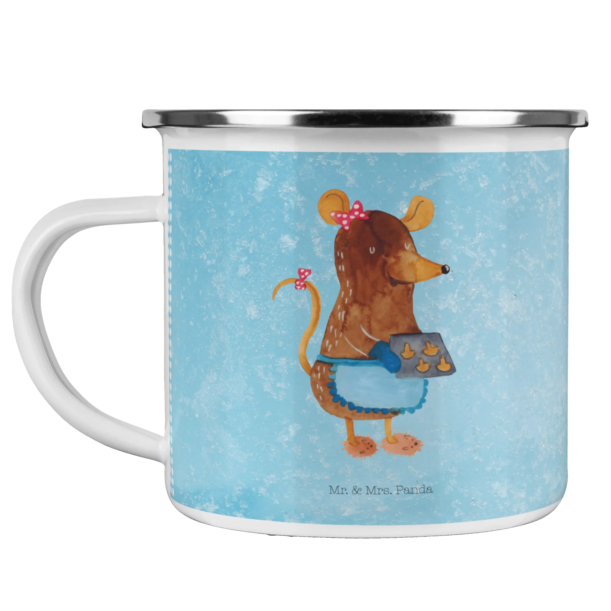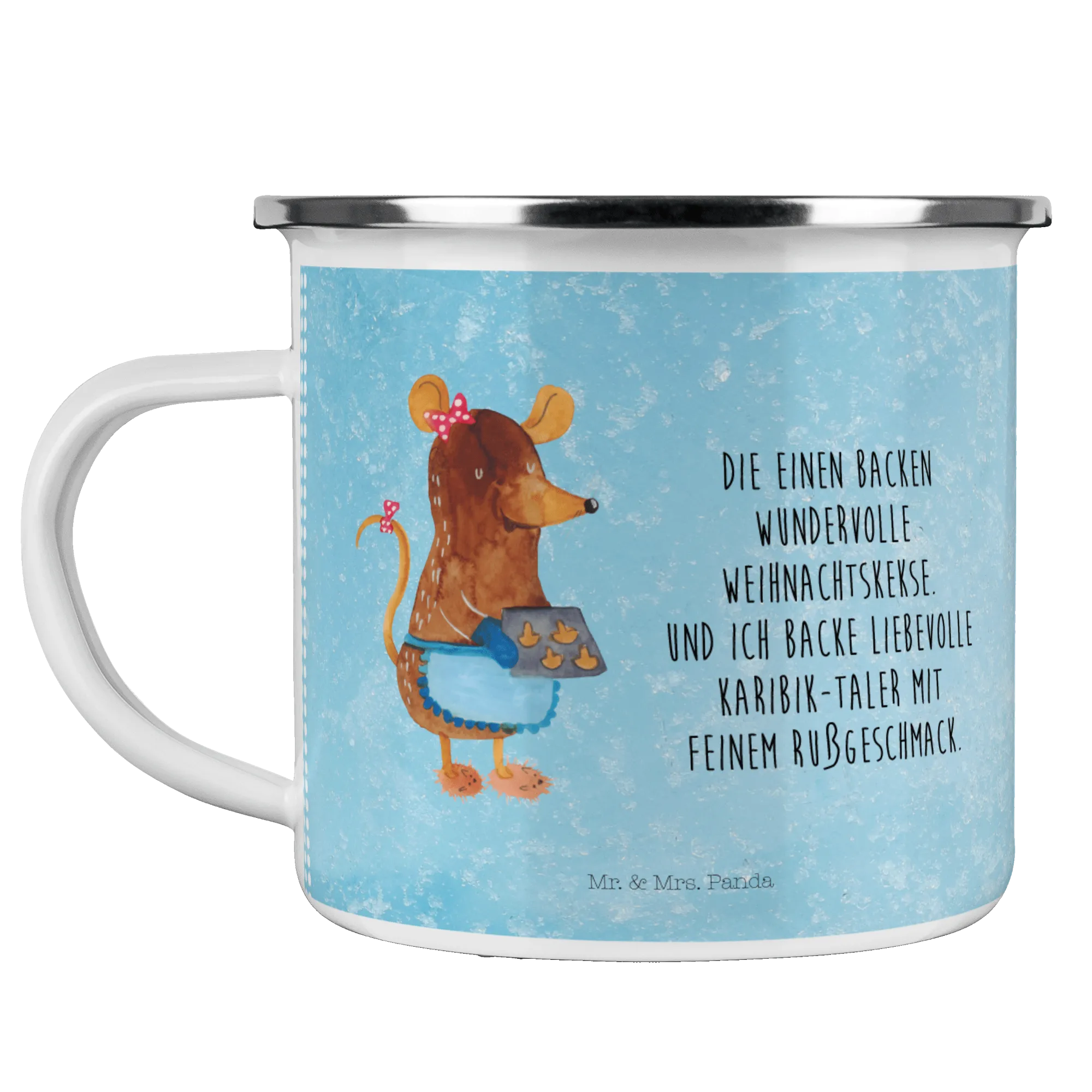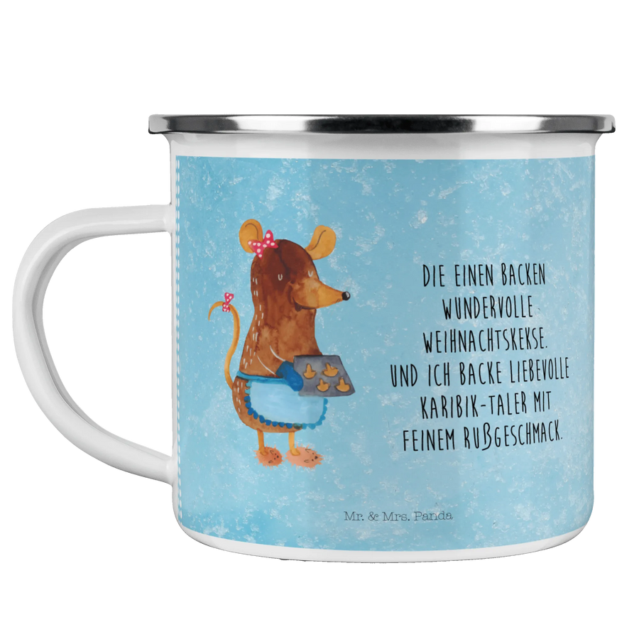 Kempingowy kubek emaliowany Mysz ciastka - z napisem - Eisblau