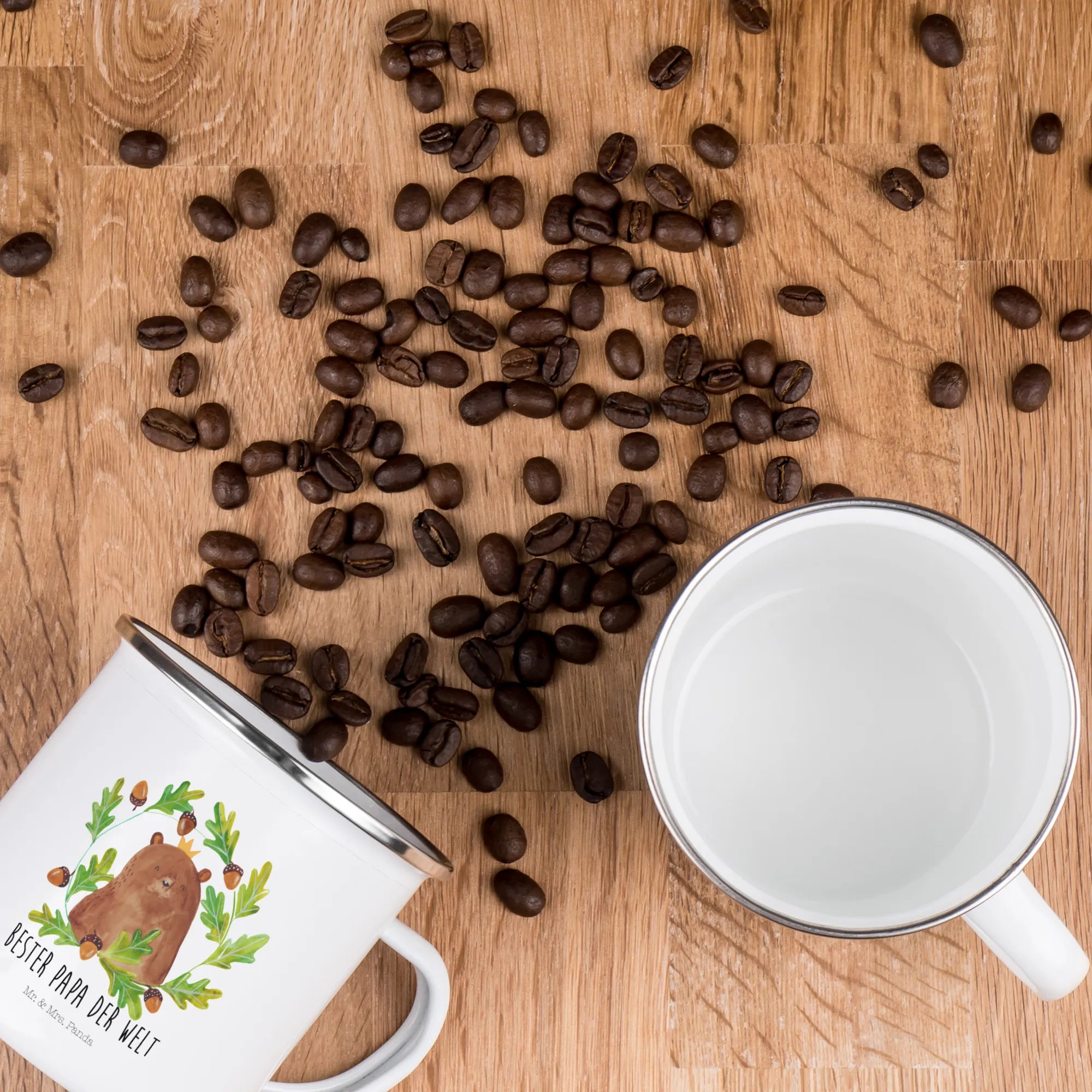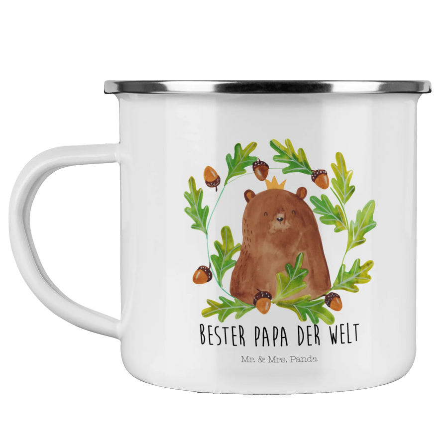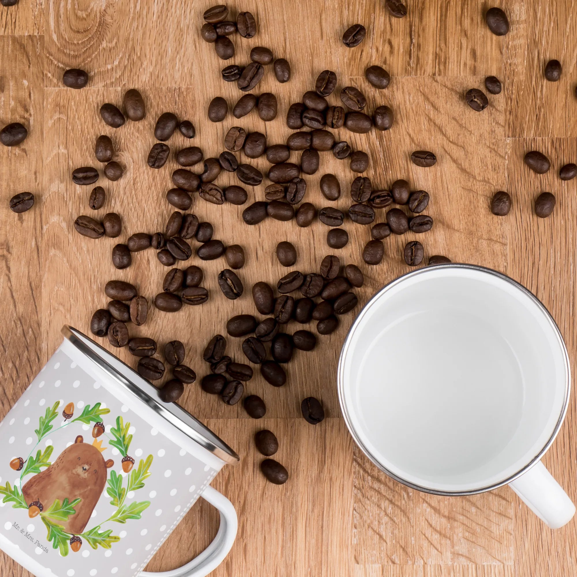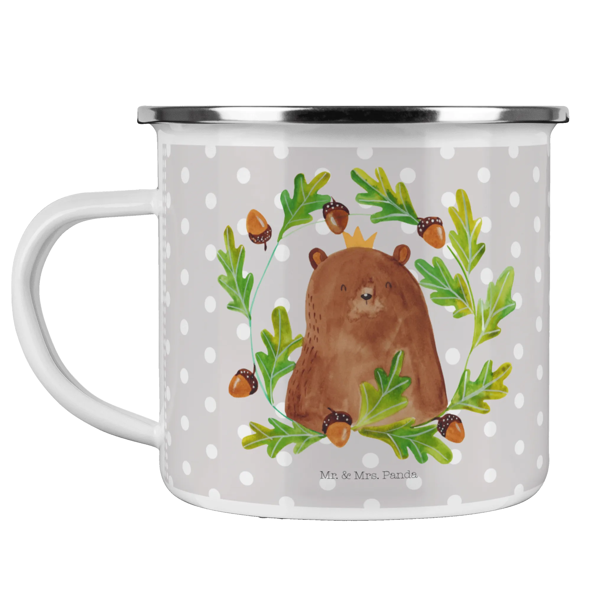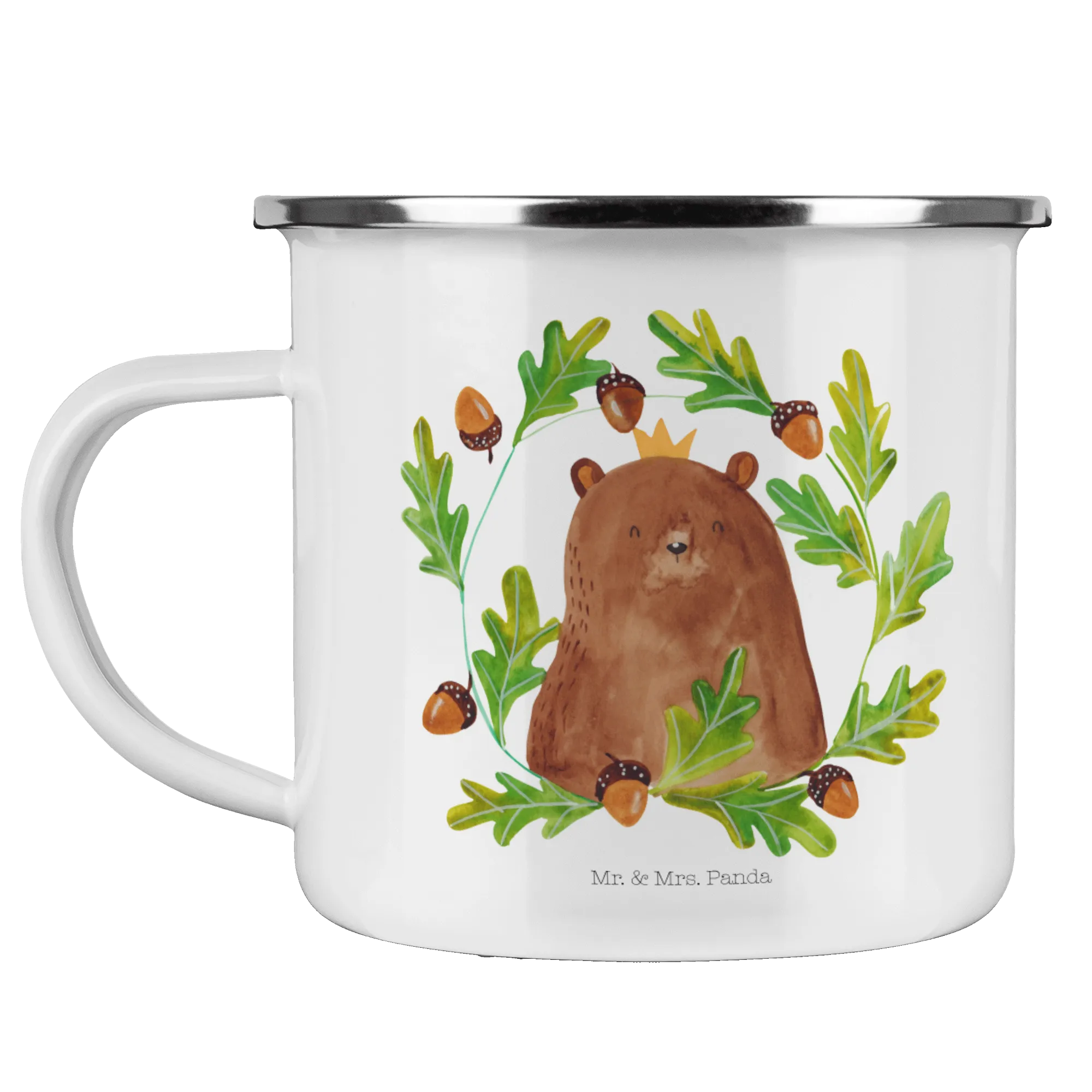 Kempingowy kubek emaliowany Niedźwiedź król - z napisem - Biały