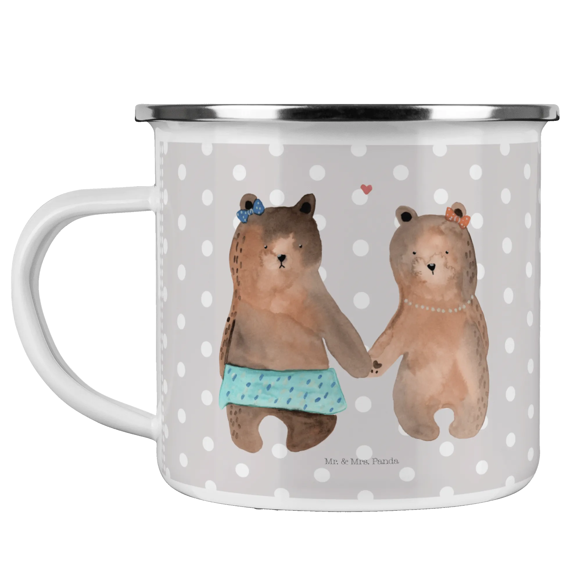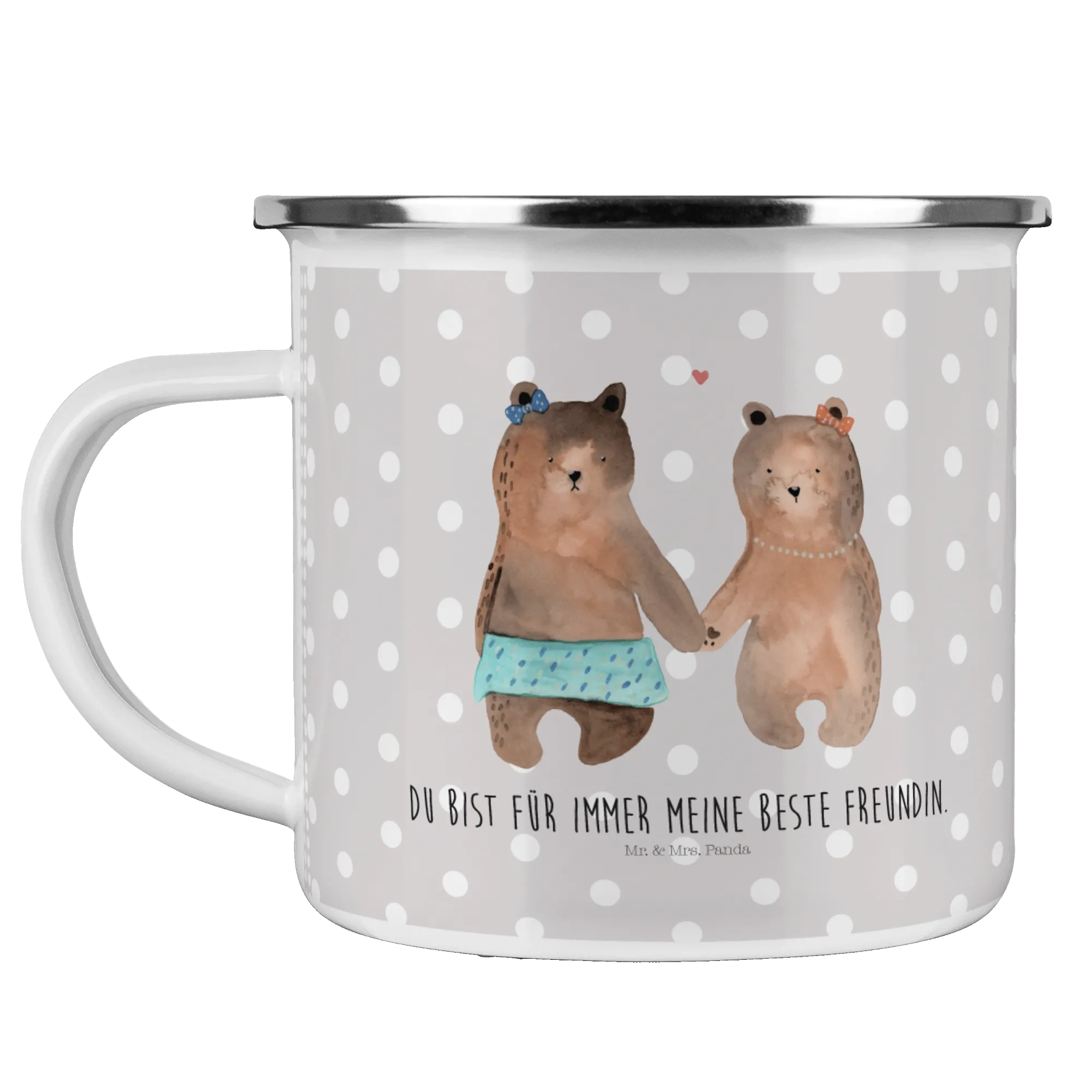 Kempingowy kubek emaliowany Niedźwiedź przyjaciółka - z napisem - biały