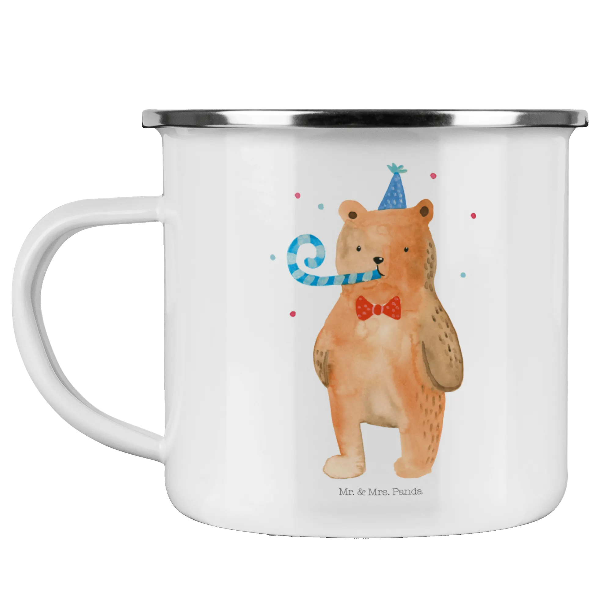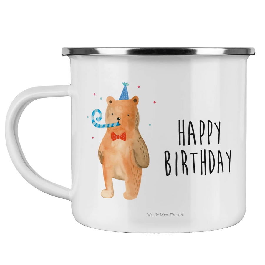 Kempingowy kubek emaliowany Niedźwiedź urodziny - z napisem - Biały