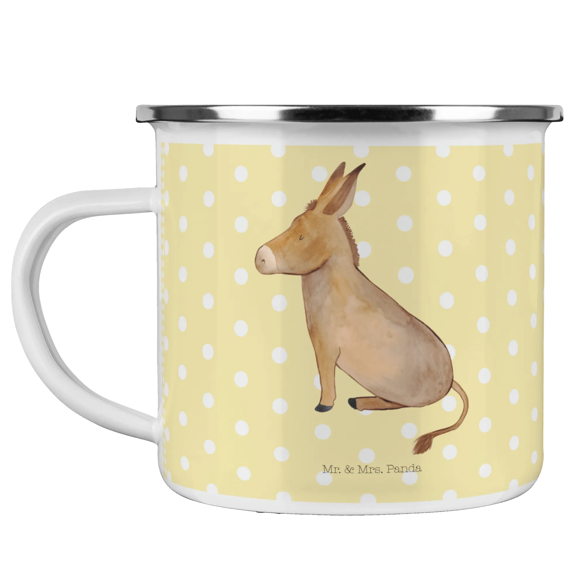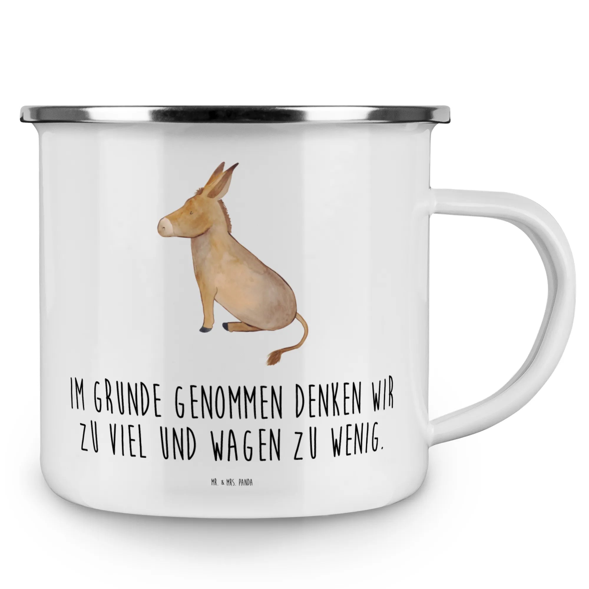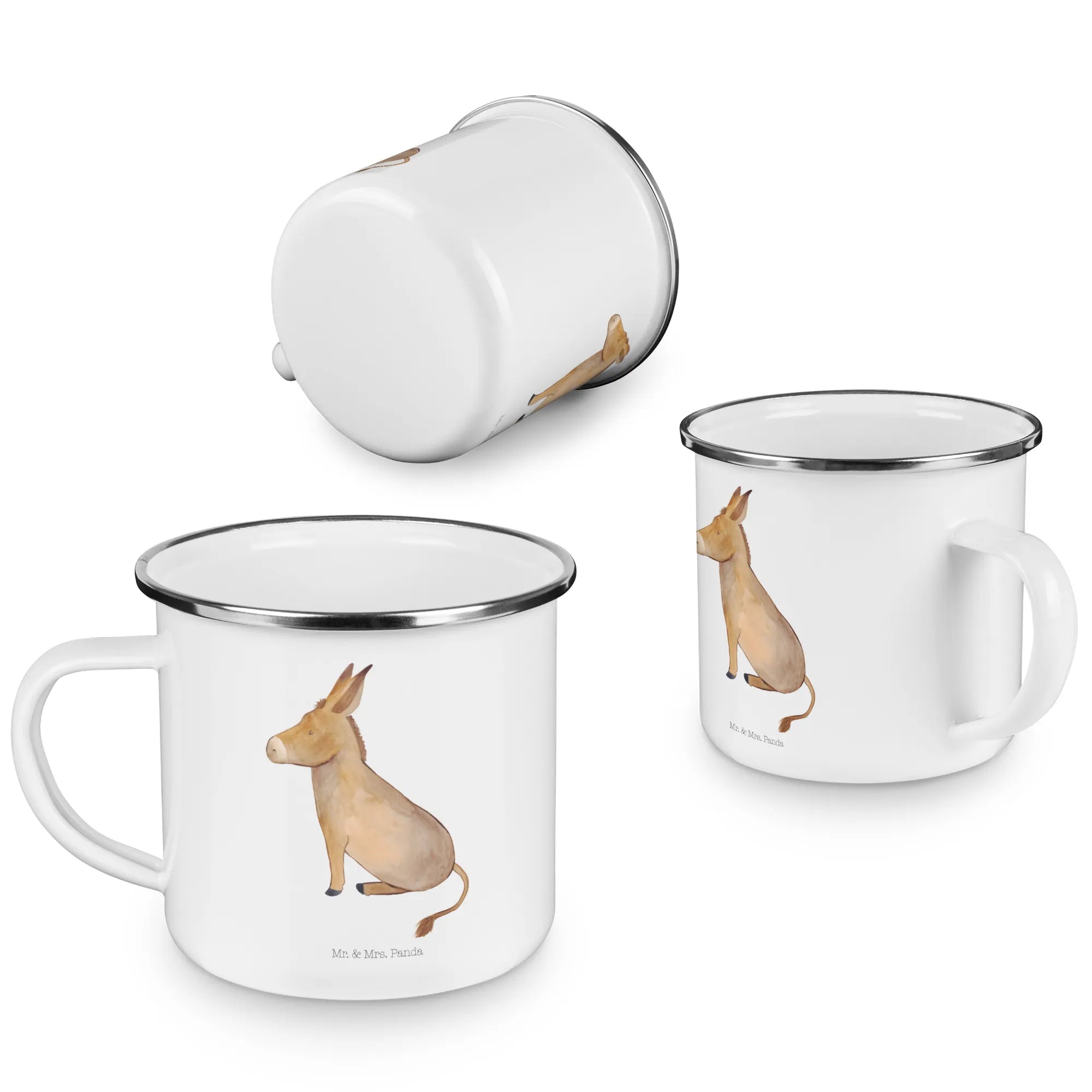 Kempingowy kubek emaliowany Osioł - z napisem - biały