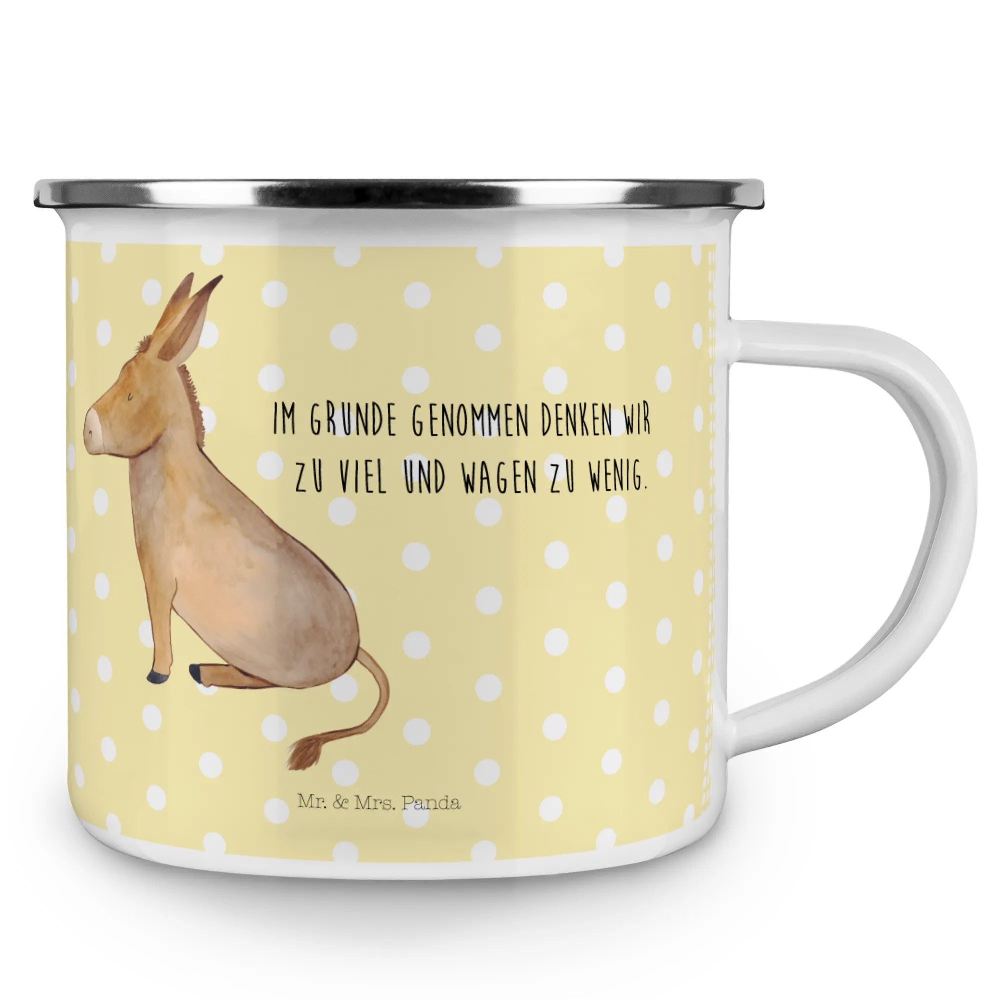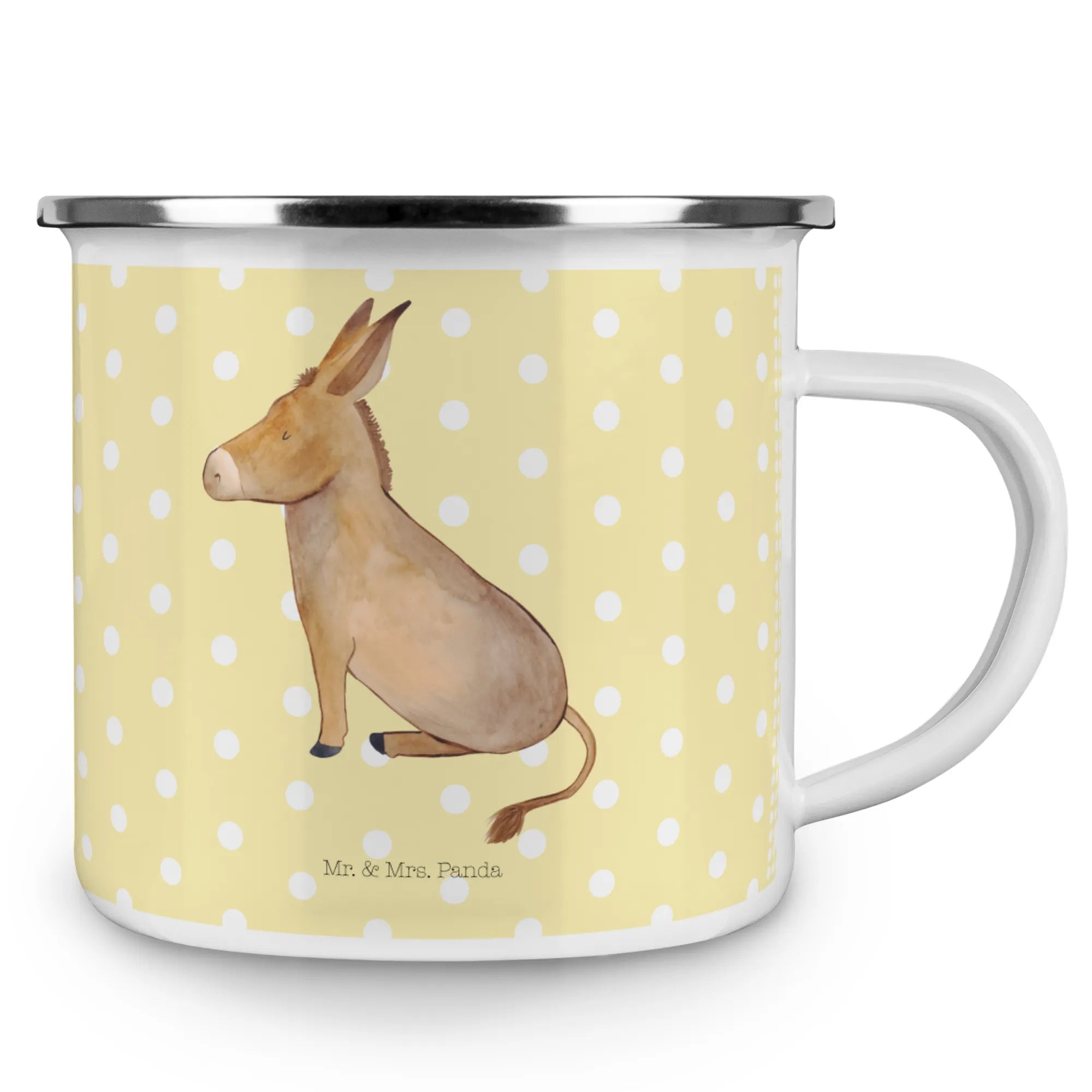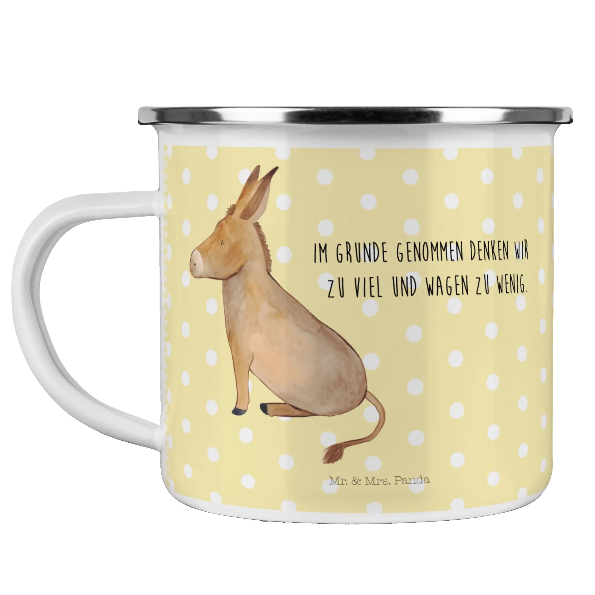 Kempingowy kubek emaliowany Osioł - z napisem - biały