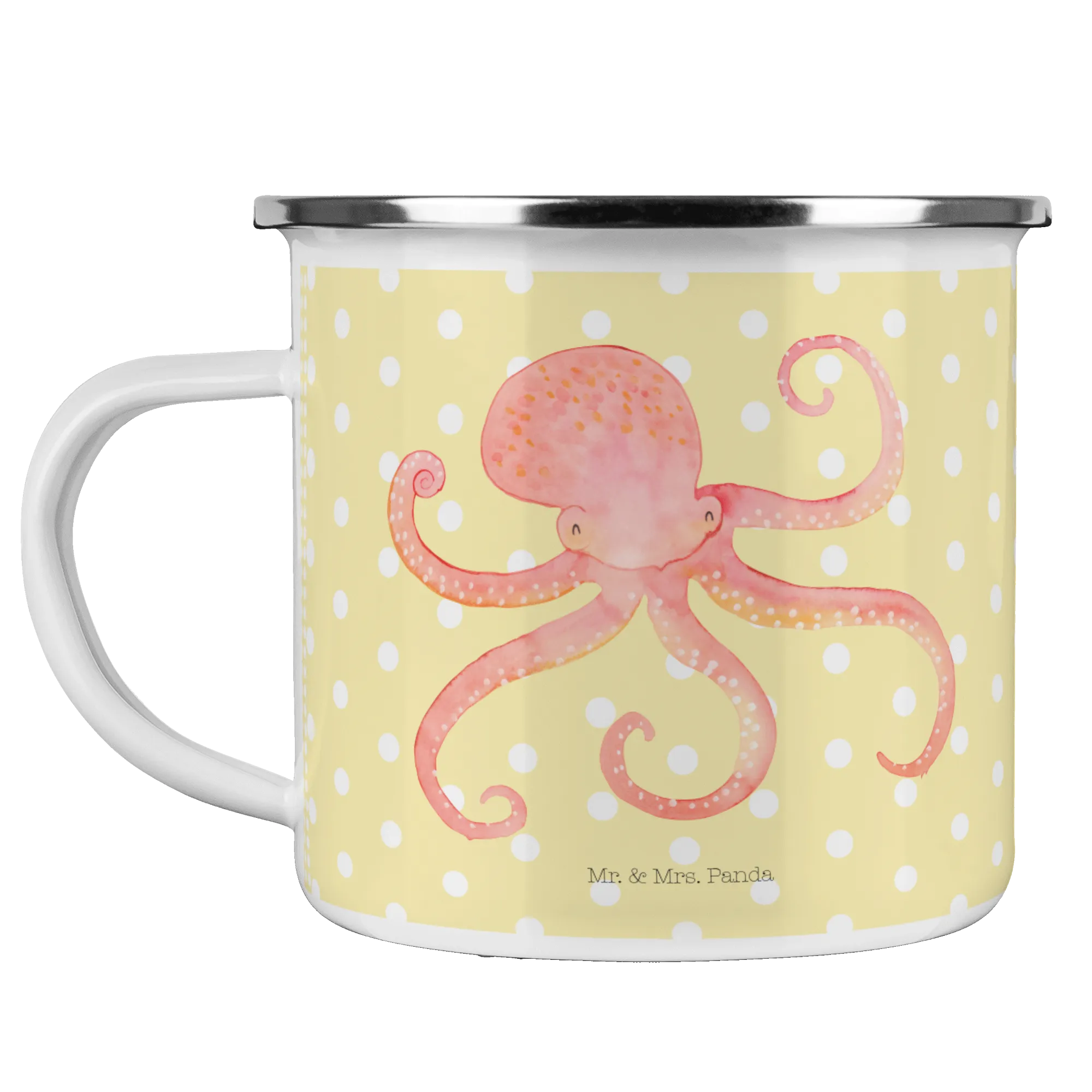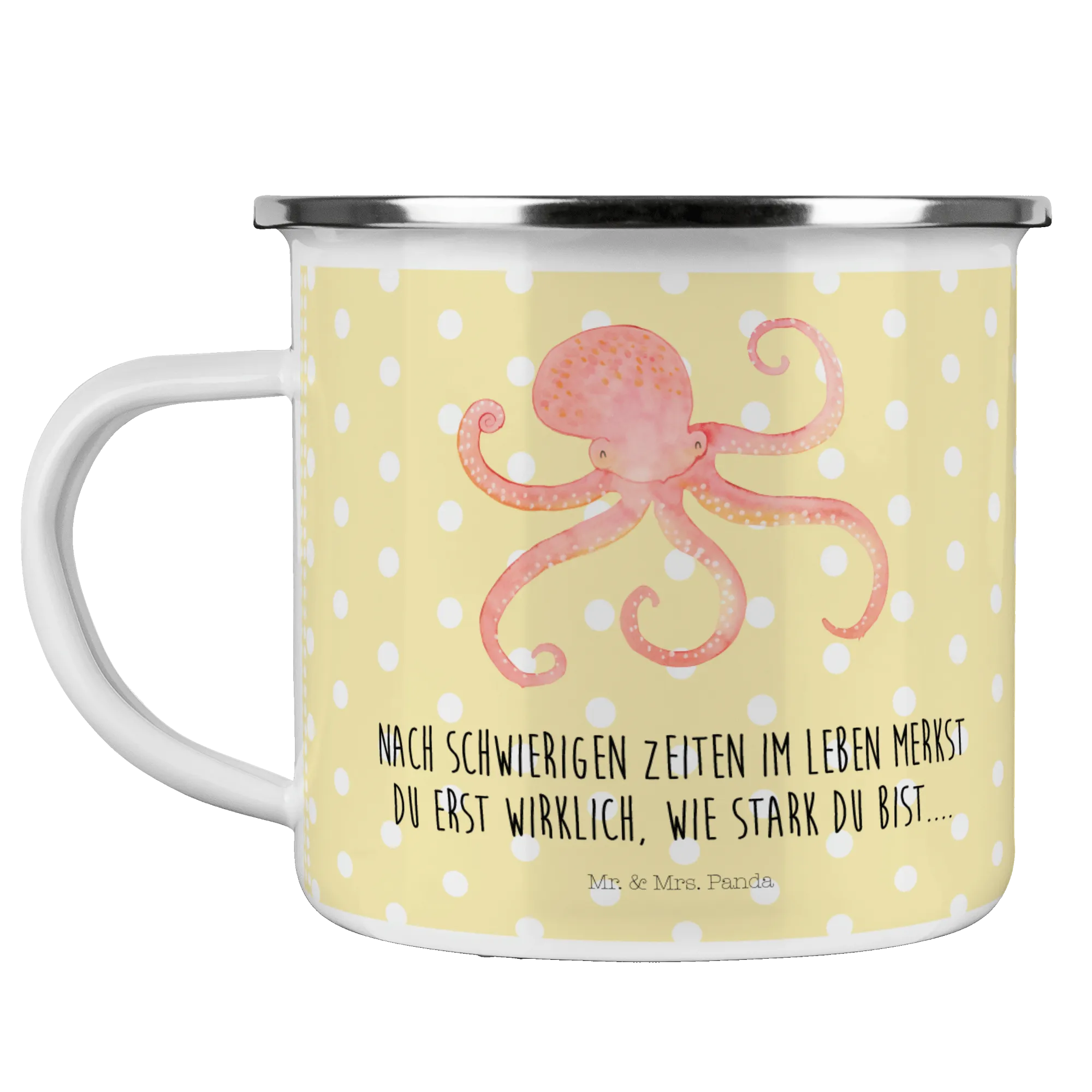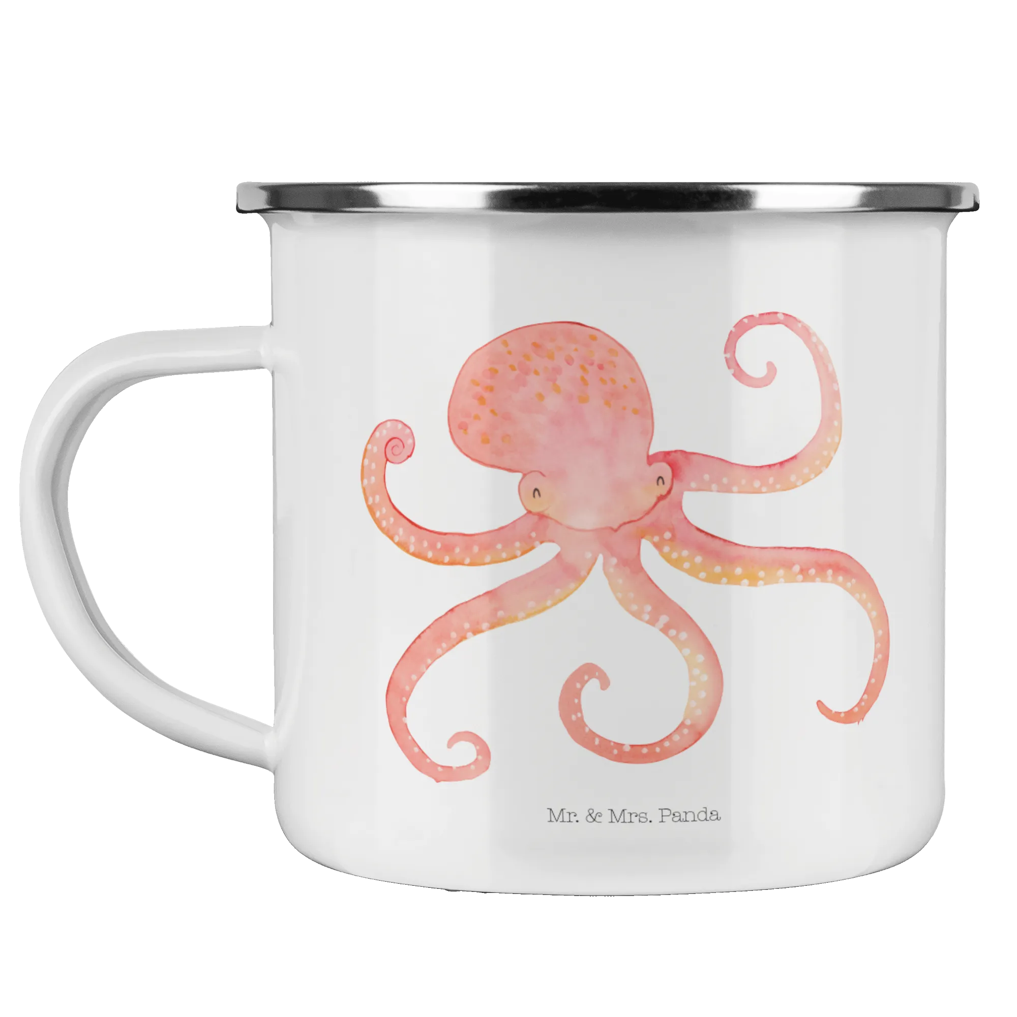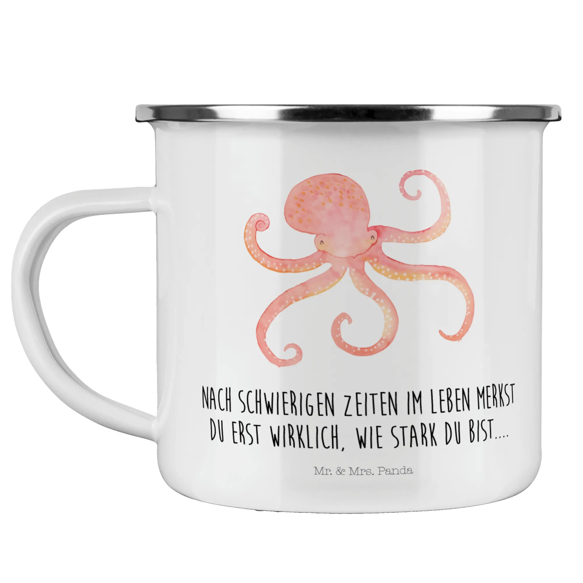 Kempingowy kubek emaliowany Ośmiornica - z napisem - Biały