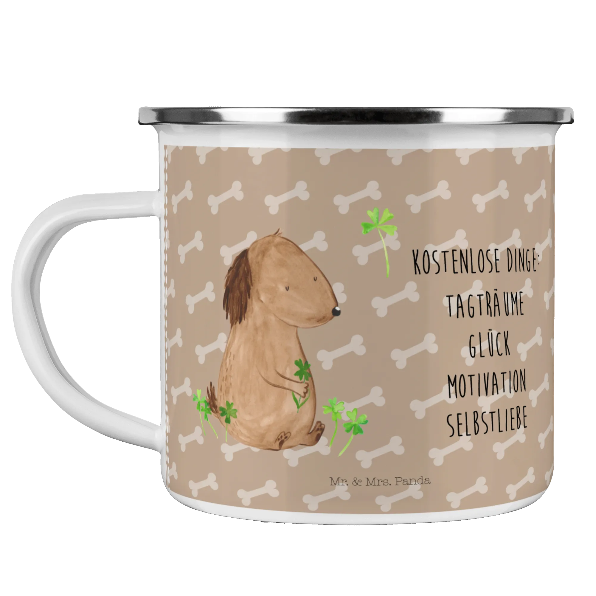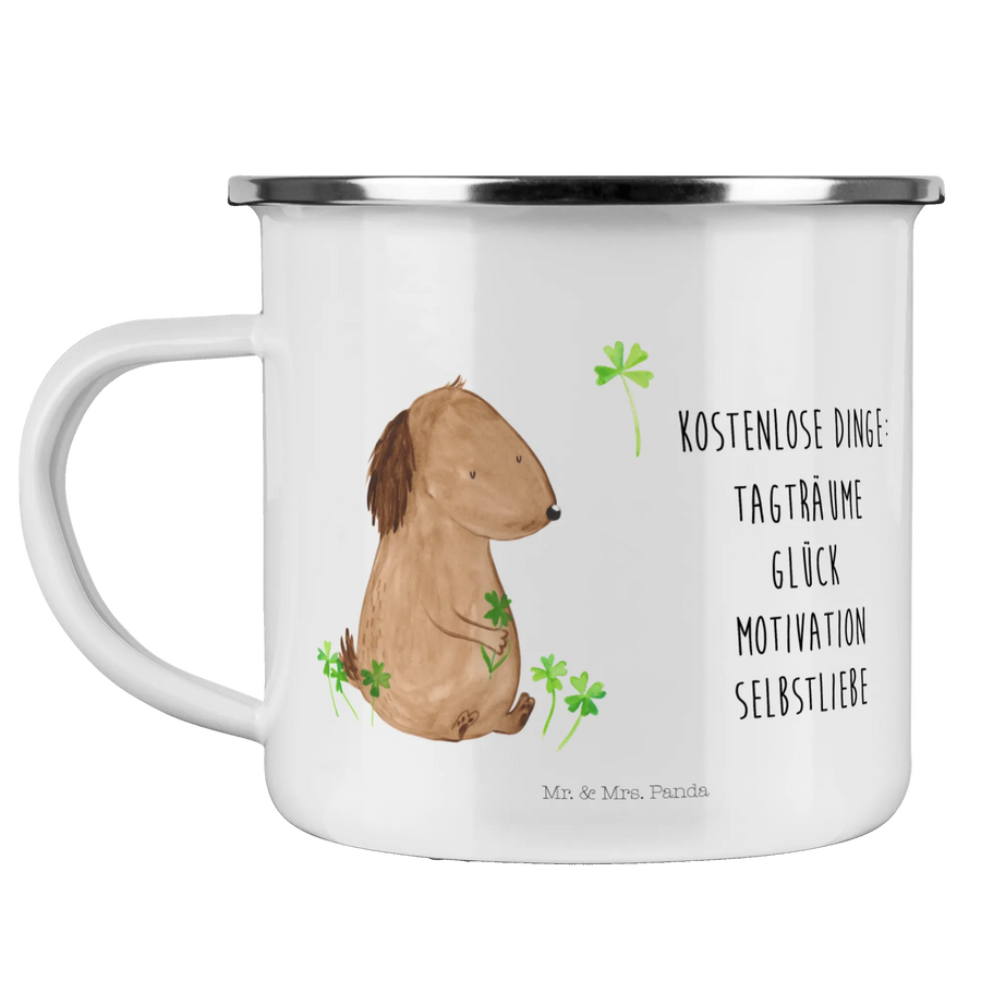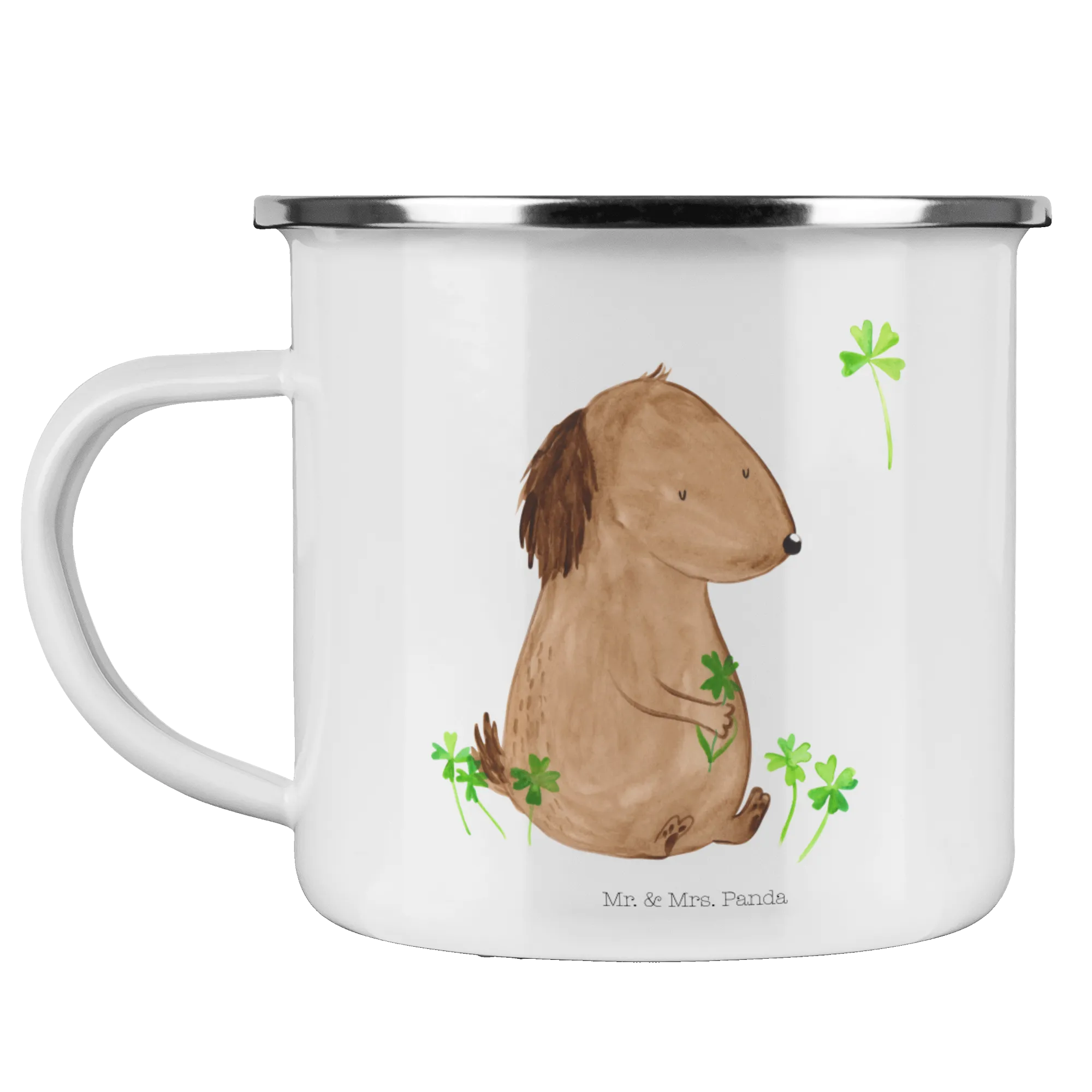 Kempingowy kubek emaliowany pies koniczyna - z napisem - Biały