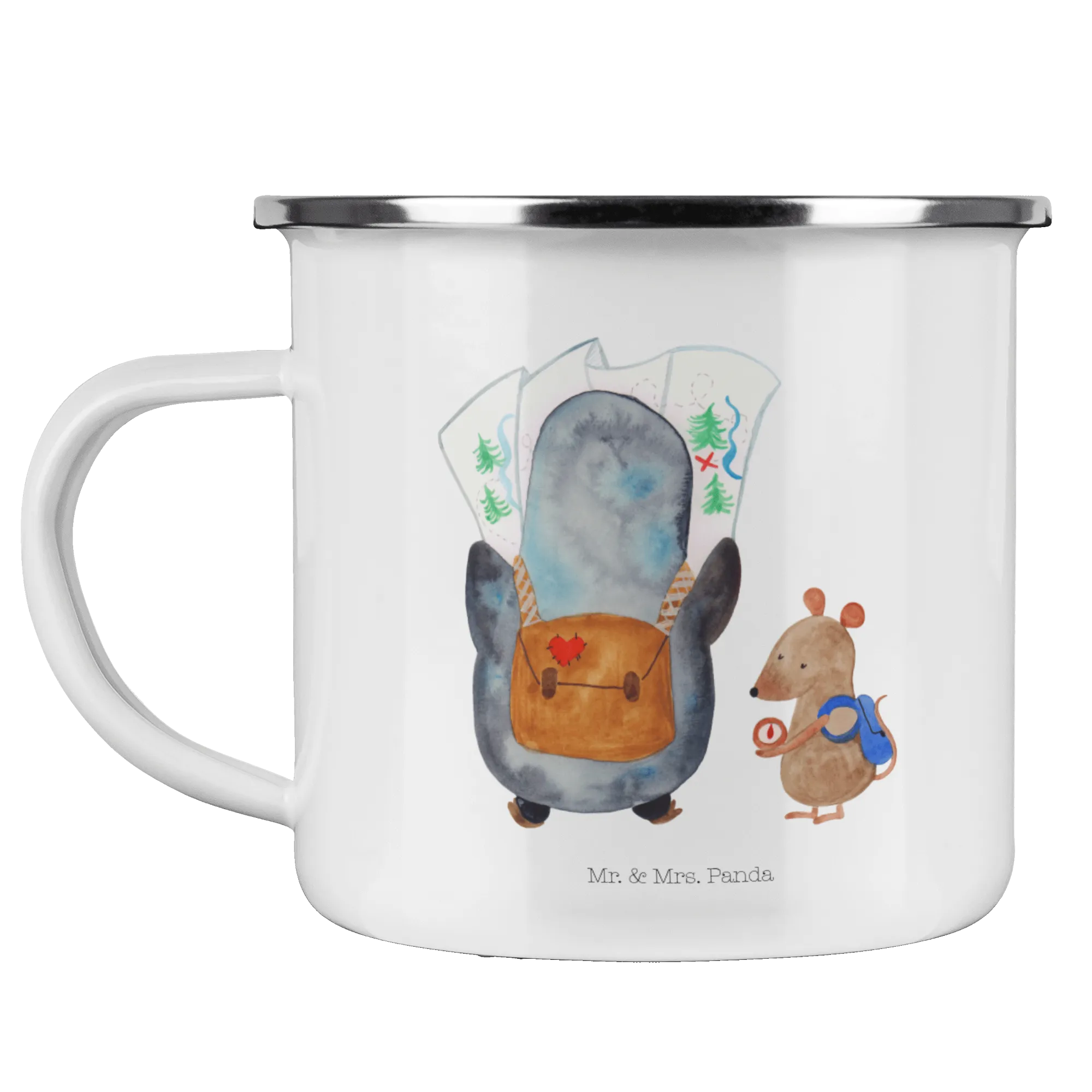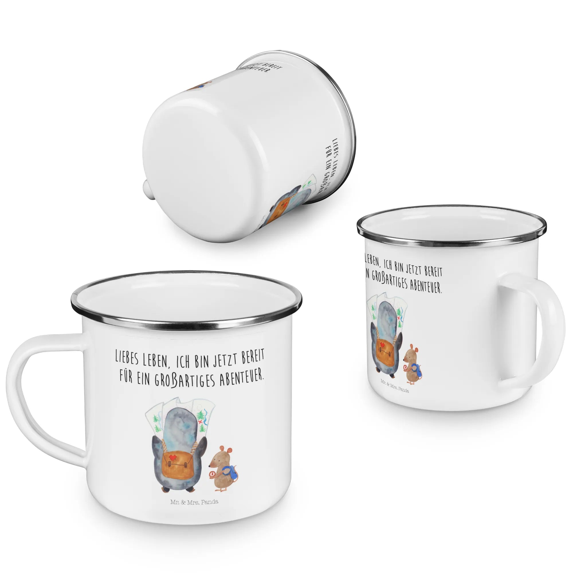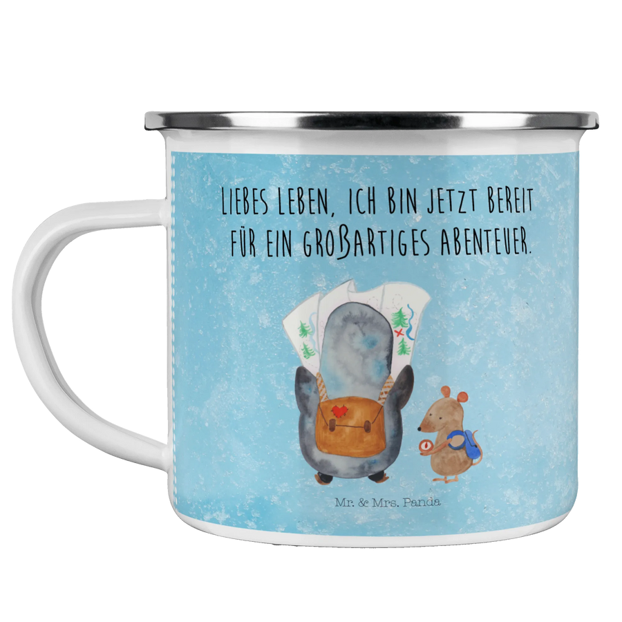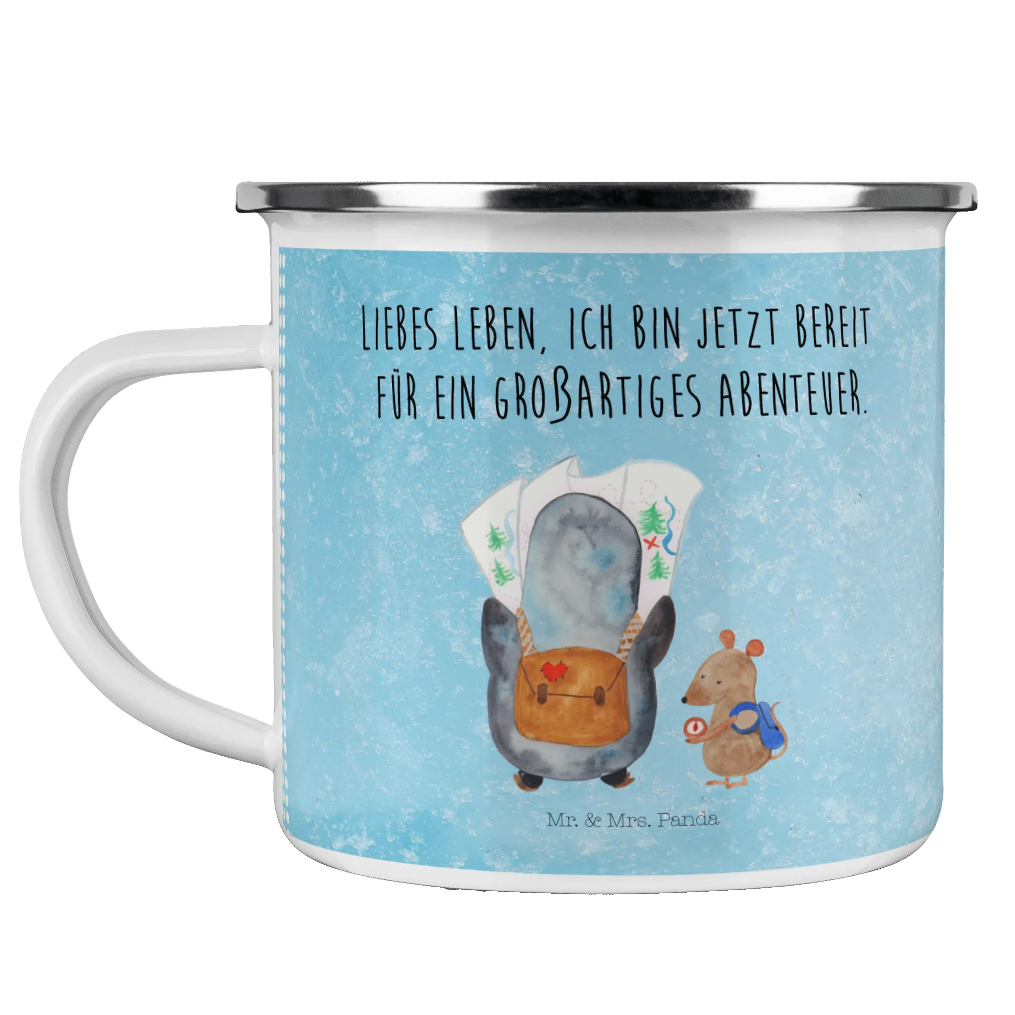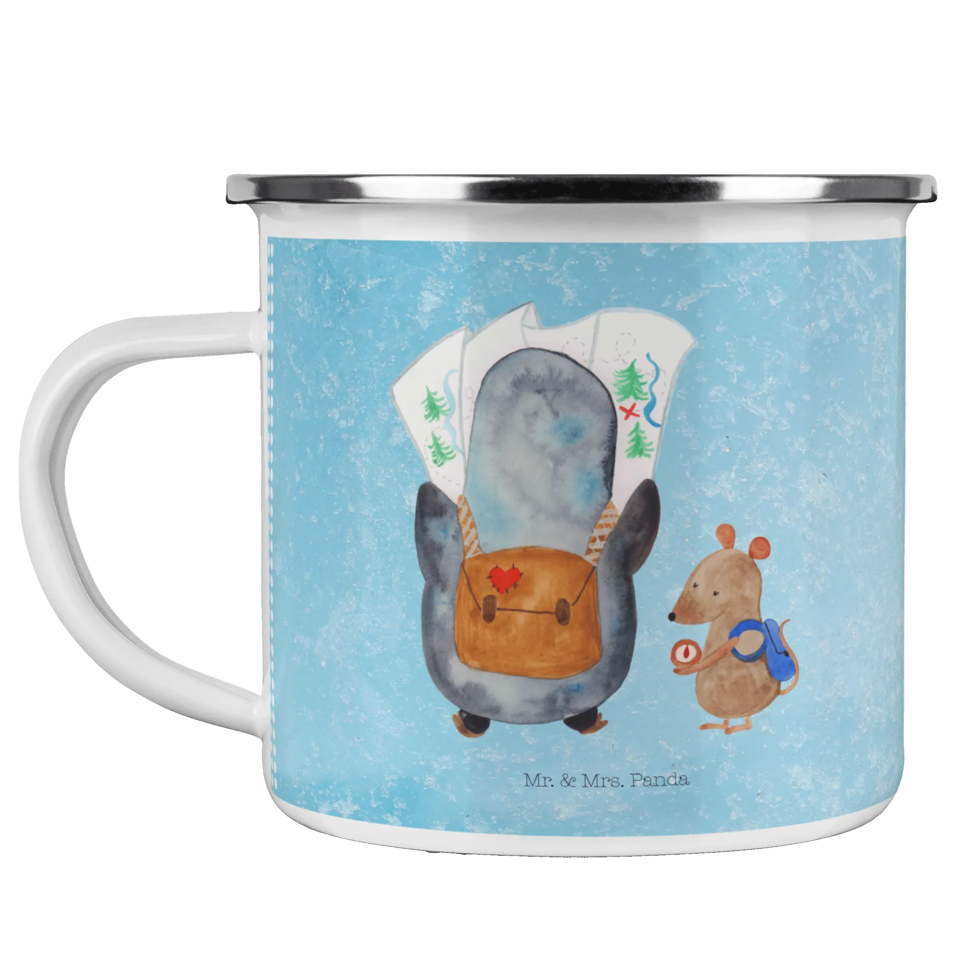 Kempingowy kubek emaliowany Pingwin i Mysz Wędrowcy - z napisem - lodowoniebieski