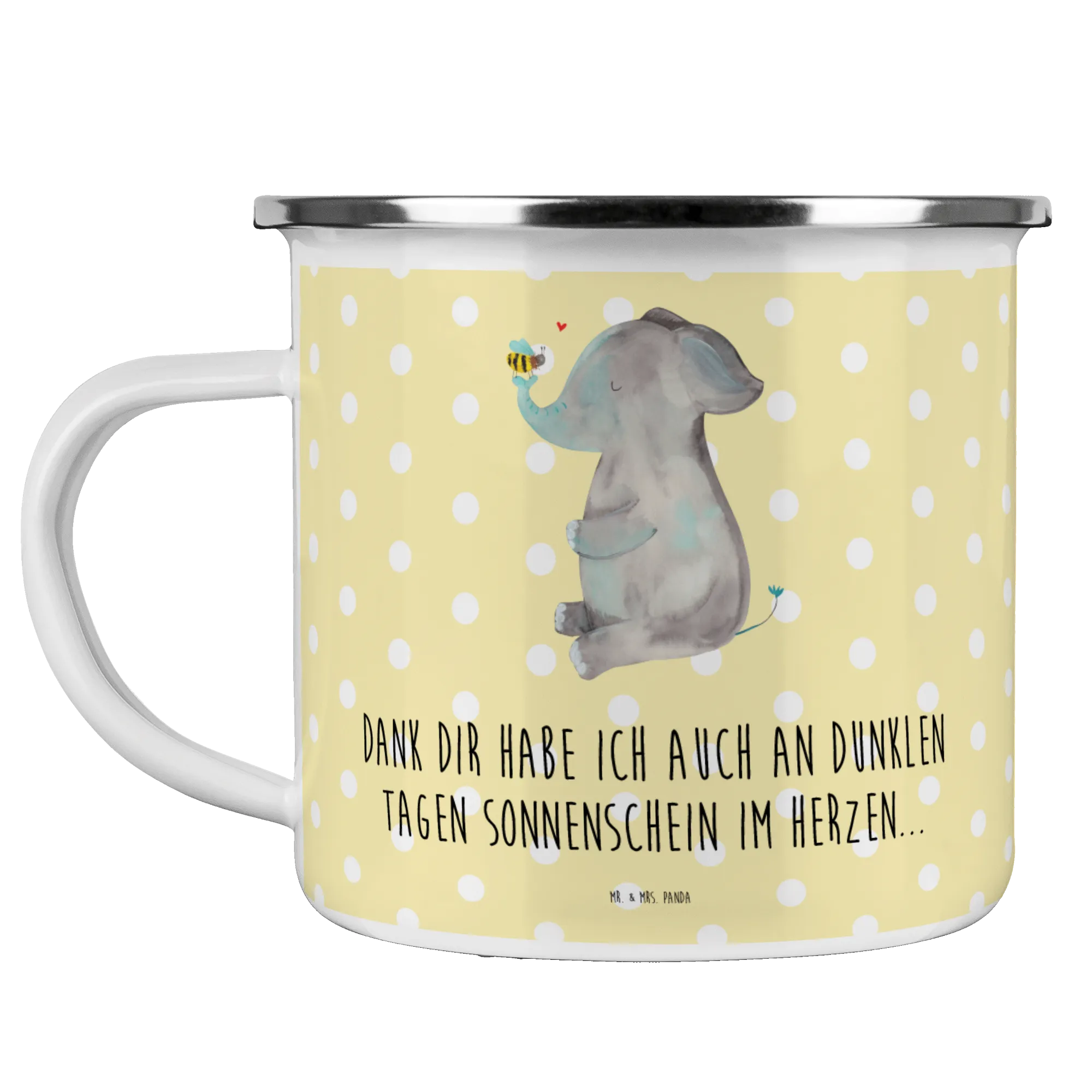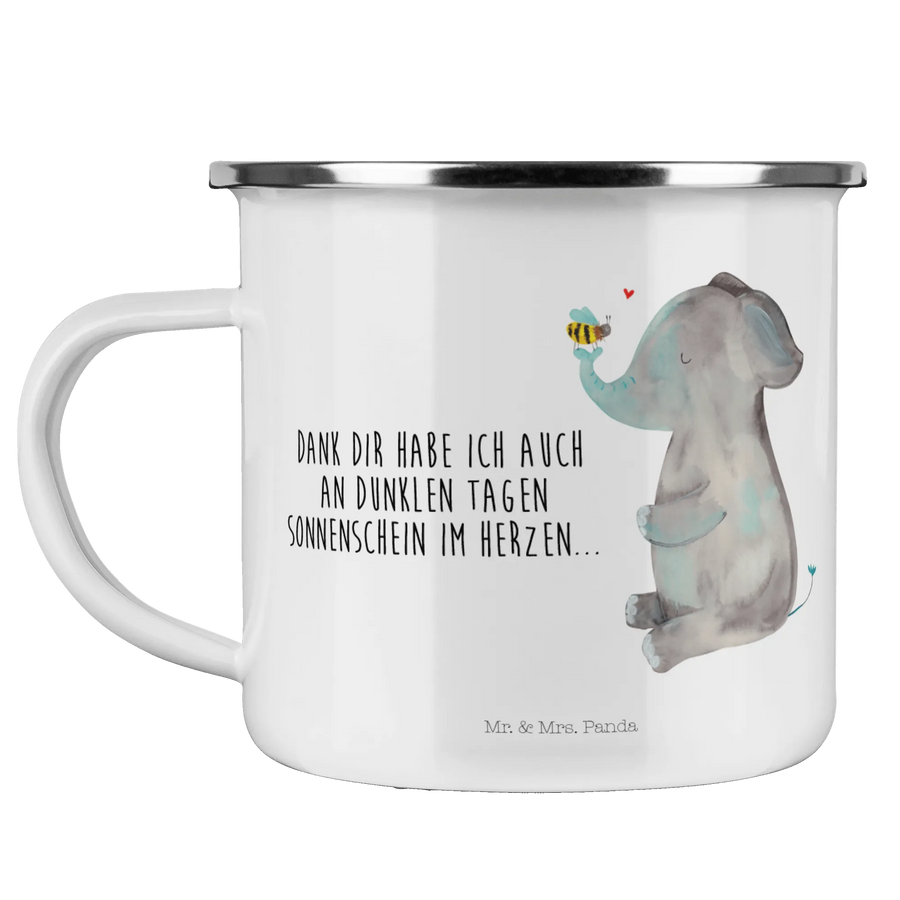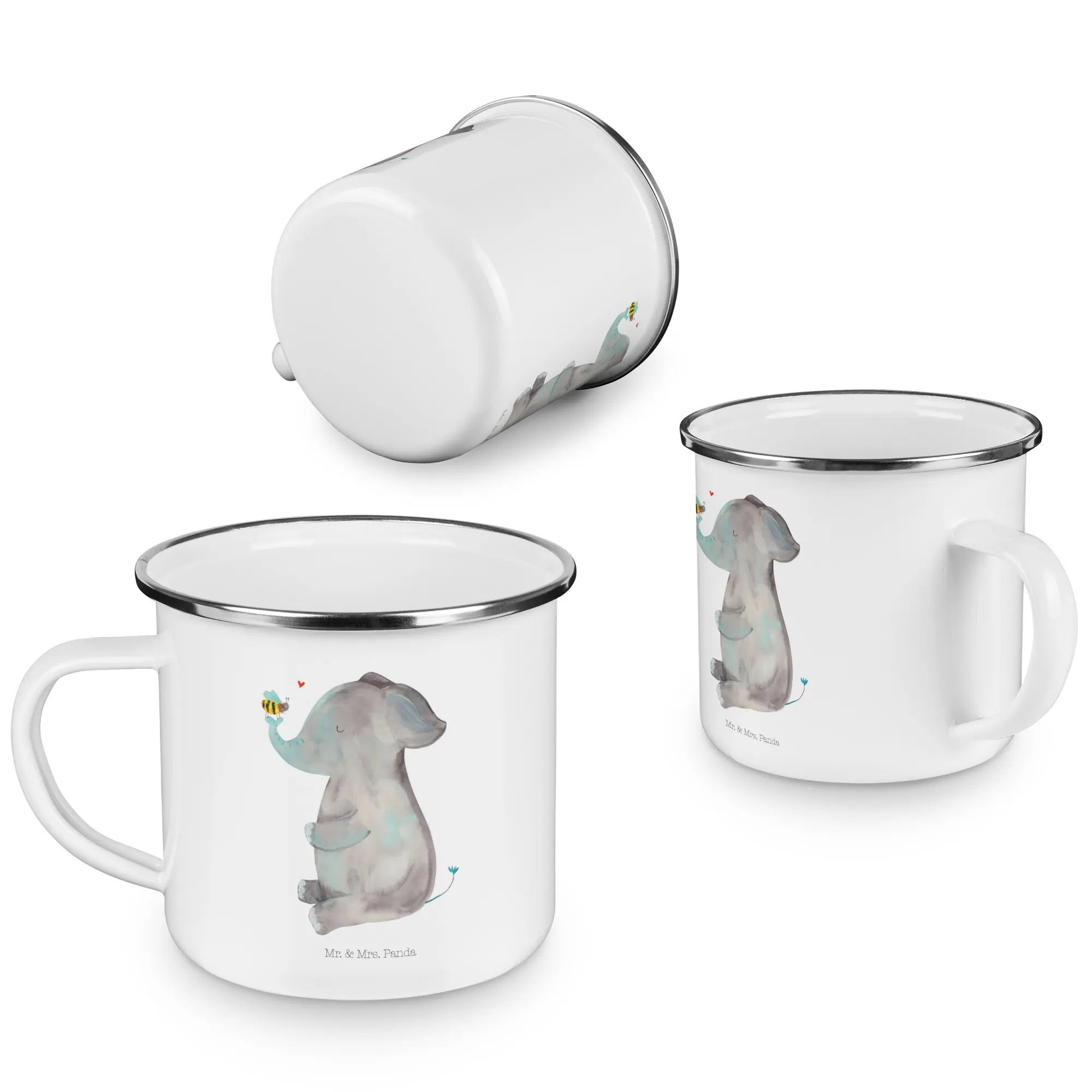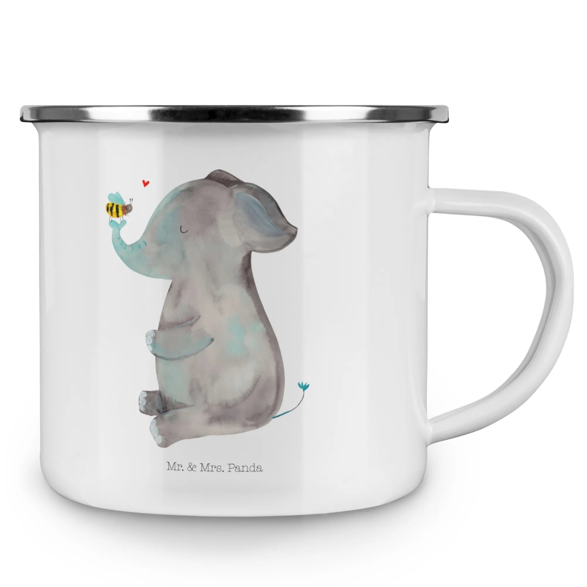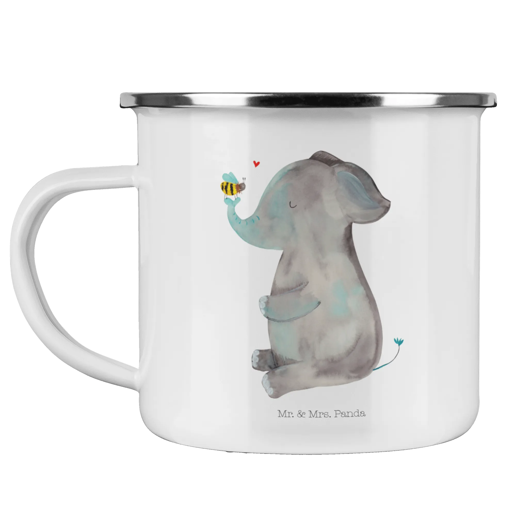 Kempingowy kubek emaliowany słoń pszczoła - z napisem - Biały