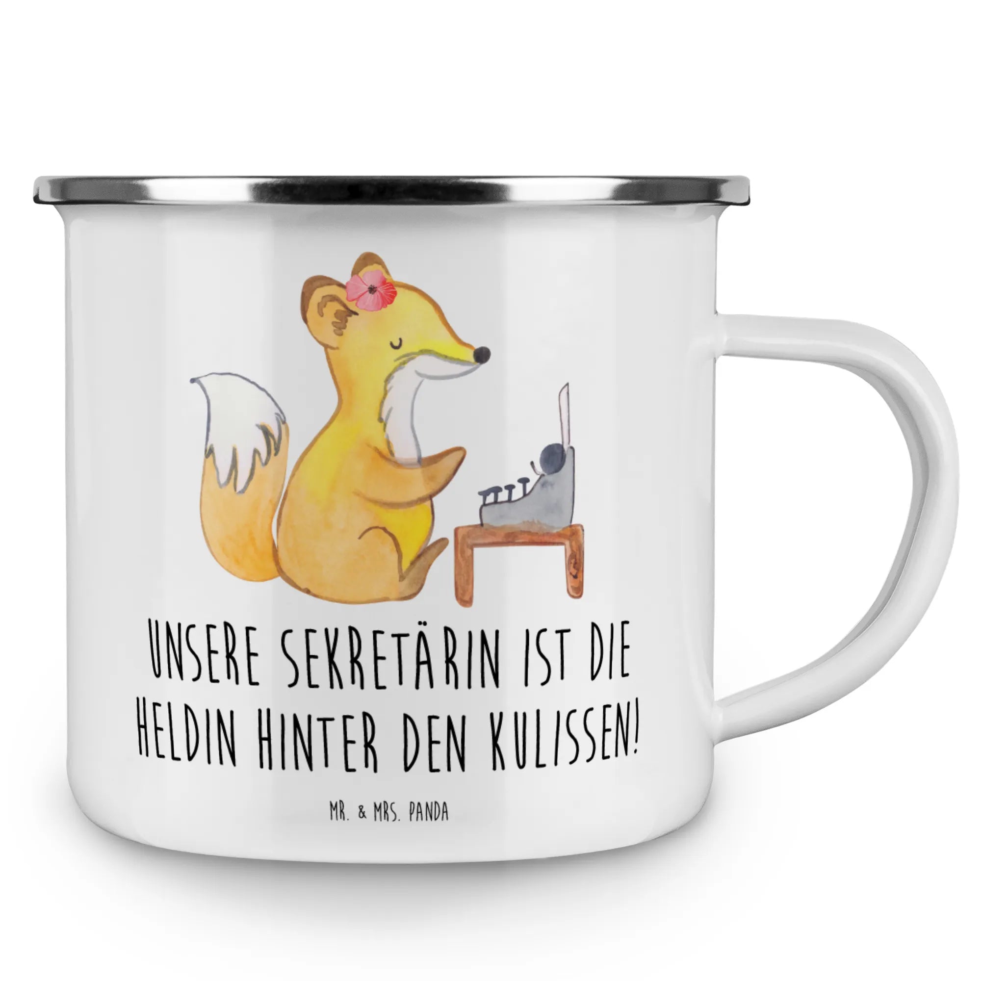 Kempingowy kubek emaliowany Unsere Sekretärin ist die Heldin hinter den Kulissen!
