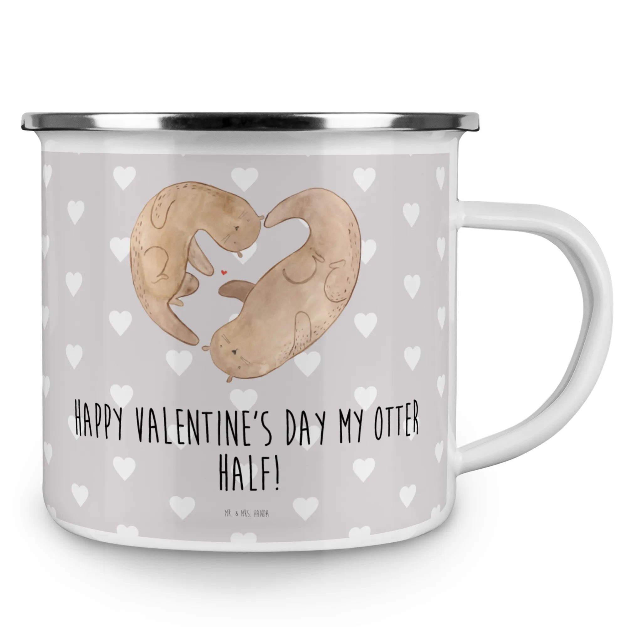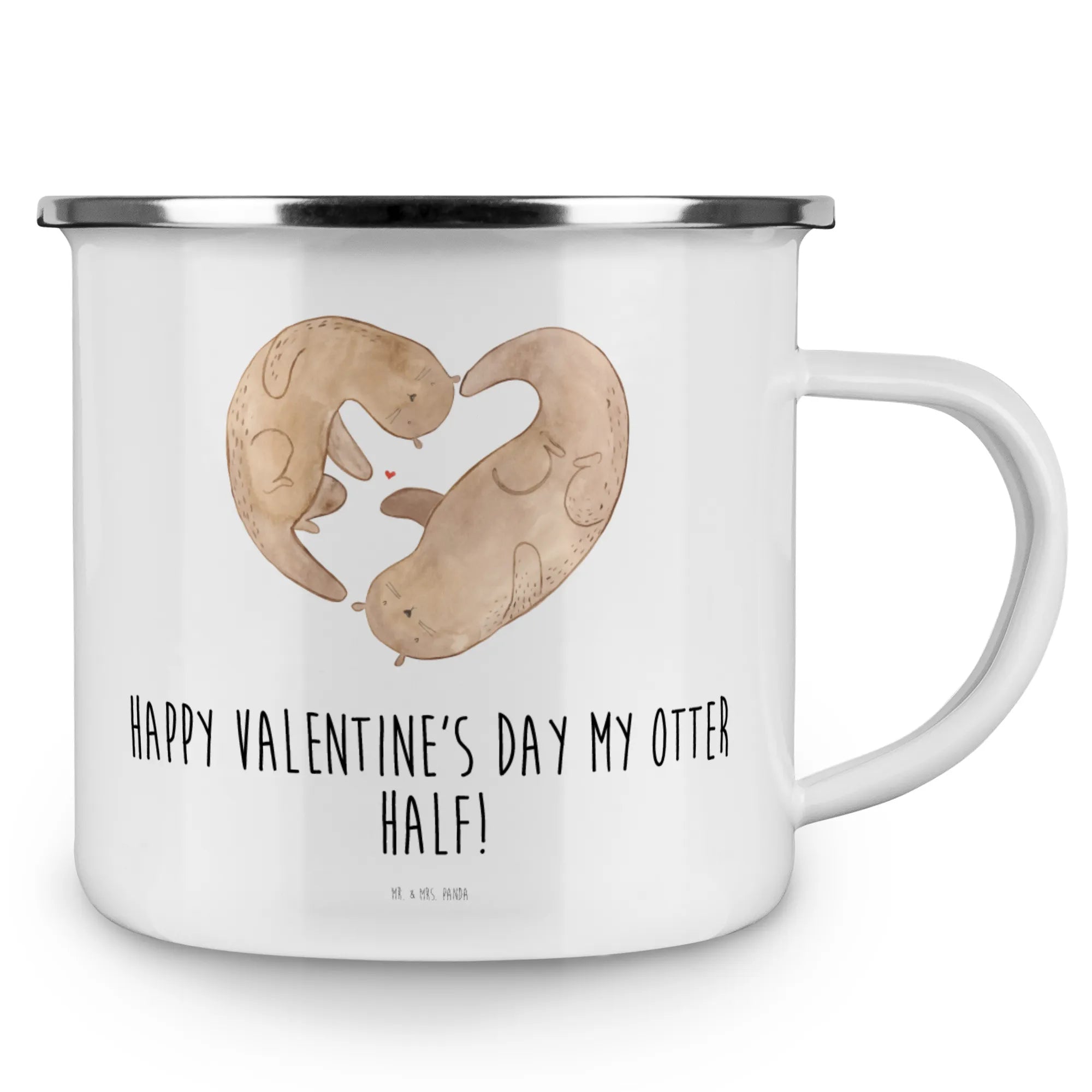 Kempingowy kubek emaliowany wydra Walentynka - biały