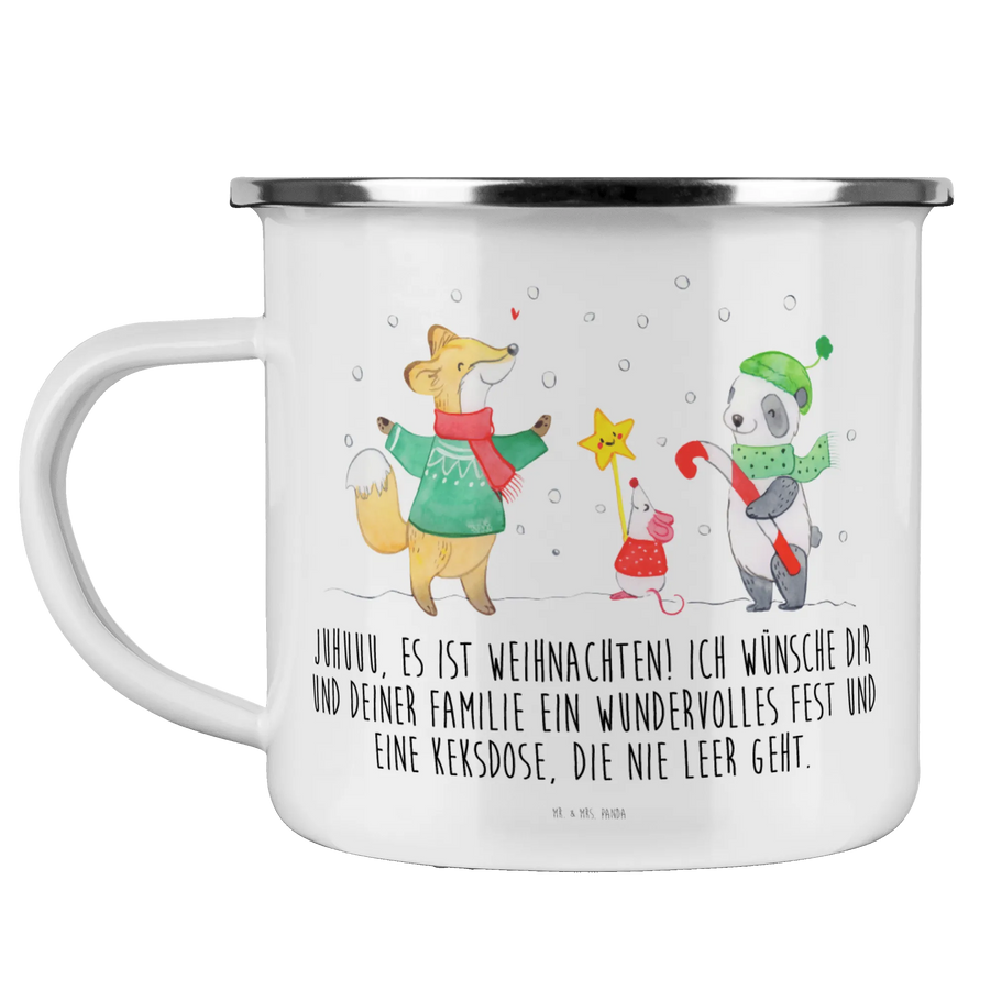 Kempingowy kubek emaliowany Zima radość świąteczna - Biały