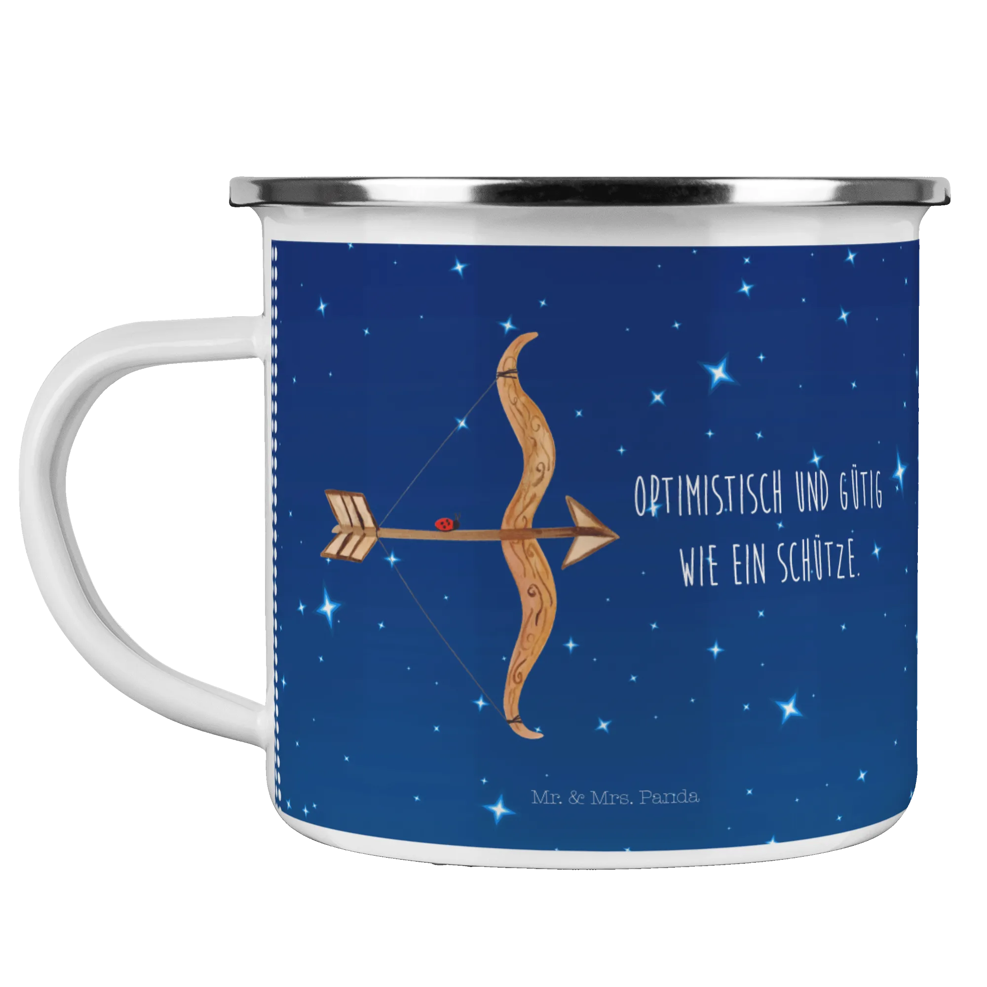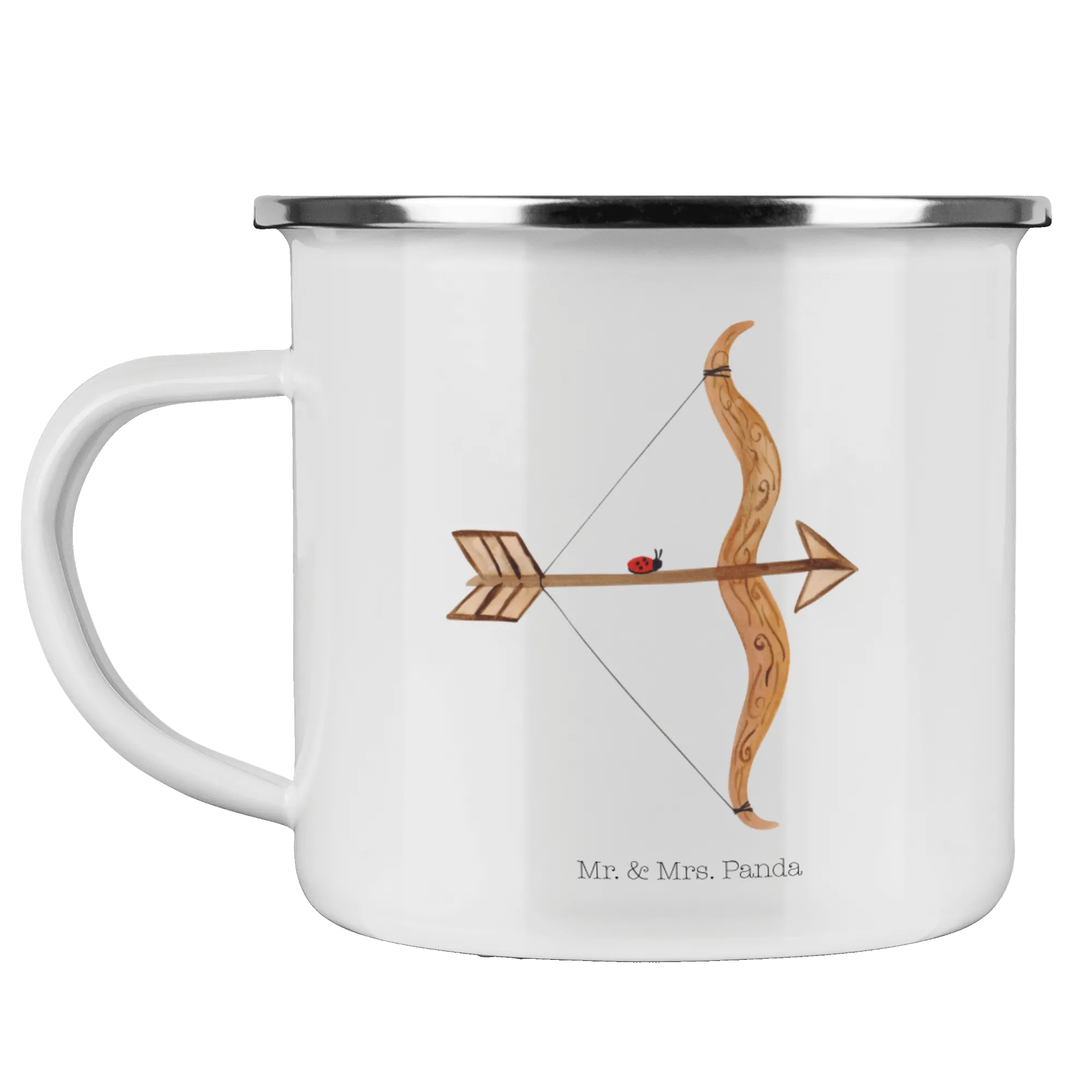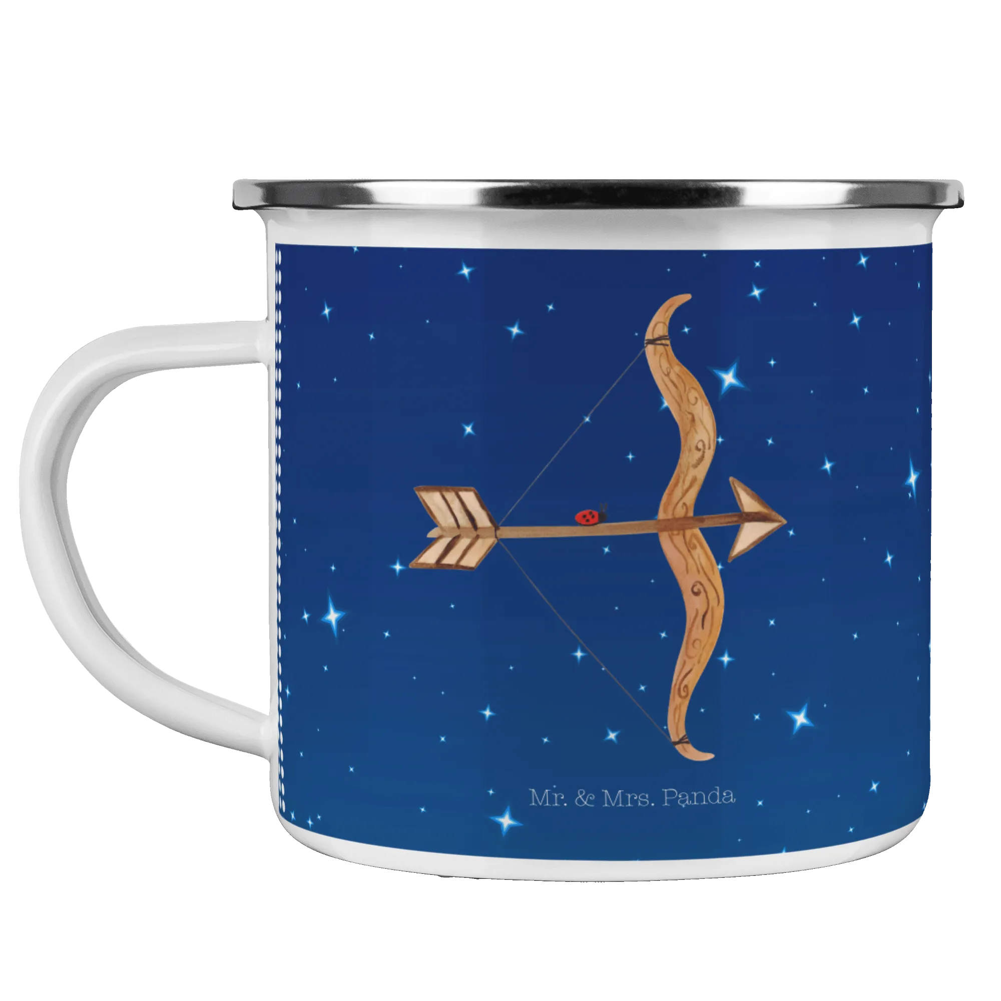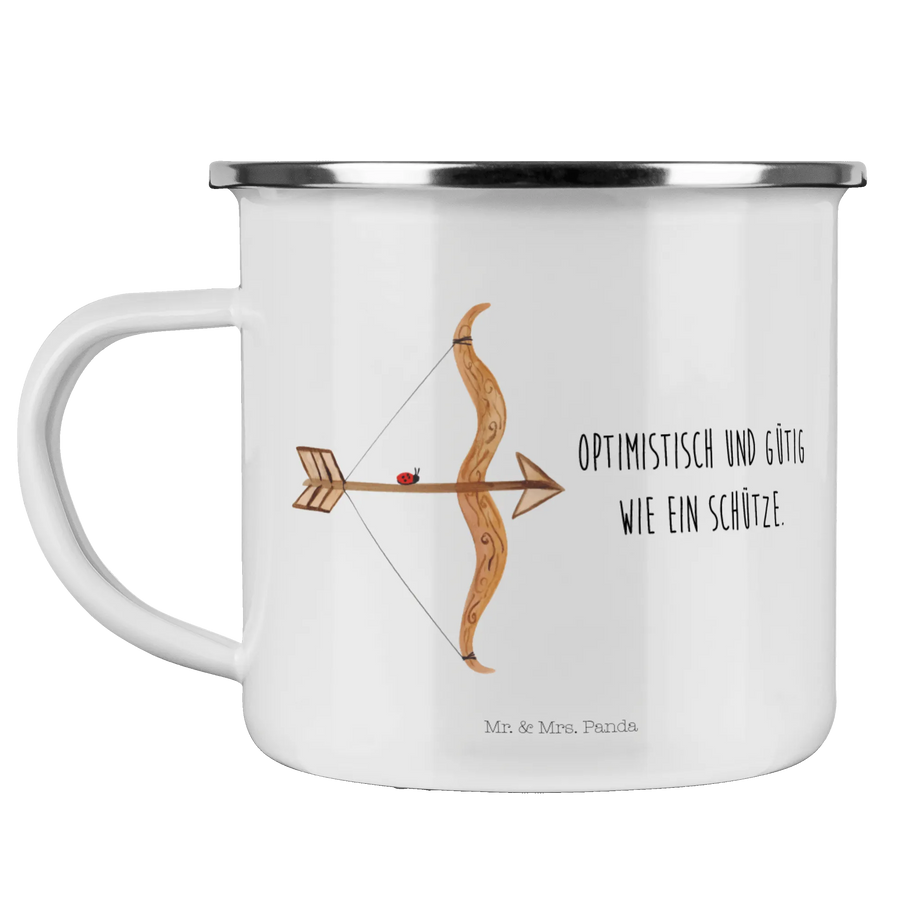 Kempingowy kubek emaliowany Znak zodiaku Strzelec - z napisem - Biały