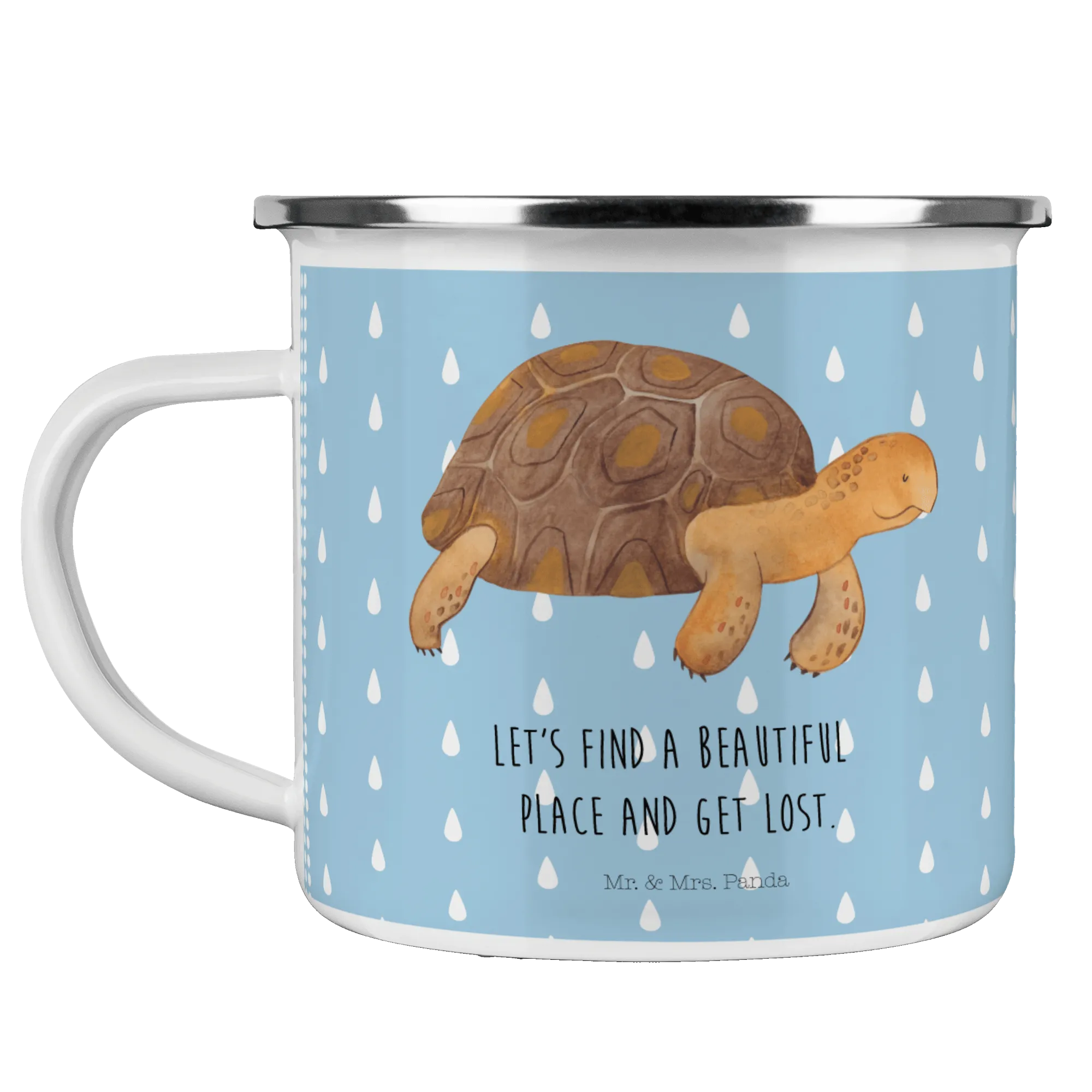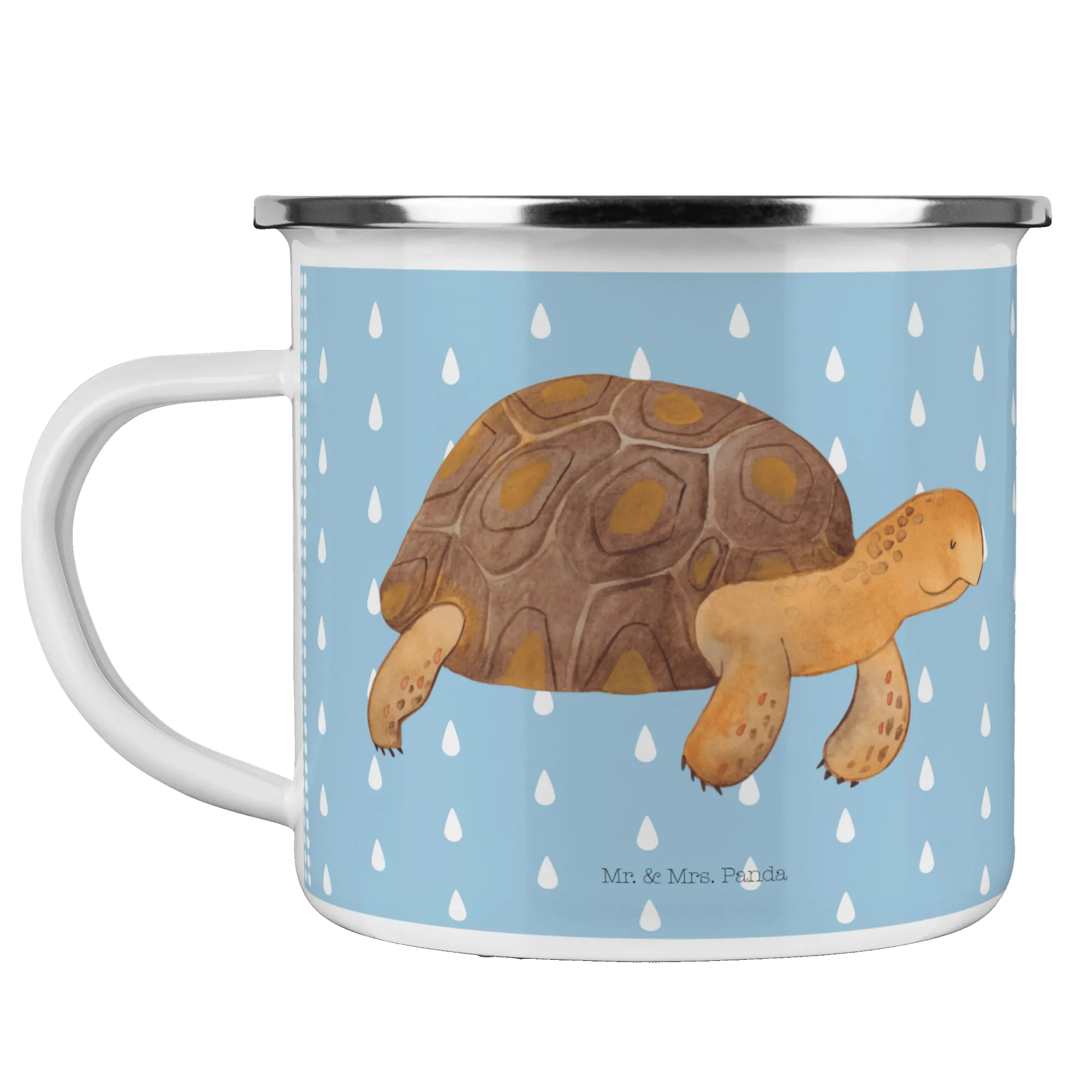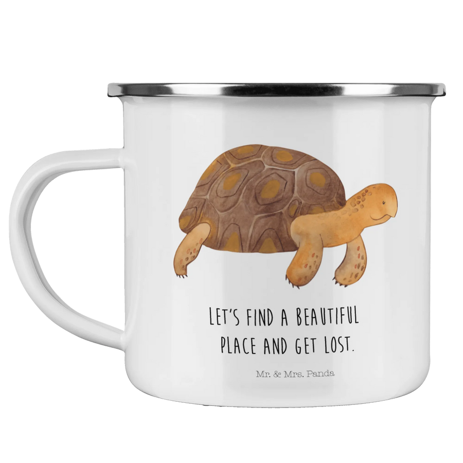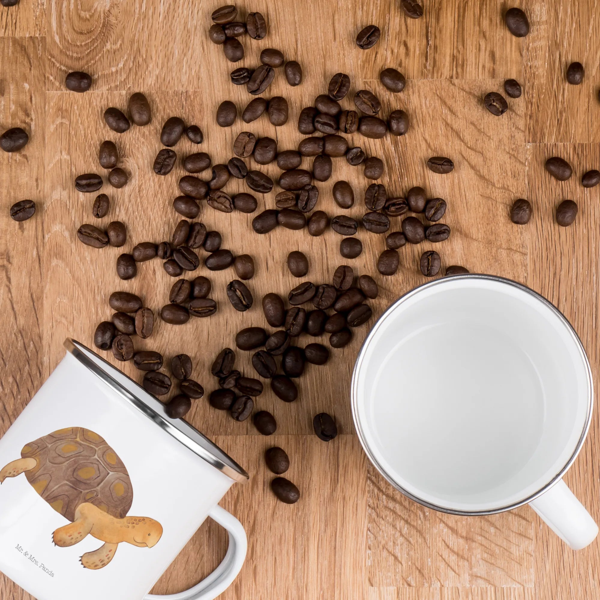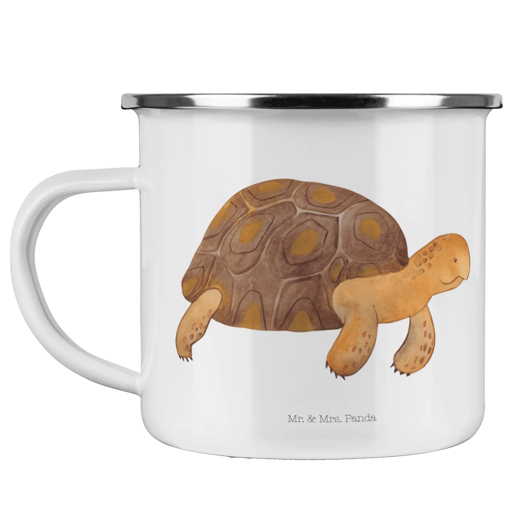 Kempingowy kubek emaliowany Żółw maszerować - z napisem - Biały