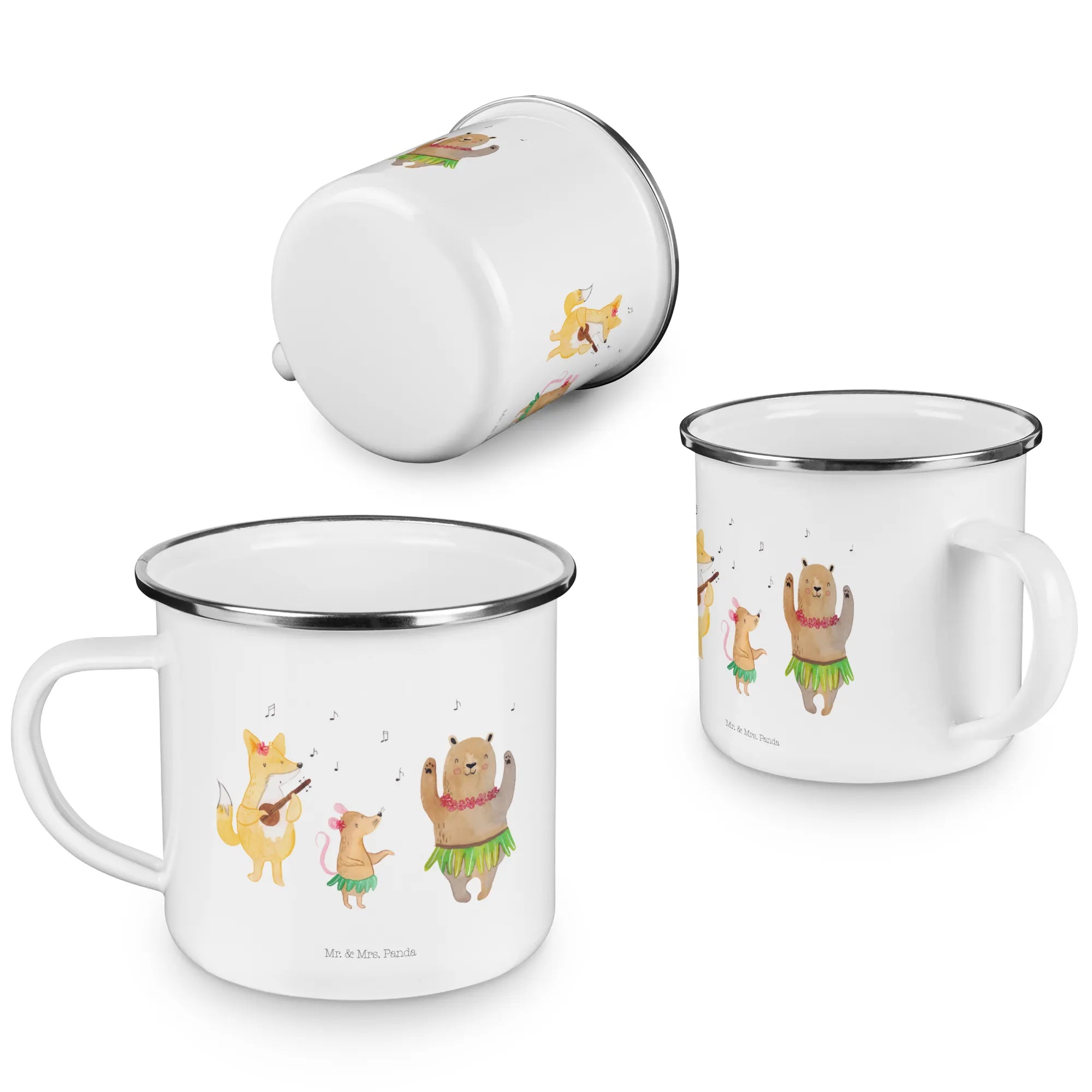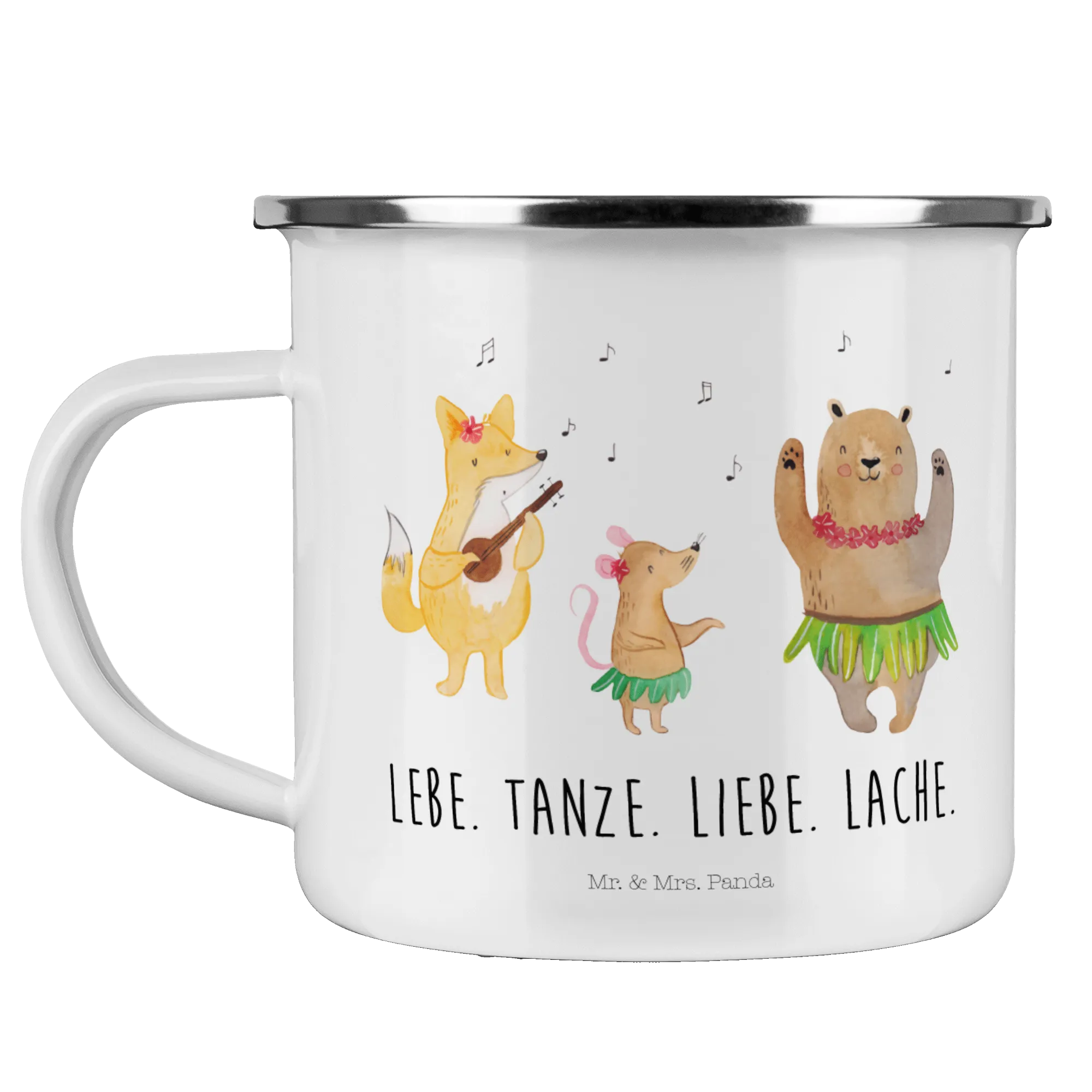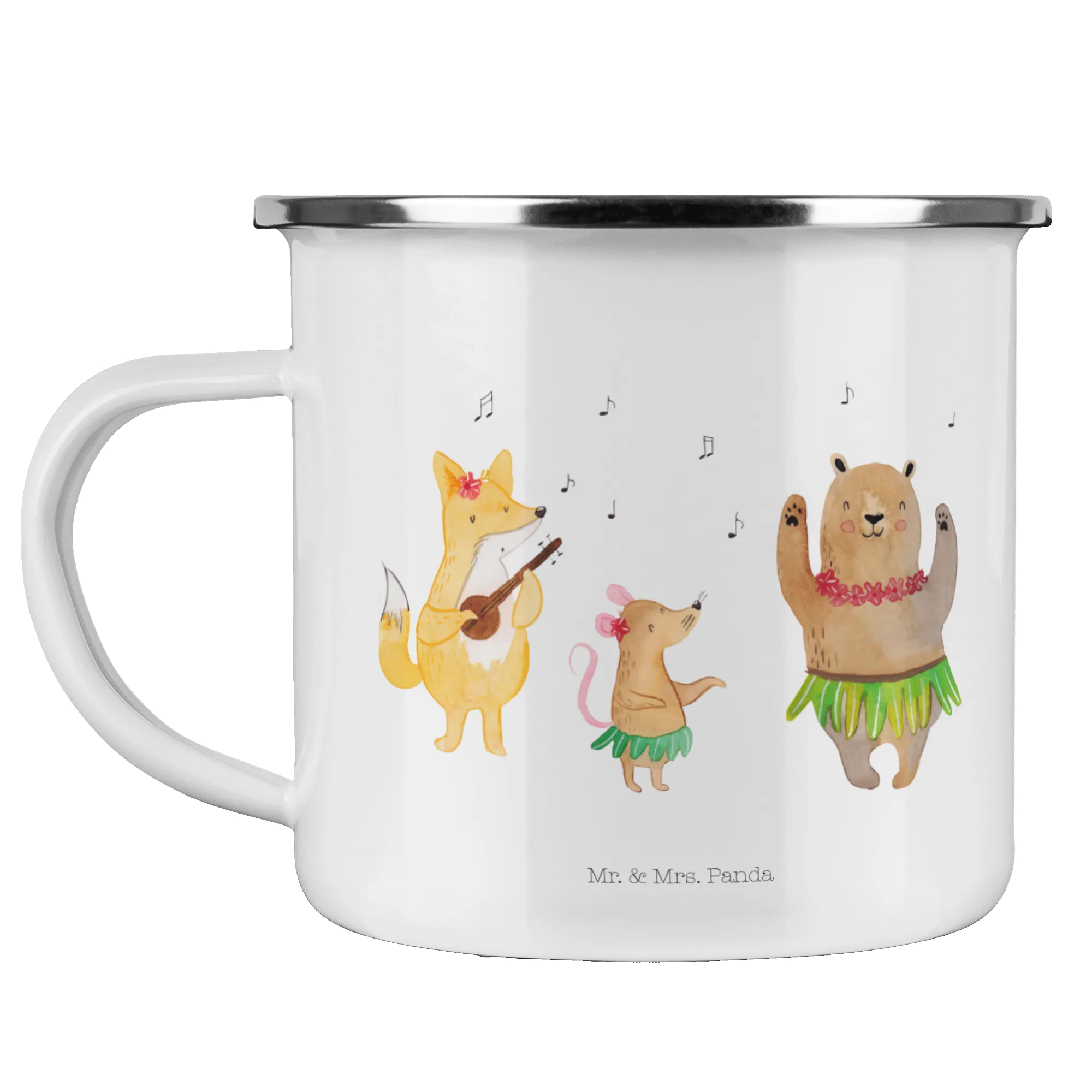 Kempingowy kubek emaliowany zwierzęta leśne Aloha - z napisem - biały