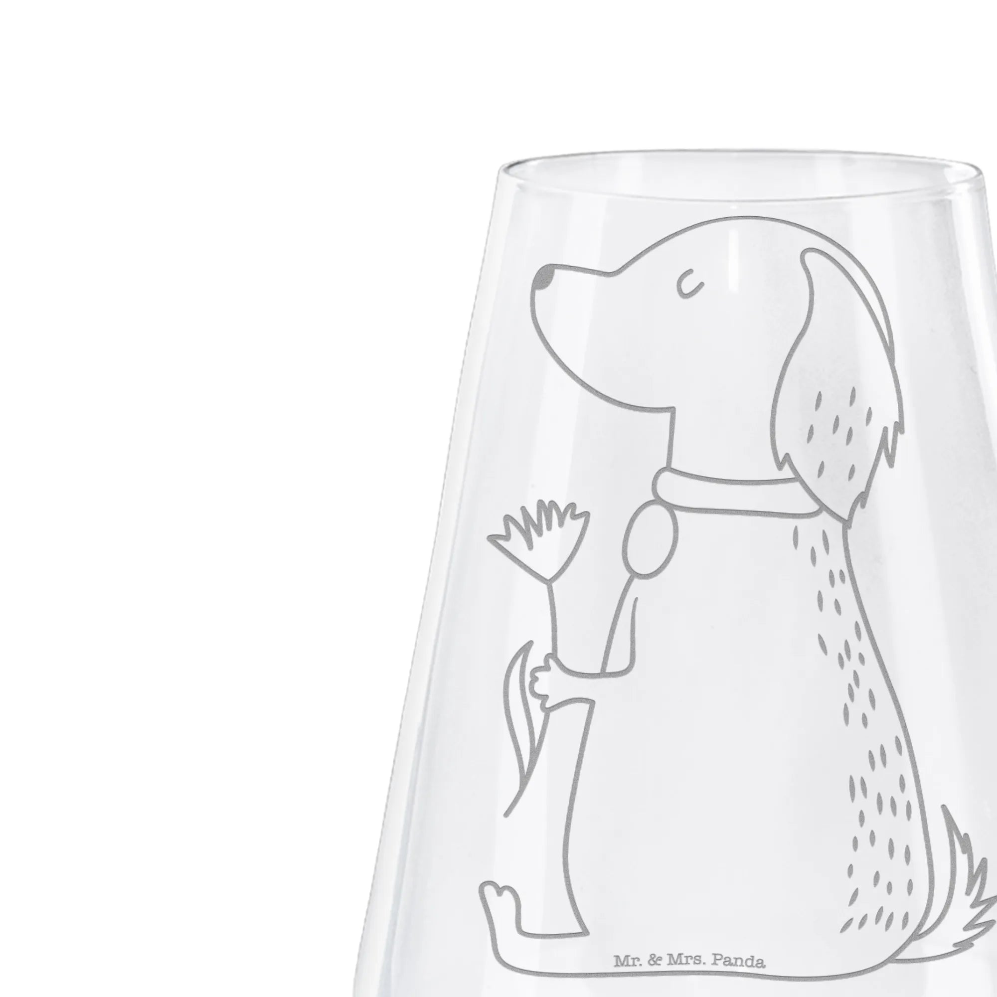Wunderschöne Momente mit einem Glas Weißwein und deinem Lieblingshund – das ist doch eine perfekte Kombination! Das Weißweinglas von Mr. & Mrs. Panda, ausgestattet mit der zauberhaften Gravur "Man kann ruhig ein wenig verrückt sein, aber es muss Stil haben." und einem niedlichen Hund mit Blume, ist das ideale Geschenk für alle Hundeliebhaber und Weinfreunde.