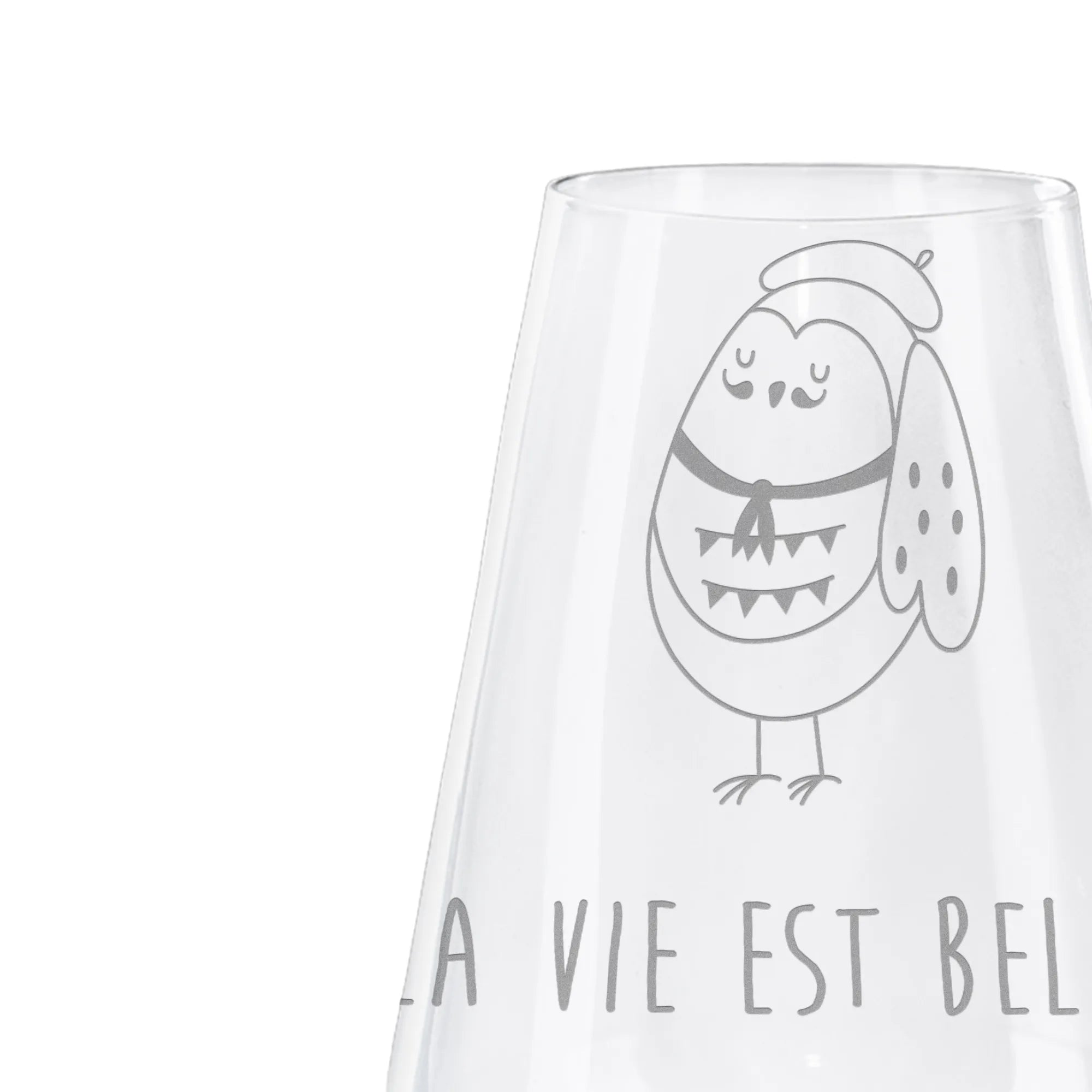 Entdecke unser wundervolles Weißweinglas mit der charmanten Eule im französischen Stil von Mr. & Mrs. Panda! Dieses außergewöhnliche Weinglas ist nicht nur ein praktisches Weinaccessoire, sondern auch ein echter Hingucker, der jedem Weinliebhaber ein Lächeln ins Gesicht zaubern wird. Mit dem liebevollen Spruch 'La vie est belle!' wird jede Weinpause zu einem kleinen Fest.