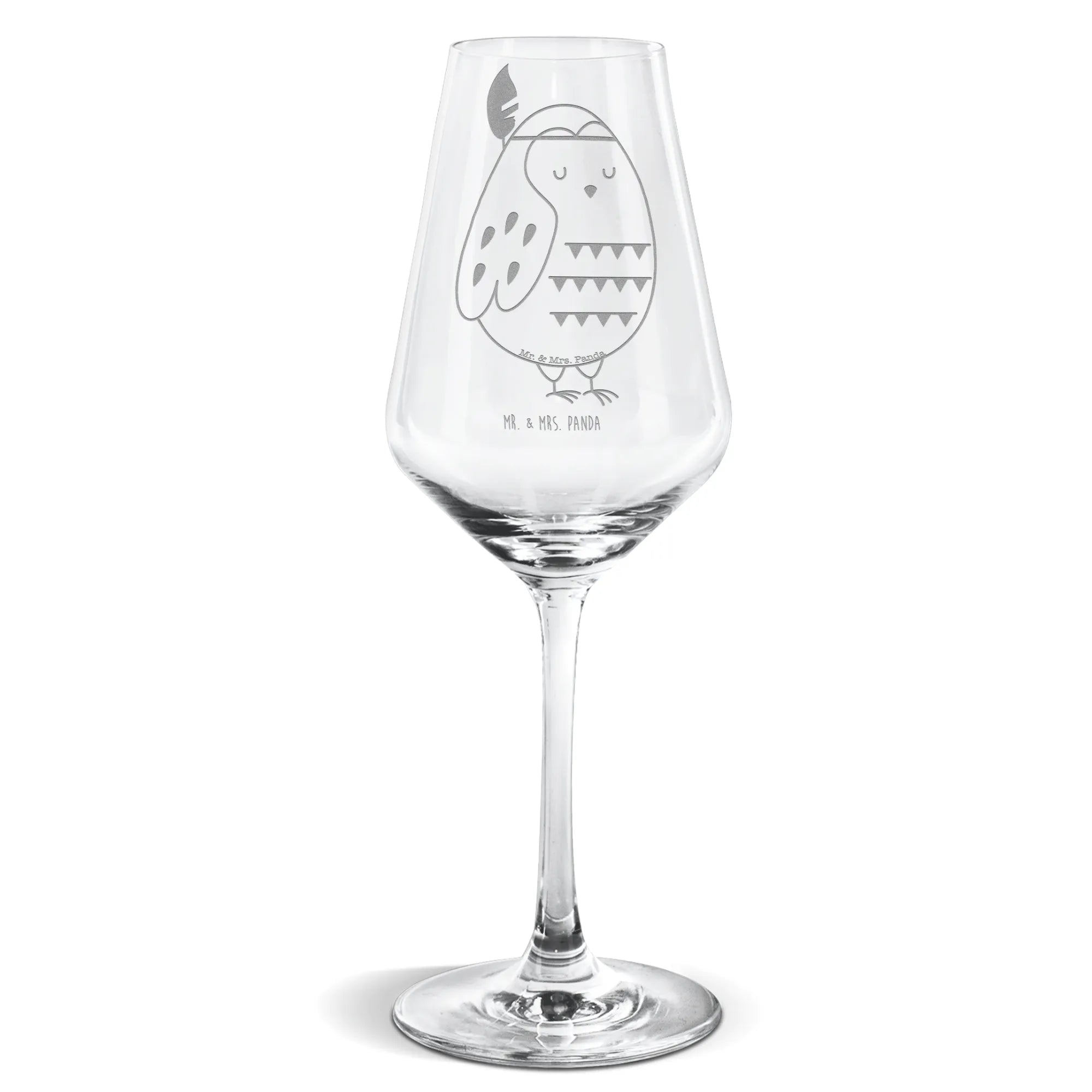 Kieliszek do białego wina sowa Ozdoba z piór - z napisem