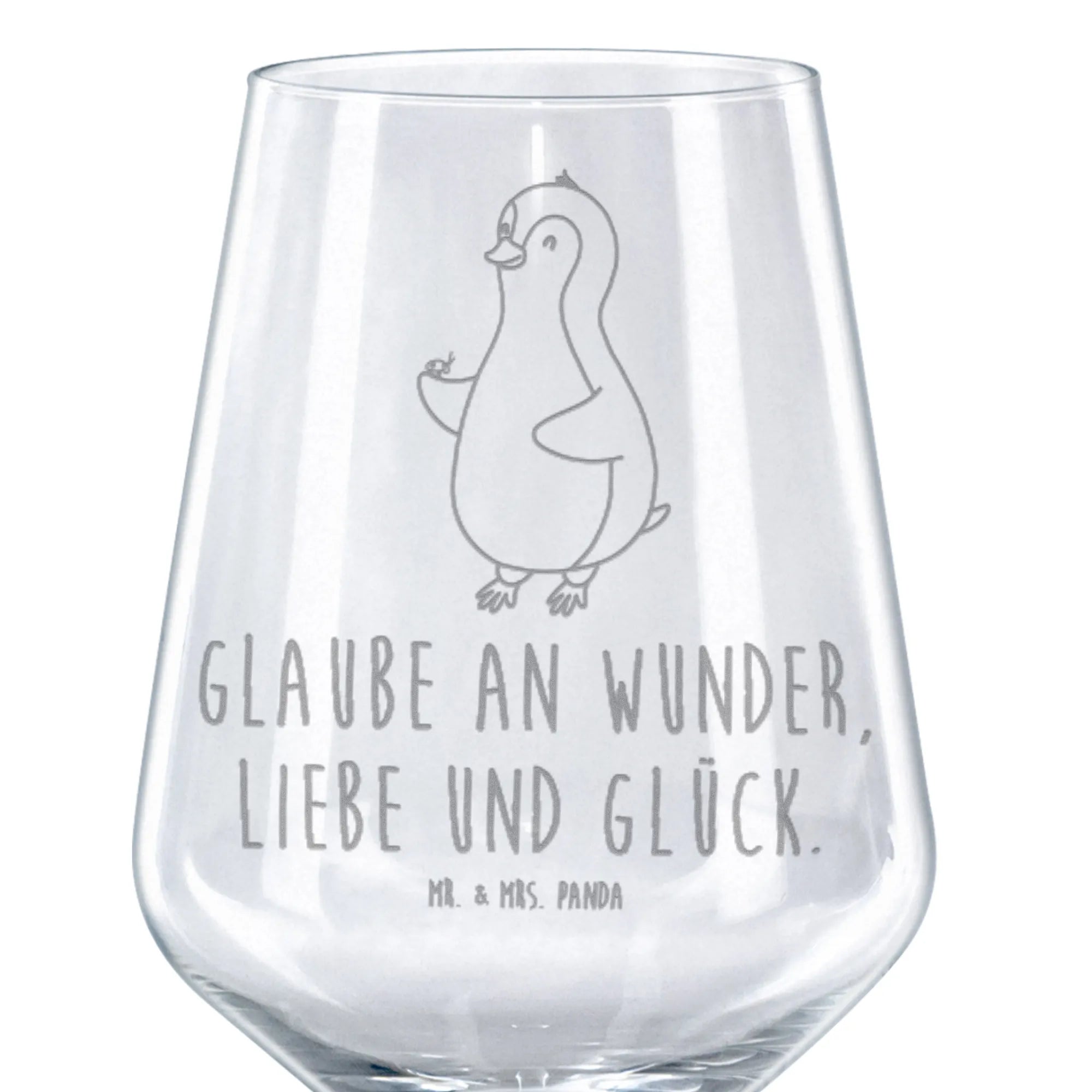 Das wunderschöne Rotweinglas mit dem bezaubernden Pinguin Marienkäfer-Motiv von Mr. & Mrs. Panda ist das perfekte Geschenk für Weinliebhaber! Dieses hochwertige Glas bringt nicht nur Freude in jeden Schluck Rotwein, sondern auch ein Lächeln auf die Gesichter der Beschenkten.