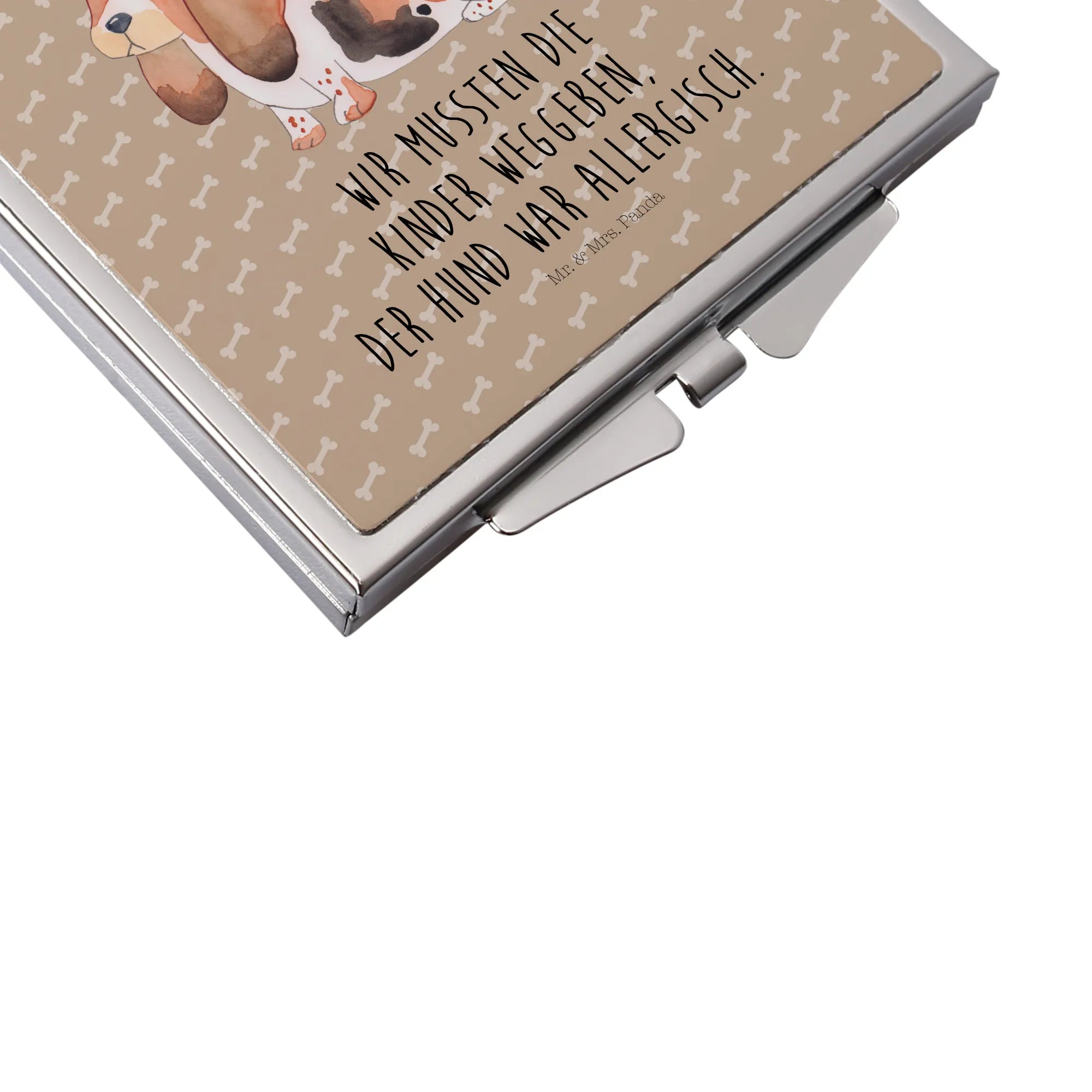 Kwadratowe lusterko do torebki pies Basset Hound - z napisem - Hundeglück