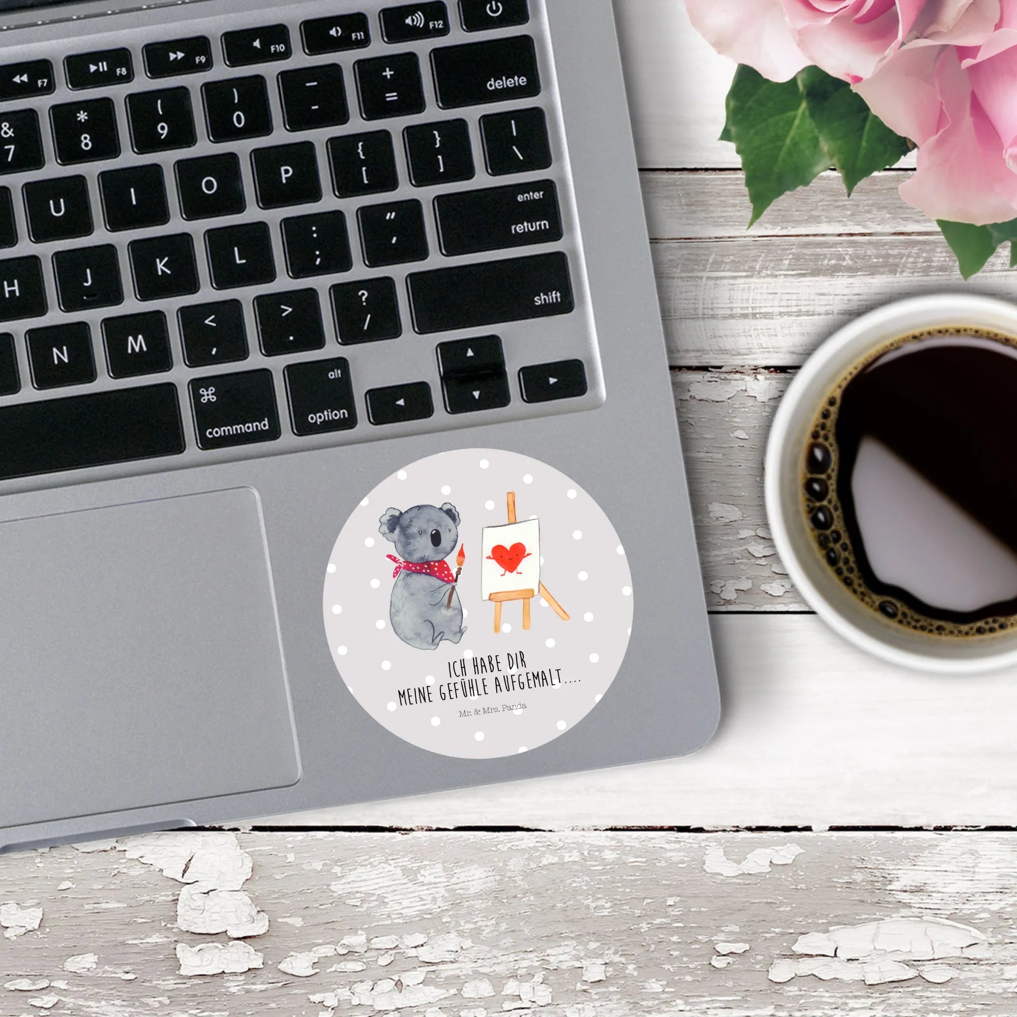 120mm okrągła naklejka koala artysta - 120mm Rund Aufkleber - z napisem - Pastelowy szary