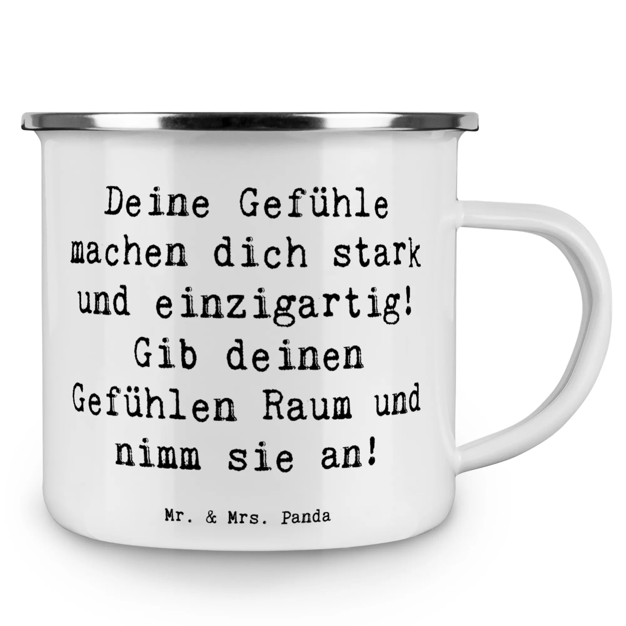Kempingowy kubek emaliowany Przysłowie Deine Gefühle machen dich stark und einzigartig! Gib deinen Gefühlen Raum und nimm sie an!