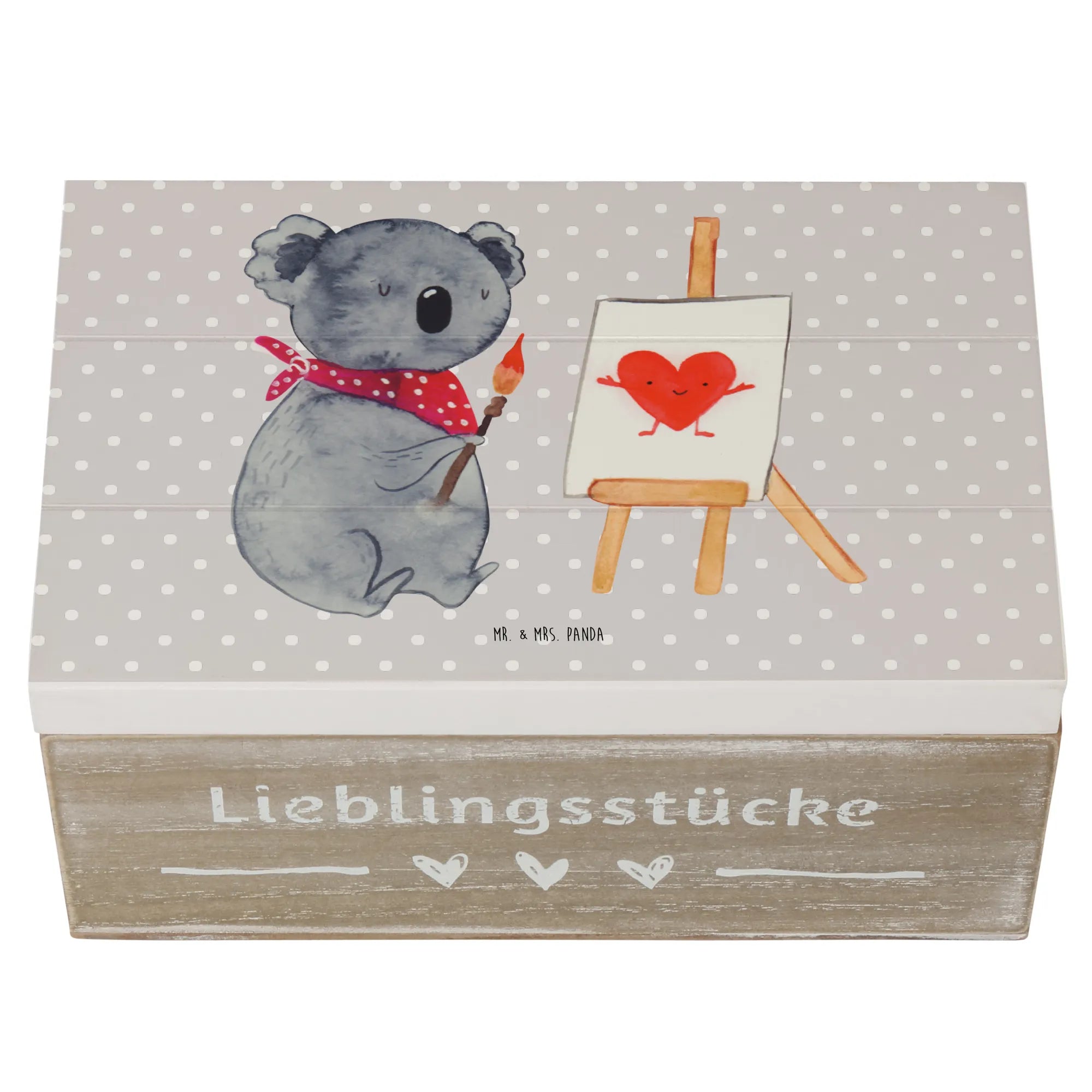 Skrzynia drewniana koala artysta - 22 x 15 cm - z napisem - biały