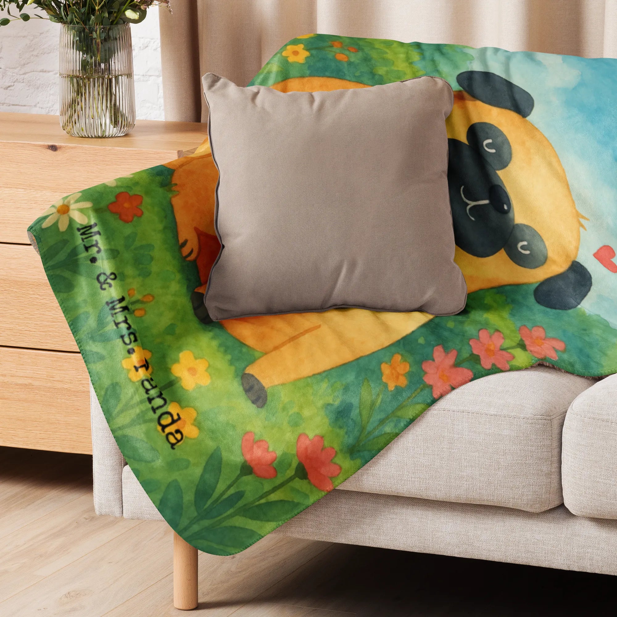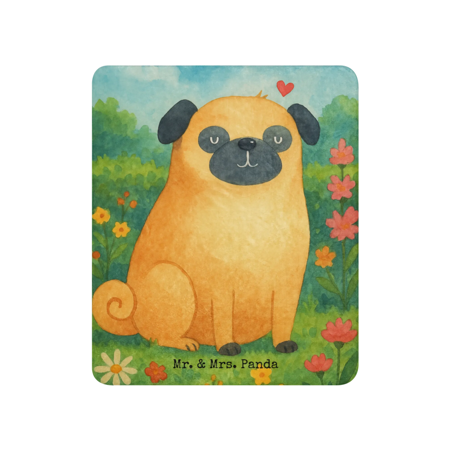 Sherpa Kuscheldecke Mops Design - 130 x 155 cm