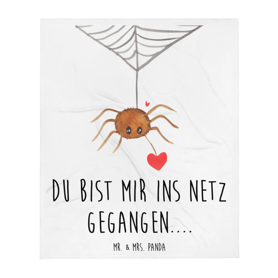 Suchst Du ein liebevolles, dekoratives und kuscheliges Geschenk? Die Kuscheldecke mit Agathe der Spinne ist genau das richtige: liebevoll gezeichnet von Mrs. Panda, mit dem süßen Slogan „Du bist mir ins Netz gegangen....“ und einem Motiv, das Herz und Sinne wärmt.