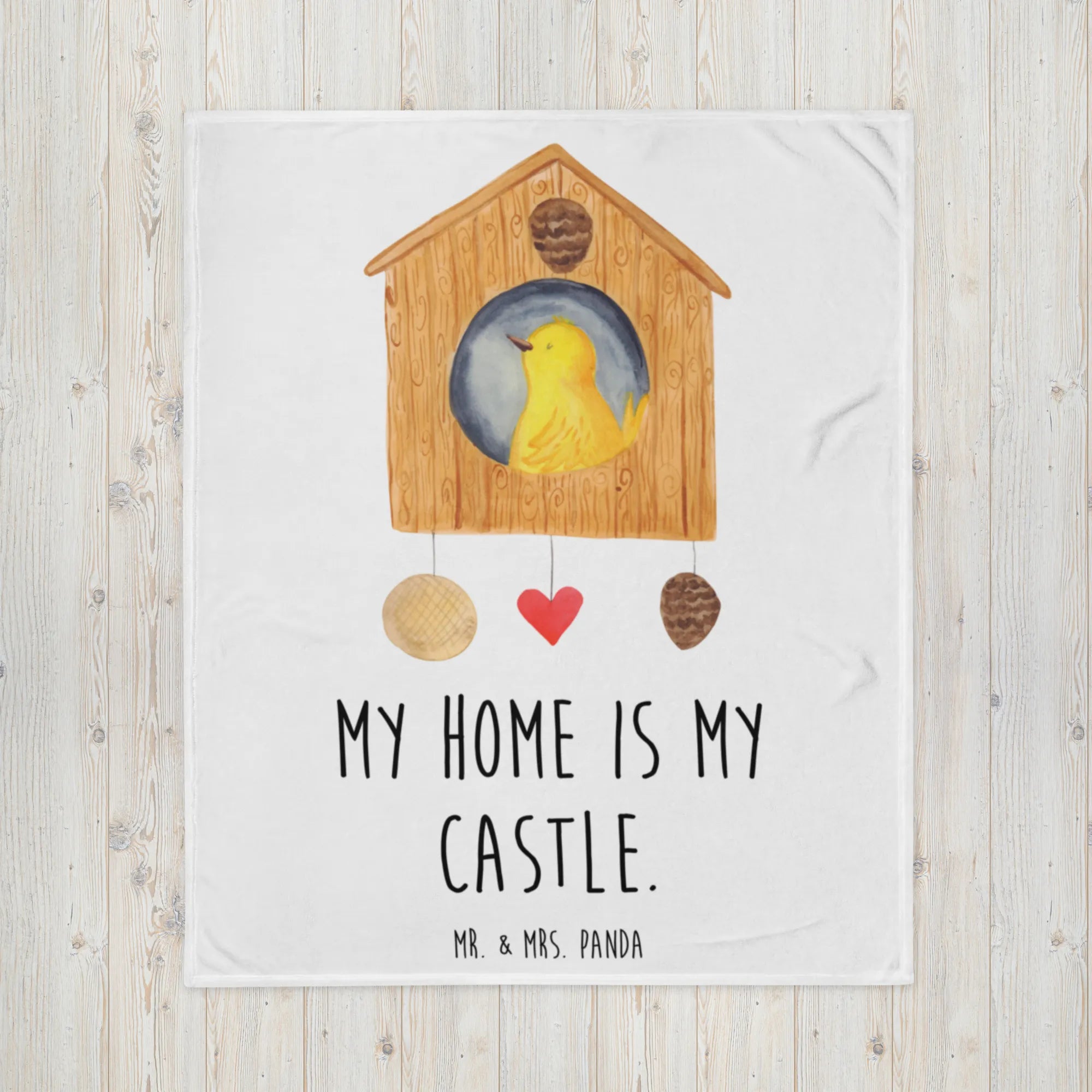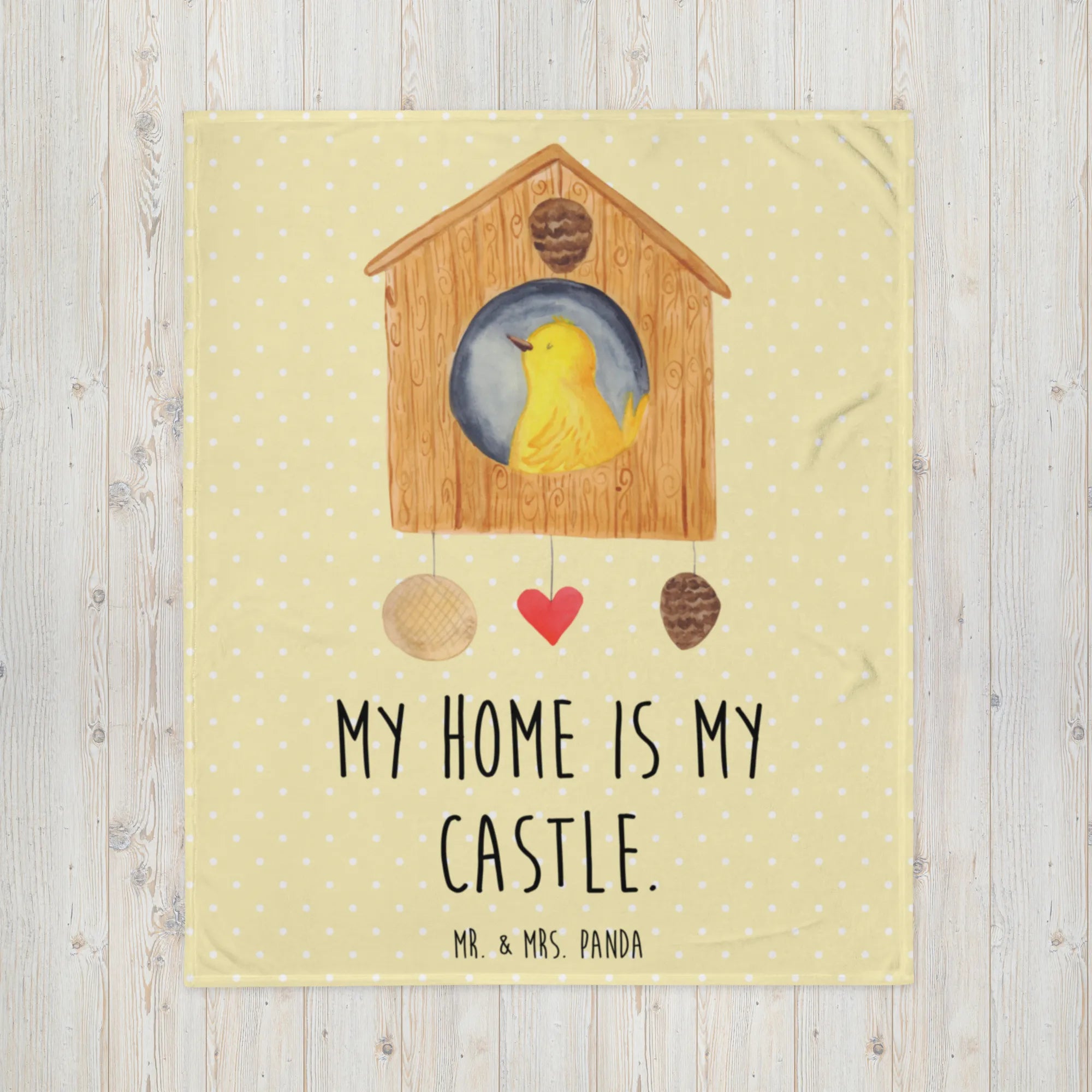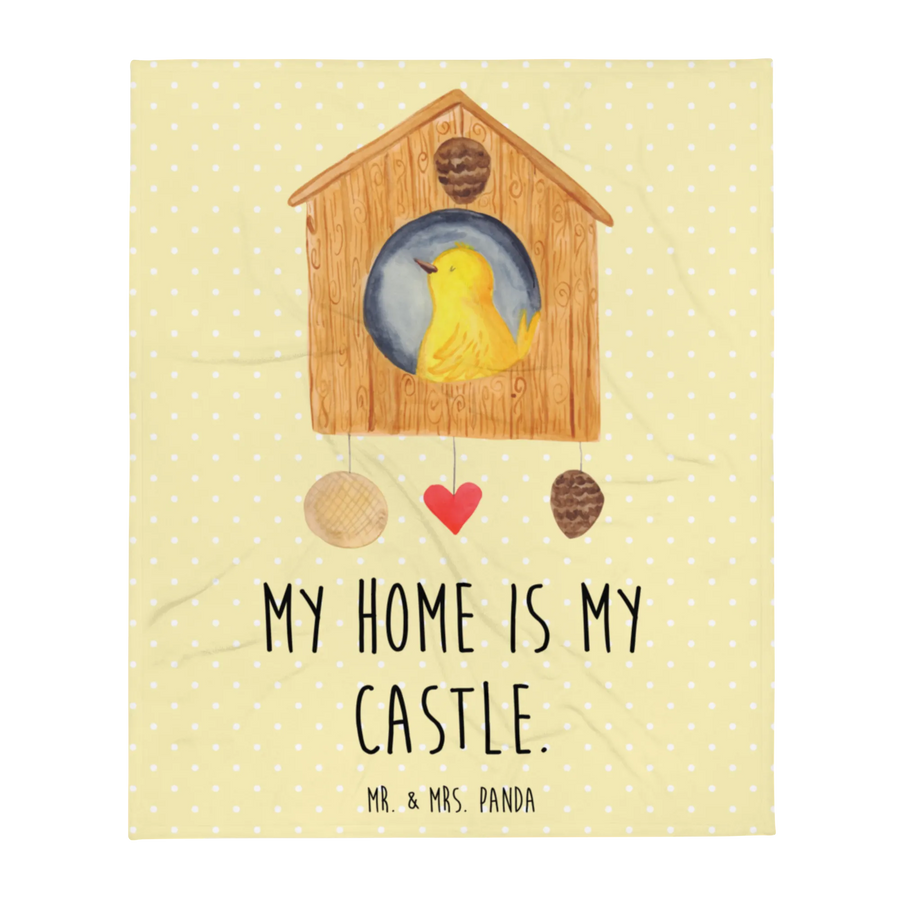Koc ptak Dom - z napisem - Pastelowy żółty