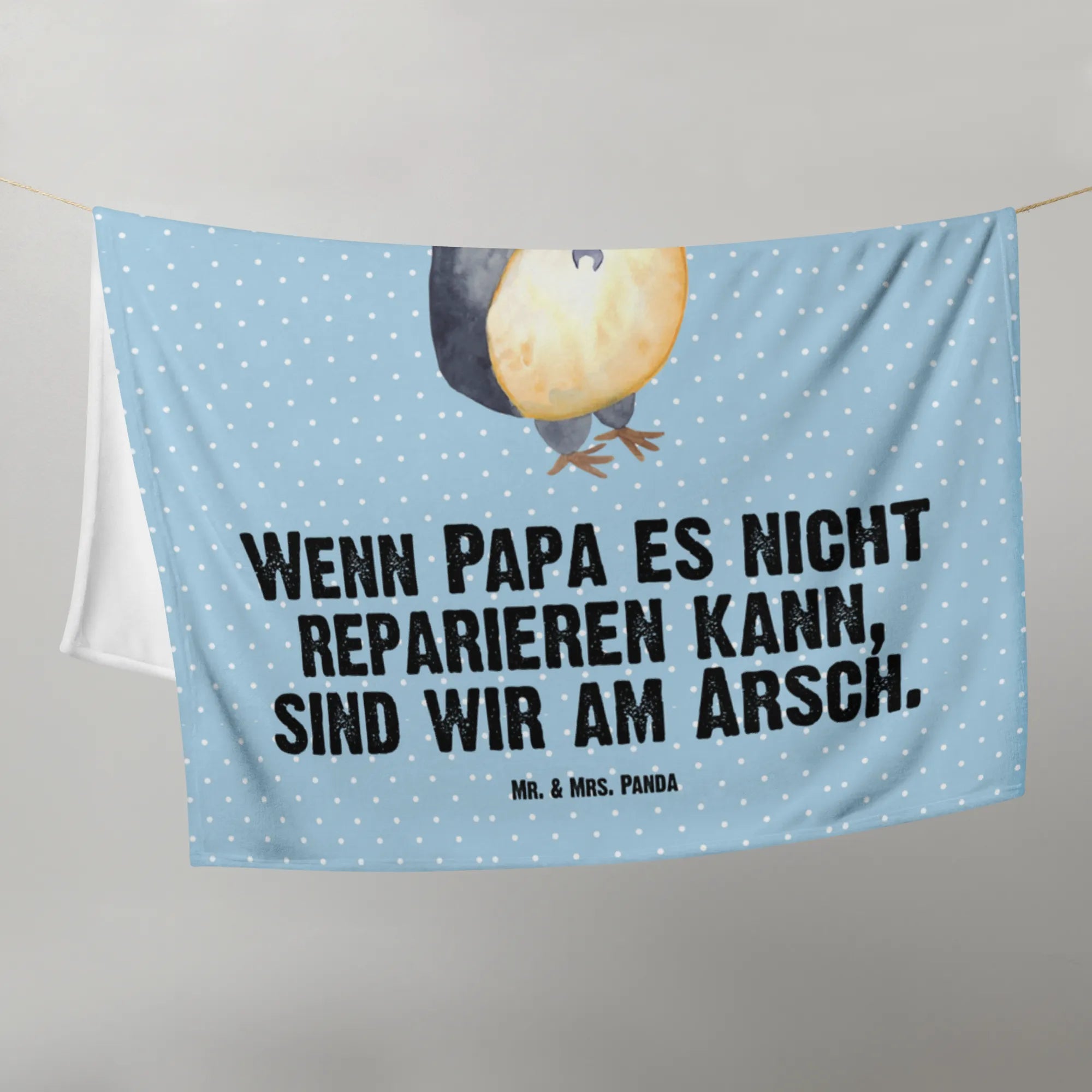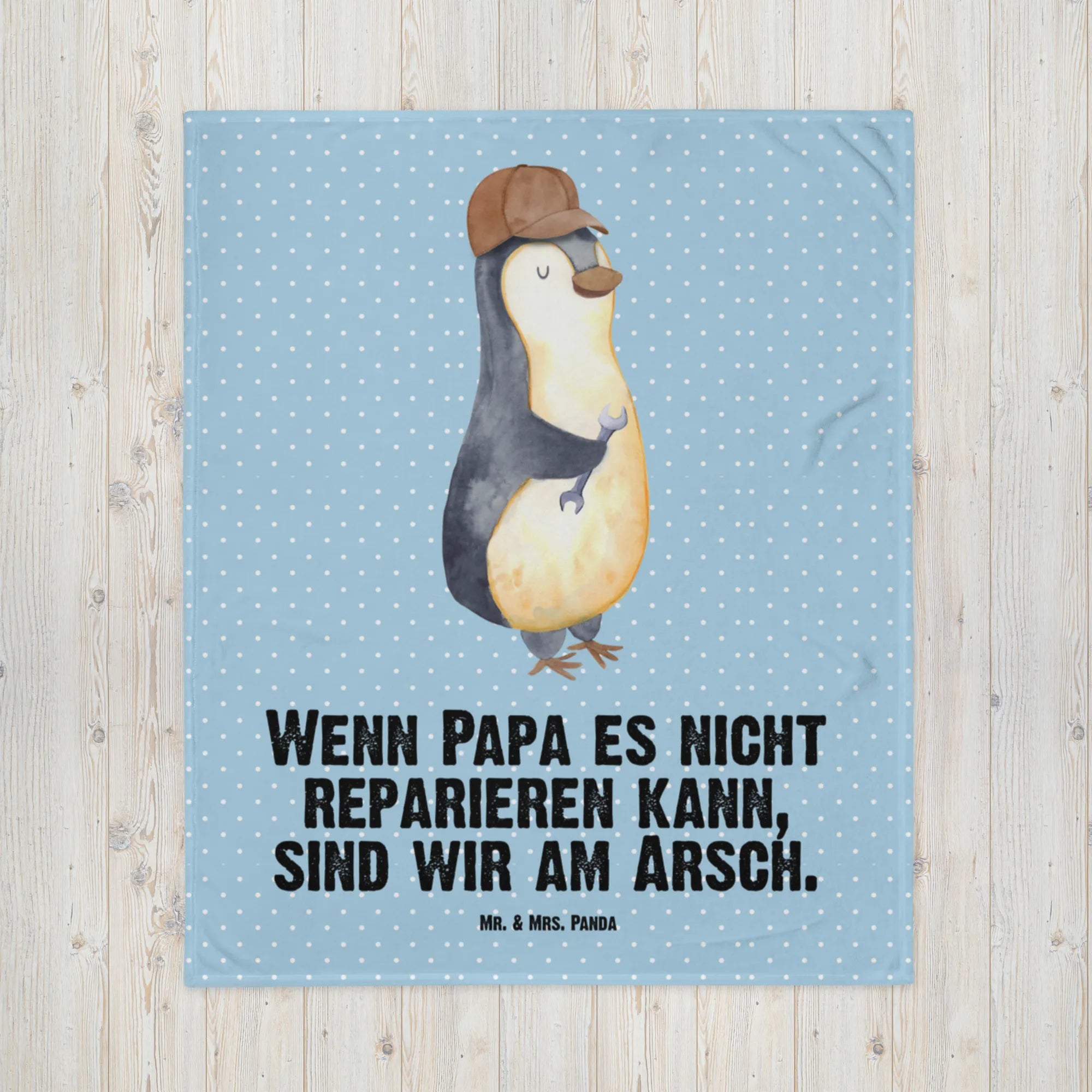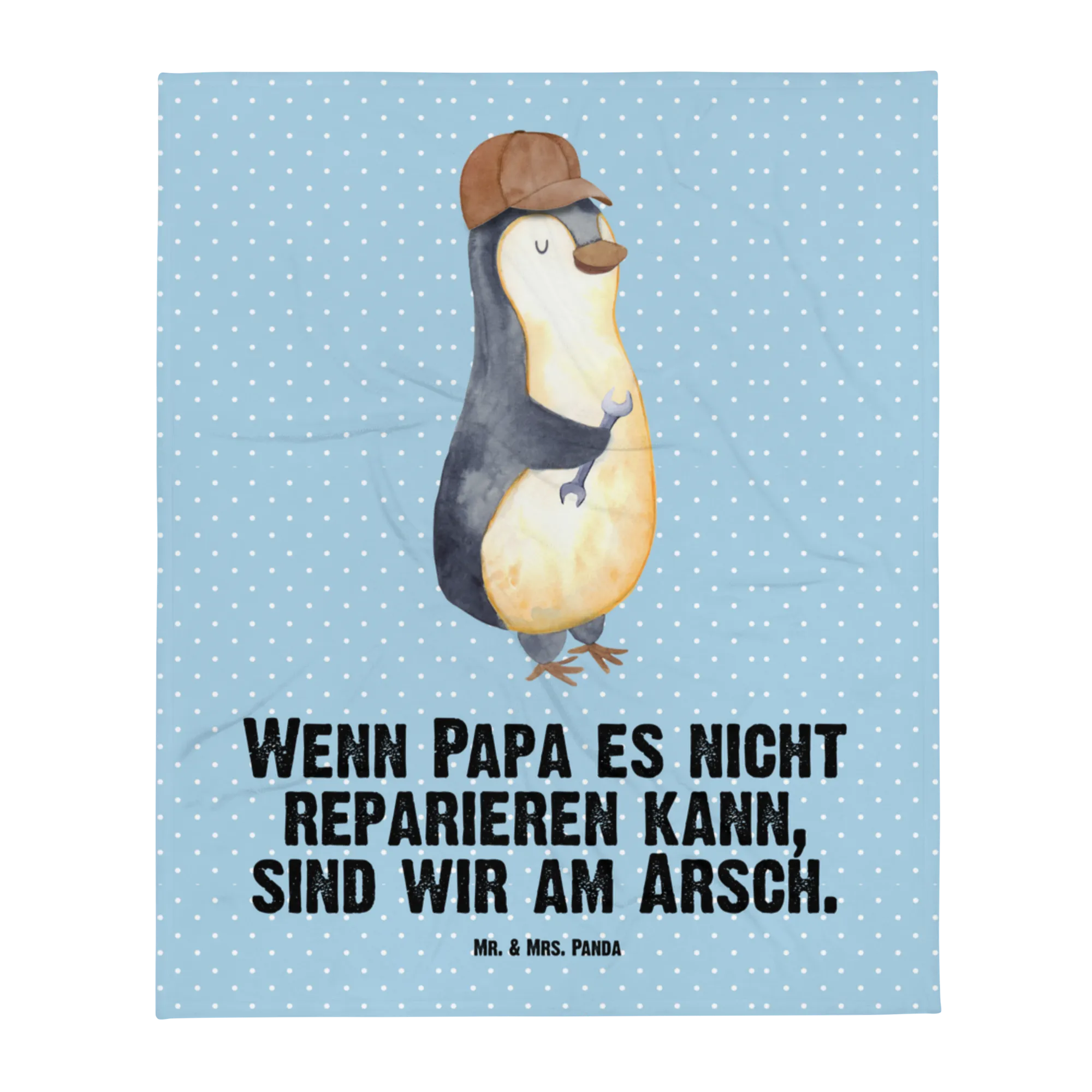 Kocyk dla niemowląt Jeśli tata tego nie naprawi, to jesteśmy w dupie - z napisem - Pastelowy niebieski