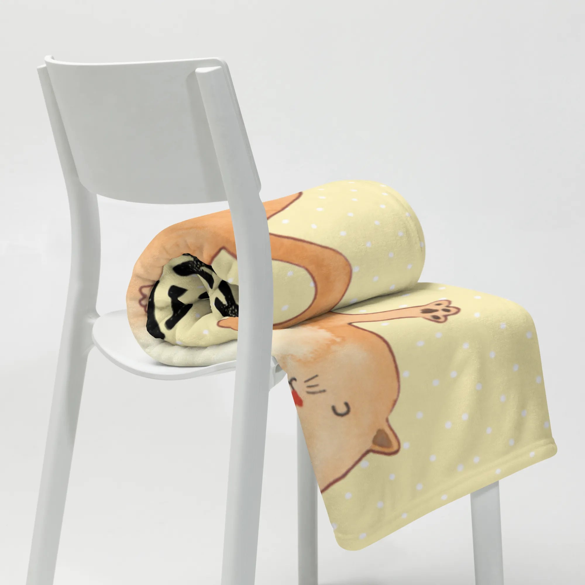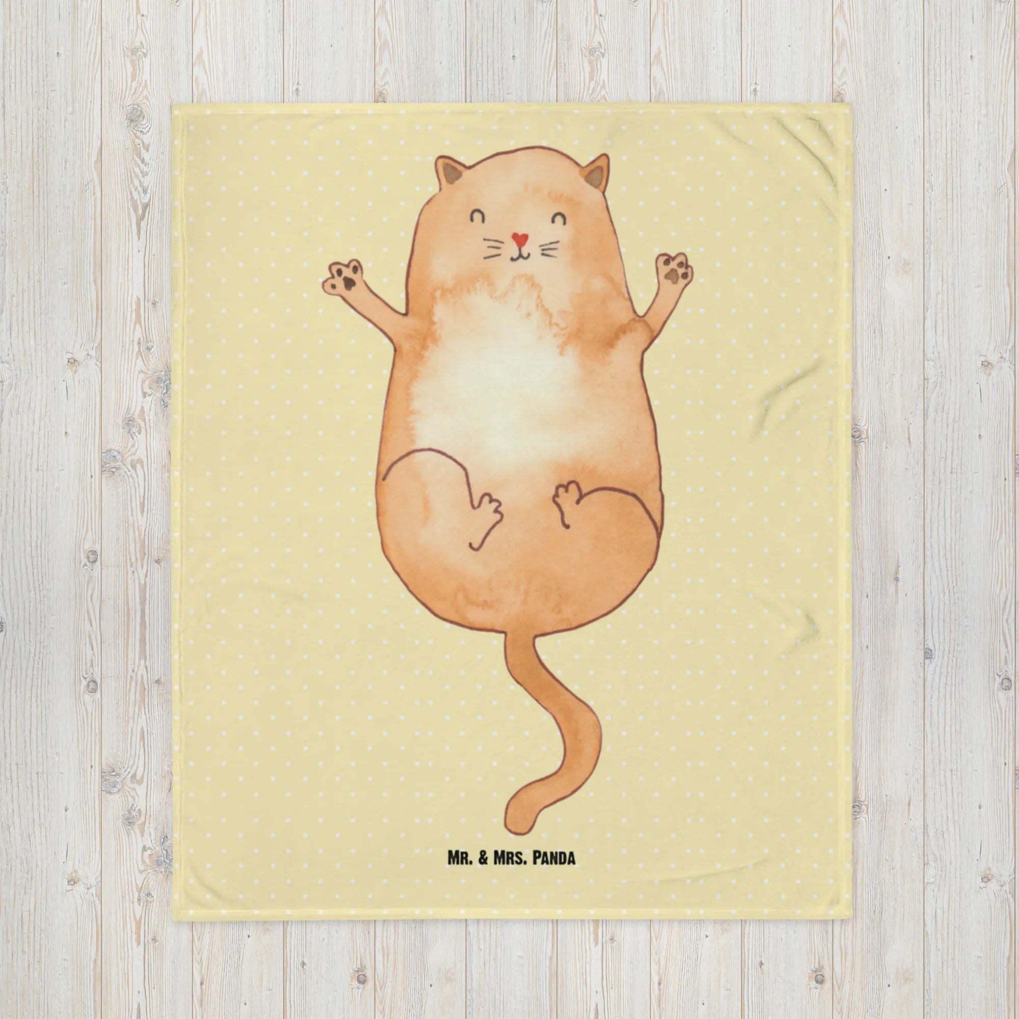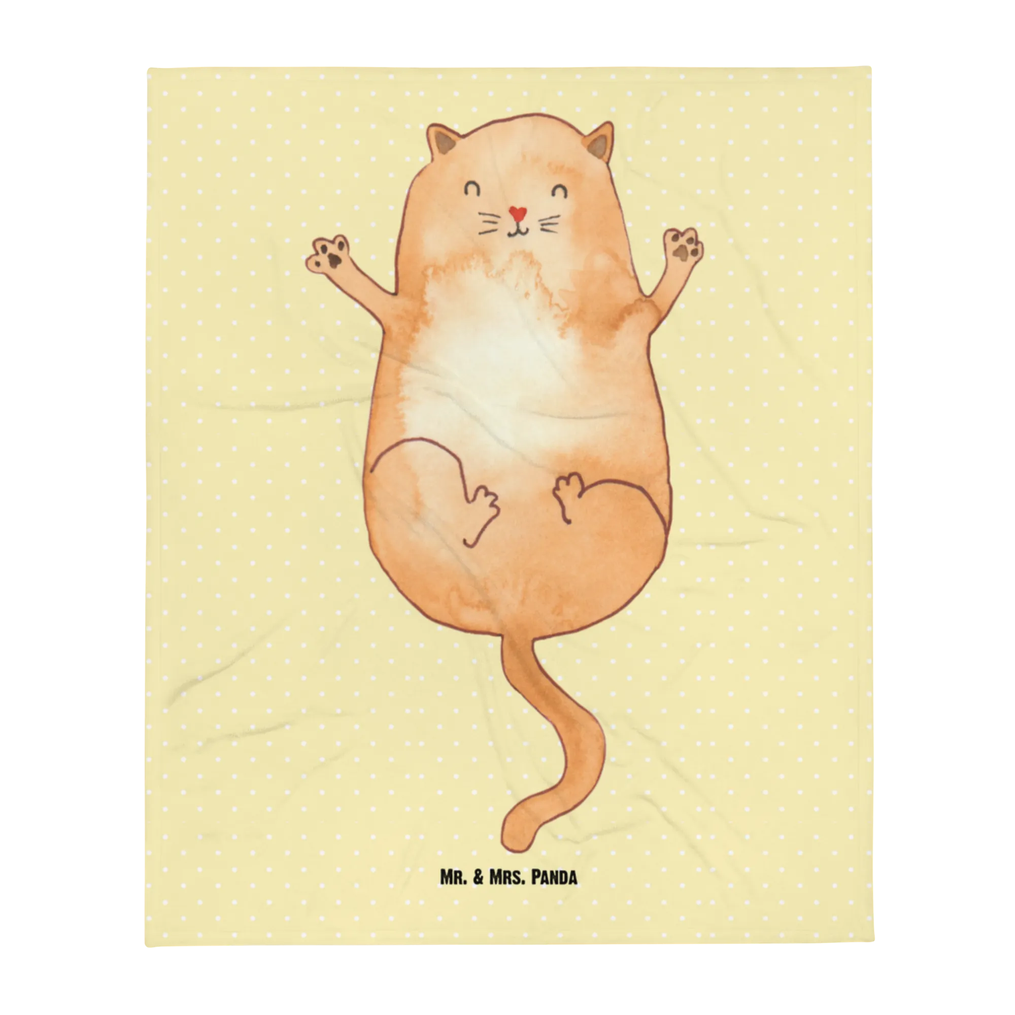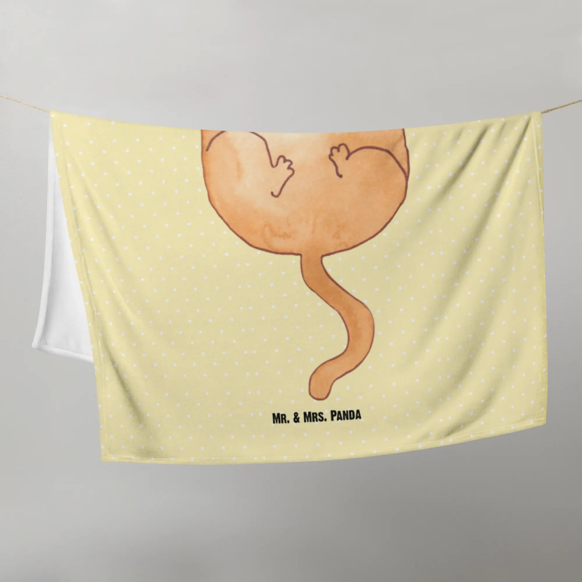 Kocyk dla niemowląt kotka Przytulić - z napisem - Pastelowy żółty