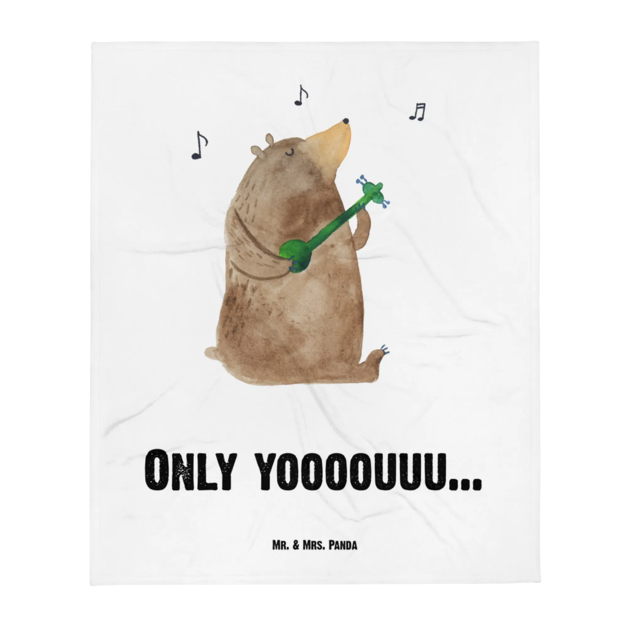 Kocyk dla niemowląt niedźwiedź Gitara - z napisem - Blau Pastell