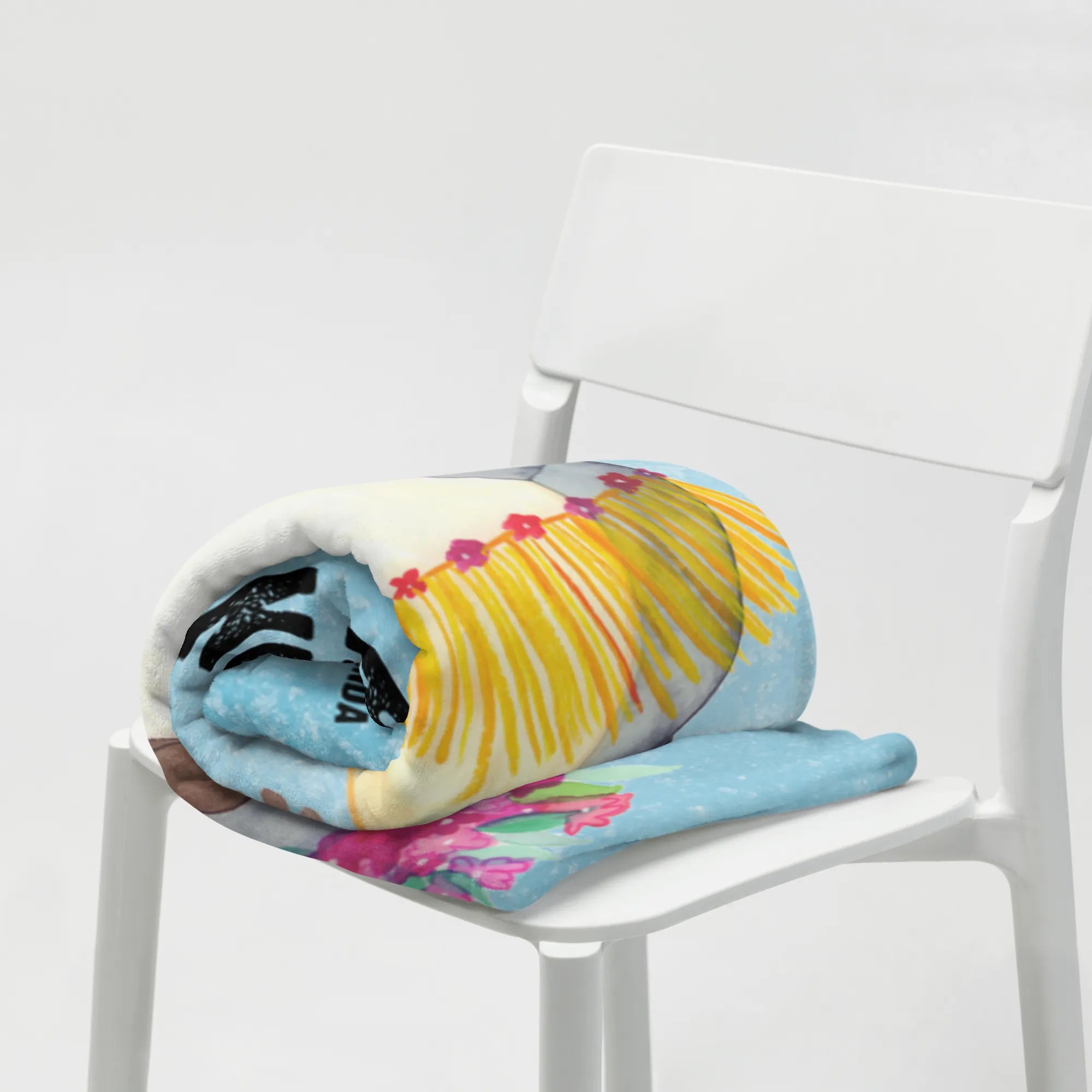 Kocyk dla niemowląt Pingwin z Kokosem - z napisem - lodowoniebieski