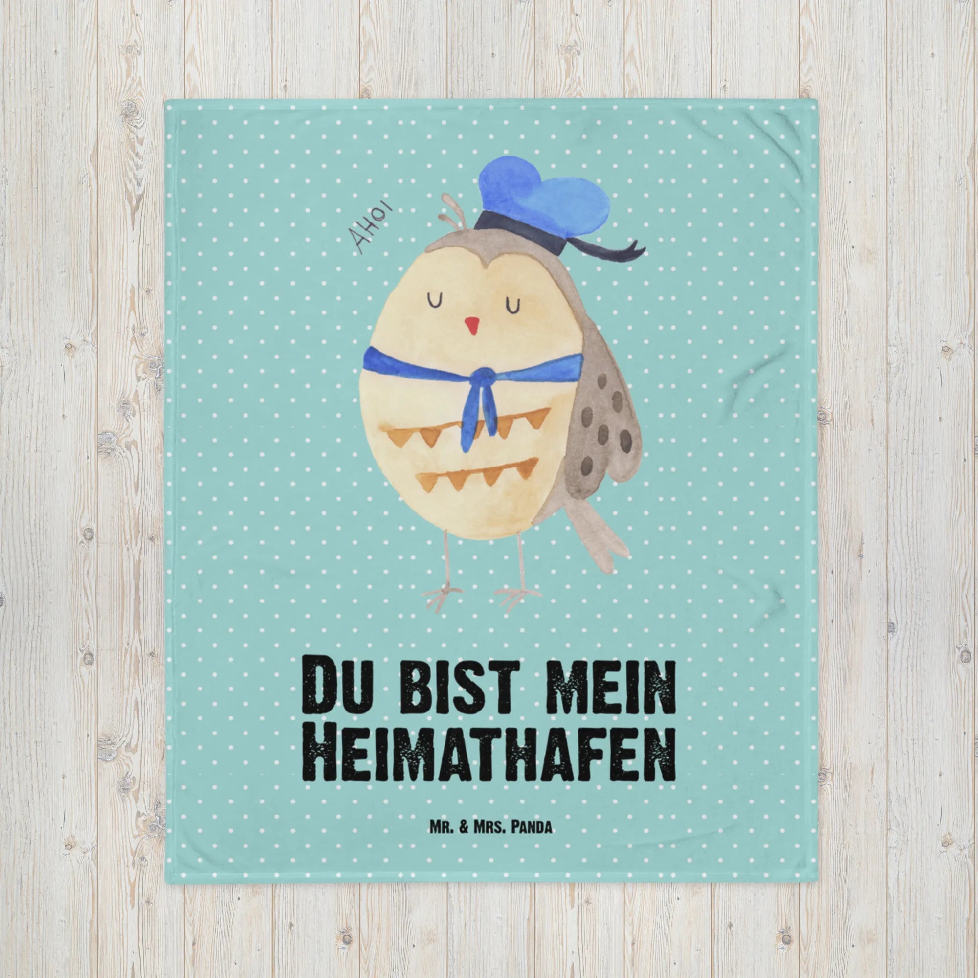 Kocyk dla niemowląt sowa Marynarz - z napisem - Weiß