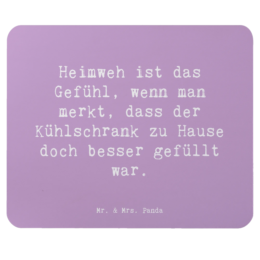 Das Mauspad mit dem süßen Motiv "Heimweh" von Mr. & Mrs. Panda ist der perfekte Begleiter für deinen Arbeitsplatz oder das Homeoffice! Wenn du die liebevollen Worte "Heimweh ist das Gefühl, wenn man merkt, dass der Kühlschrank zu Hause doch besser gefüllt war." liest, wirst du gleich an all die schönen Momente denken, die du mit deinen Liebsten verbracht hast. Das Mauspad kombiniert nützliche Funktionalität mit einem Hauch von Nostalgie und sorgt für gute Laune während deiner Arbeit.