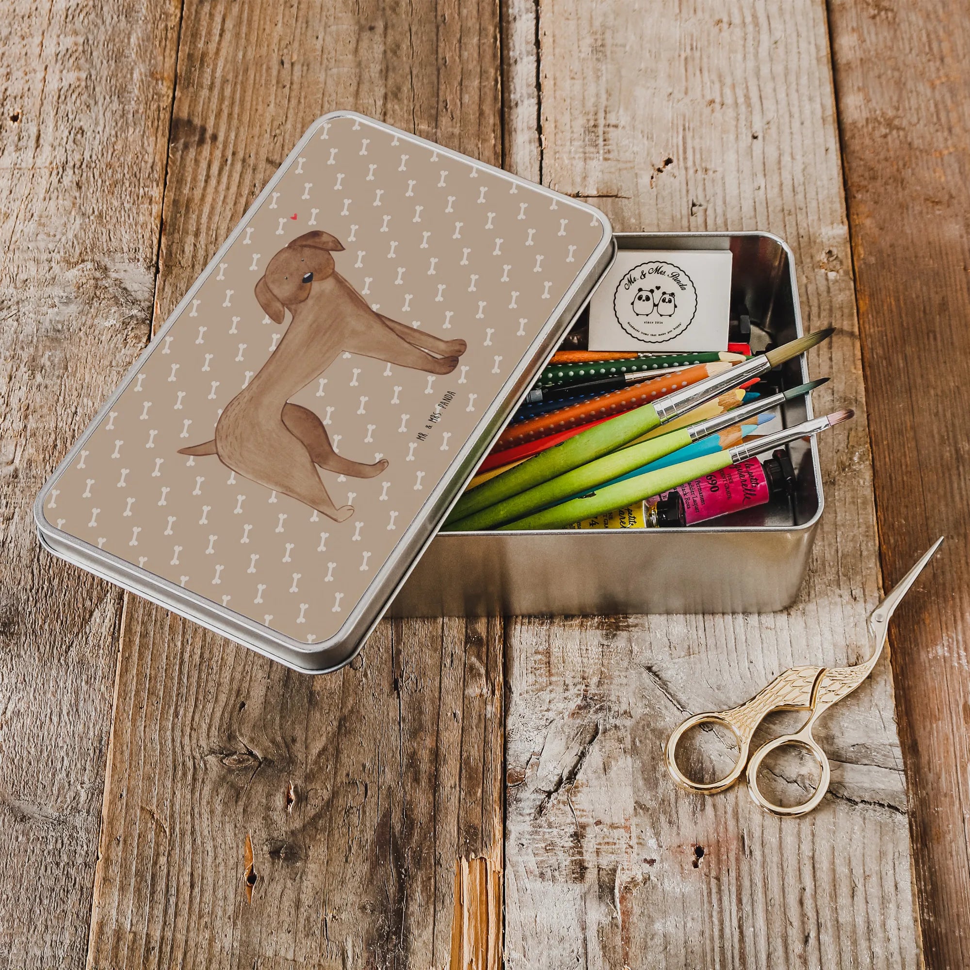 Metalowa puszka pies Dog niemiecki - z napisem