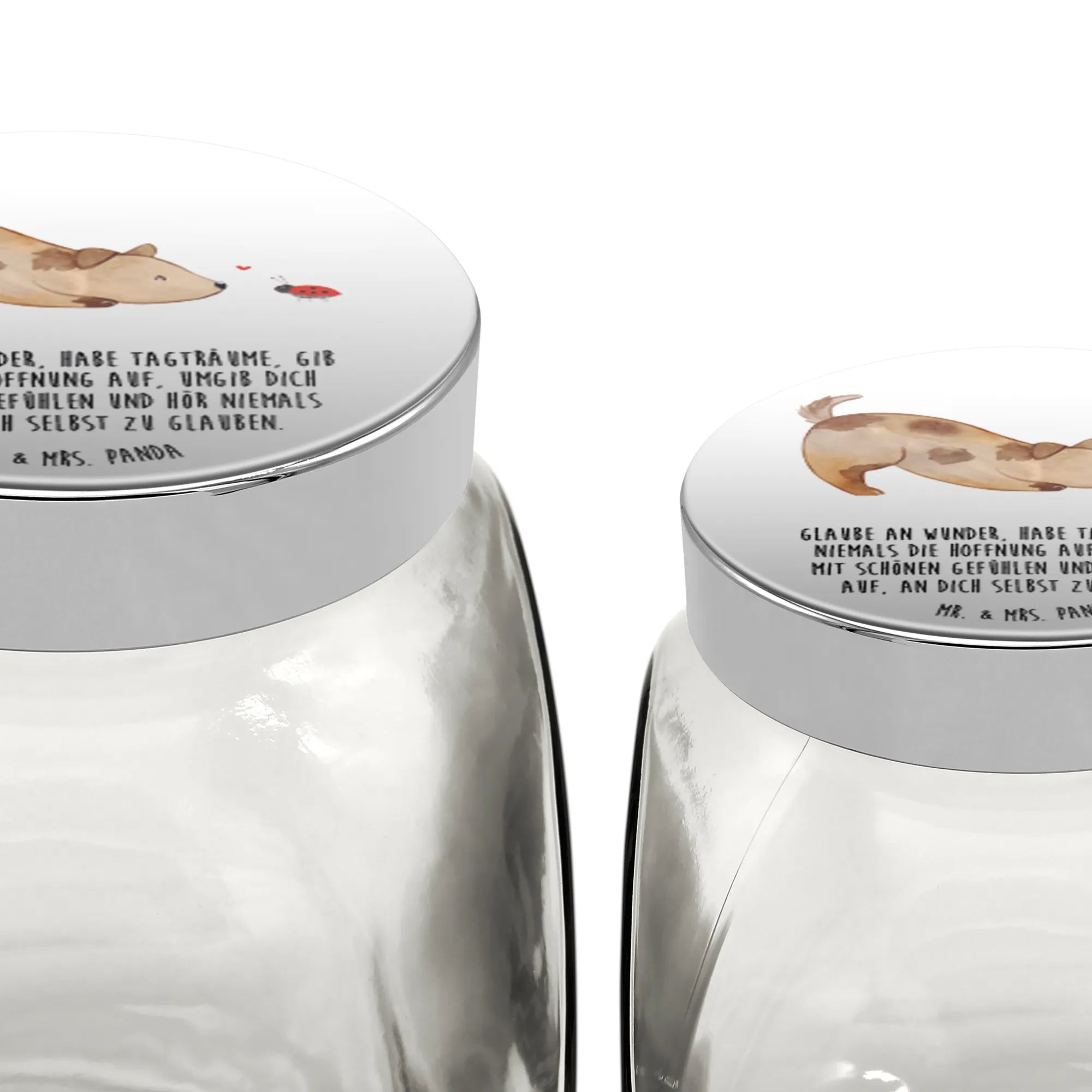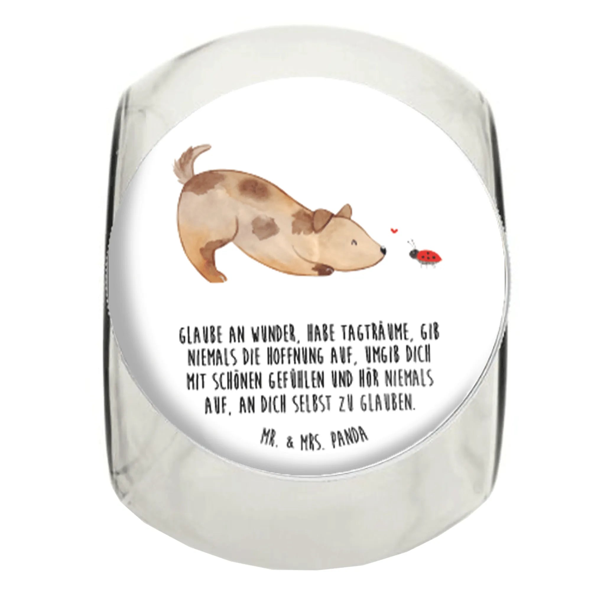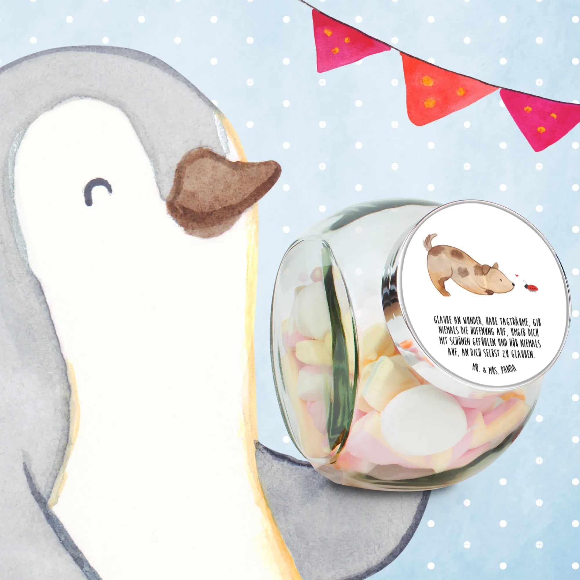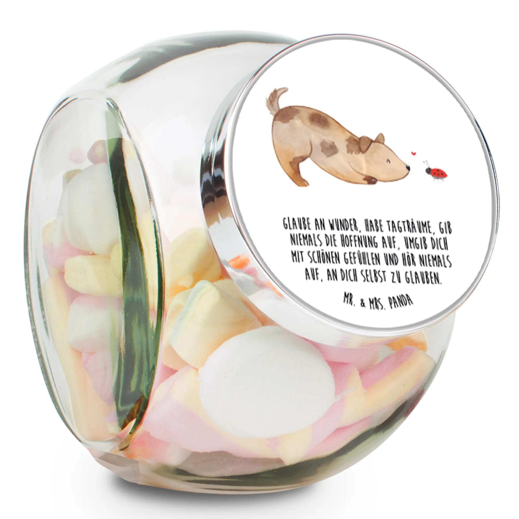 Das wunderschöne Bonbonglas mit dem Motiv "Hund Marienkäfer" aus der exklusiven Hunde Kollektion von Mr. & Mrs. Panda ist das perfekte Geschenk für alle Tierliebhaber und Hundebesitzer. Wie oft hast du schon darüber nachgedacht, wie du deine Süßigkeiten, Kekse oder Gewürze stilvoll aufbewahren kannst? Mit diesem liebevoll gestalteten Vorratsglas ist das jetzt möglich!