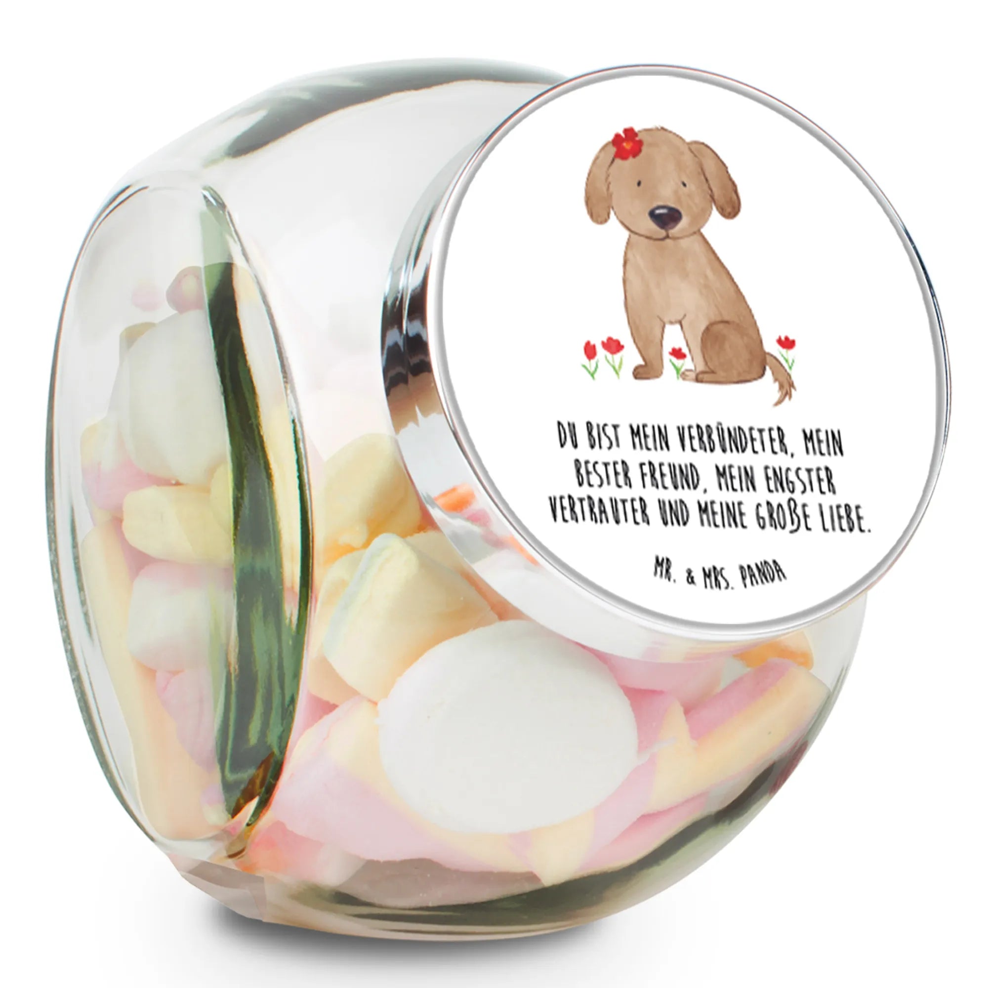 Suchst du nach dem perfekten Geschenk für einen Hundeliebhaber? Das wunderschöne Bonbonglas mit dem zauberhaften Motiv "Hund Hundedame" aus unserer Hunde Kollektion ist die ideale Wahl!