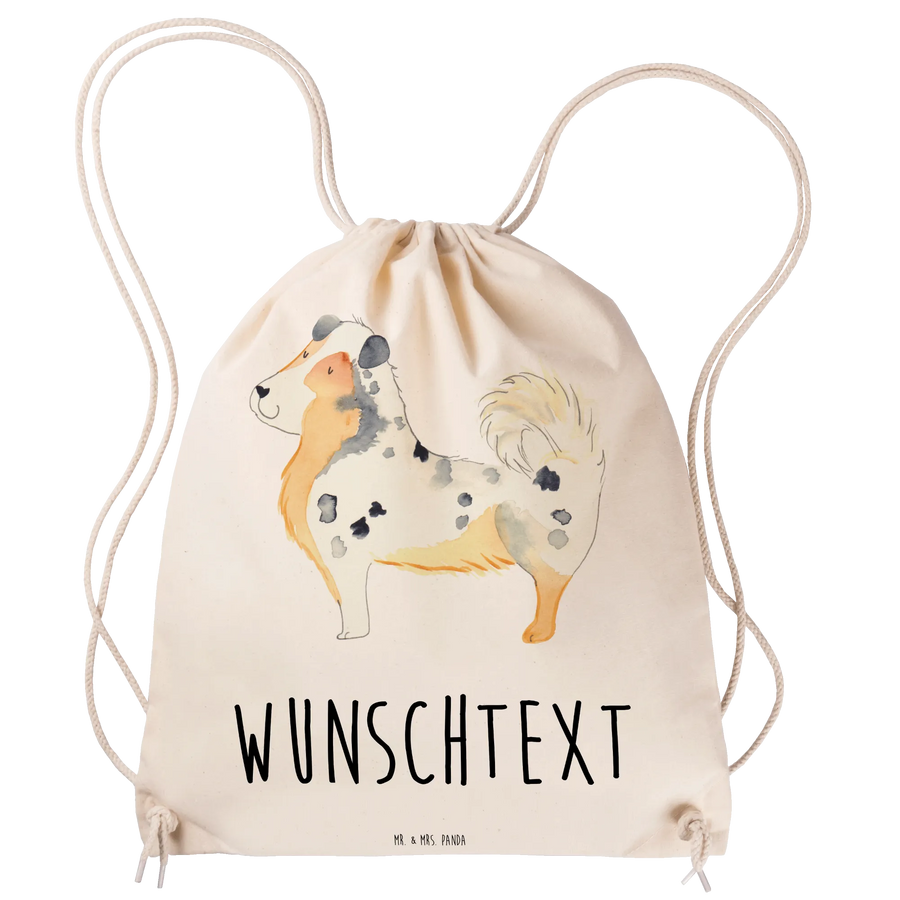 Wenn du auf der Suche nach einem besonderen Geschenk für einen Hundeliebhaber bist, dann ist unser personalisierter Sportbeutel mit dem süßen Australien Shepherd Motiv genau das Richtige!