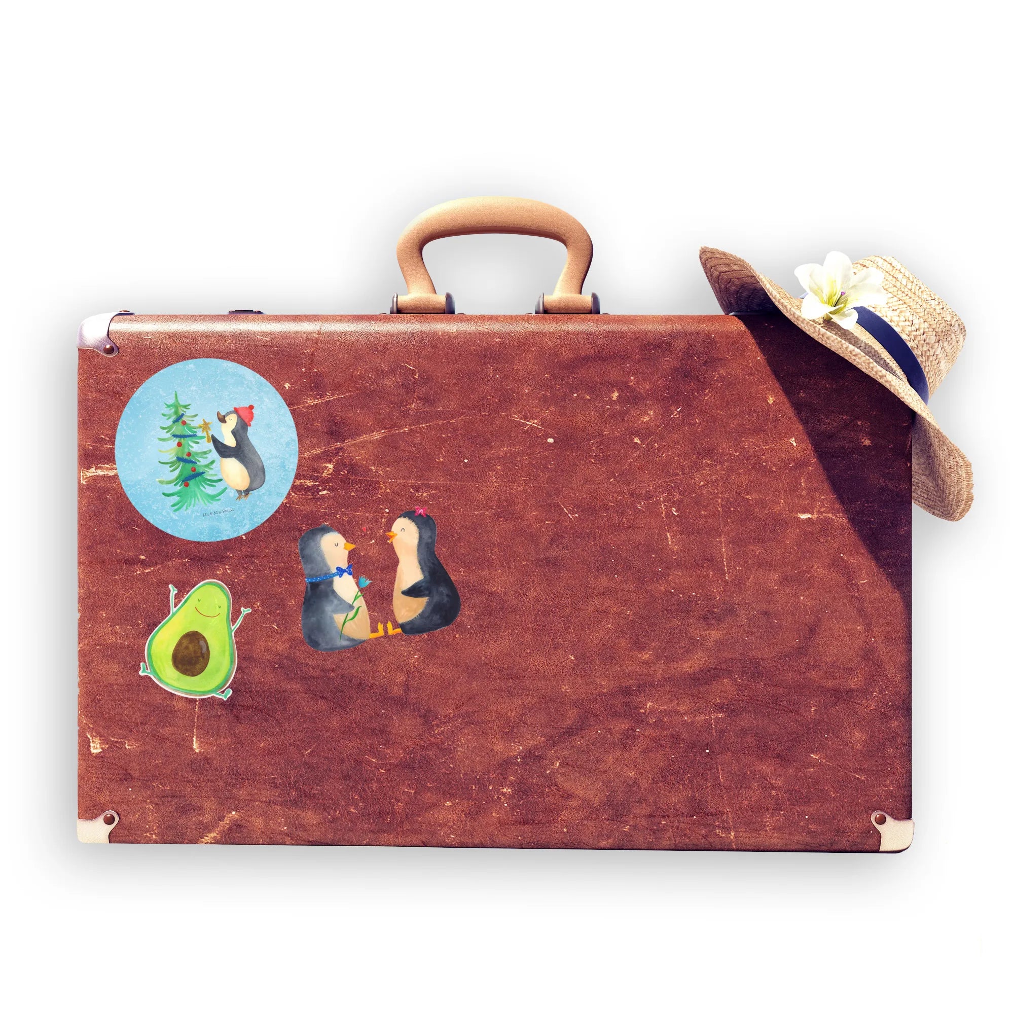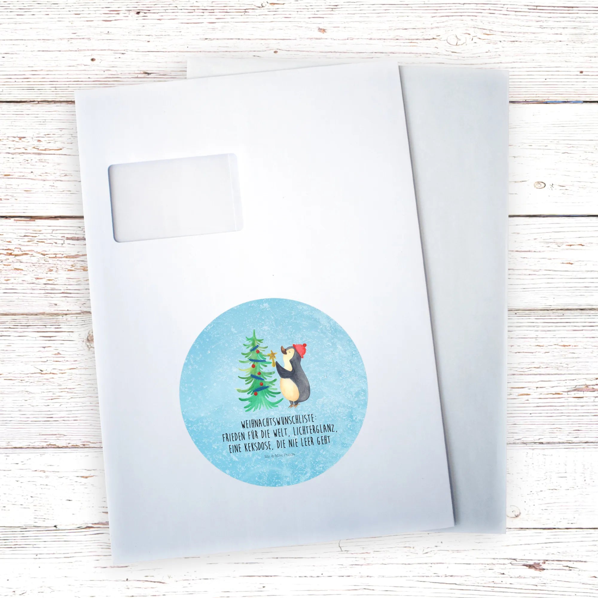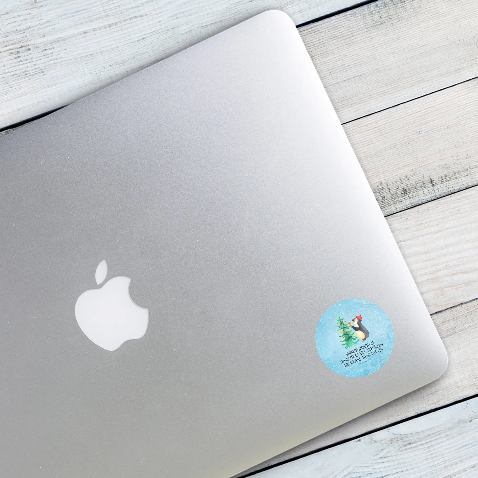 120mm okrągła naklejka Pingwin choinka - 80mm Rund Aufkleber - z napisem - biały