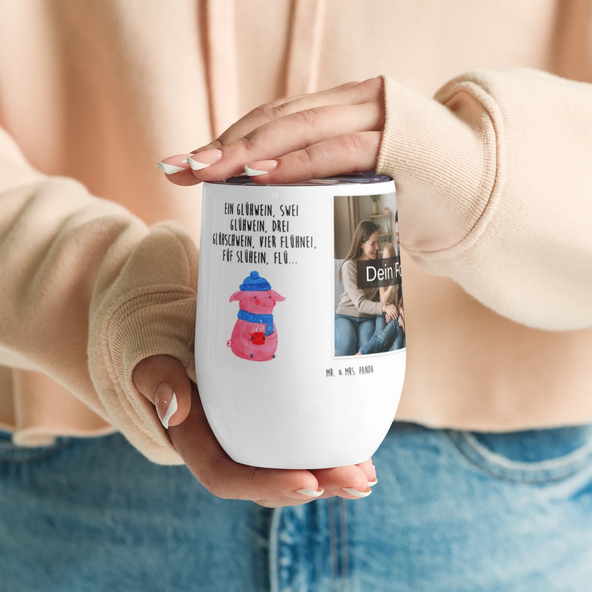 Spersonalizowany kubek do wina ze zdjęciem Świnka grzane wino