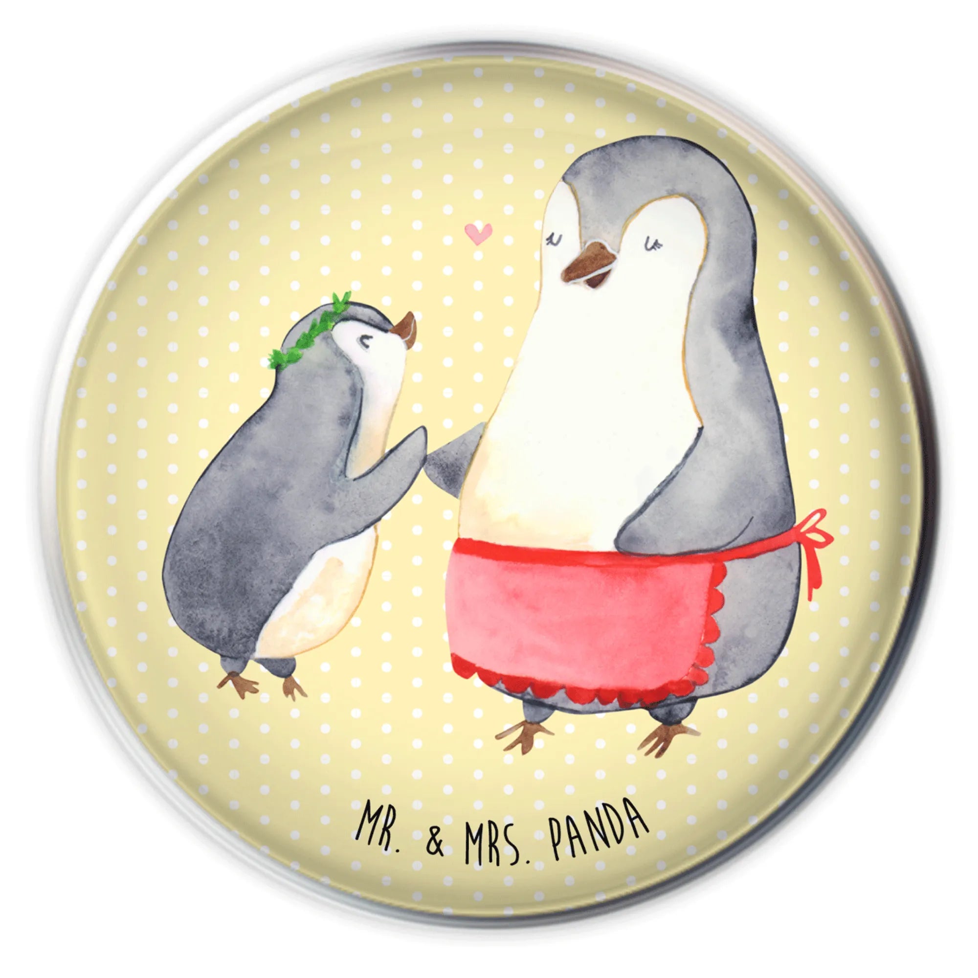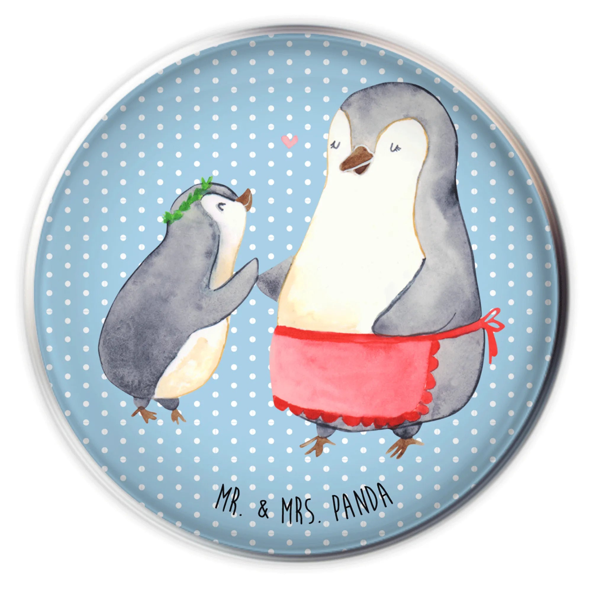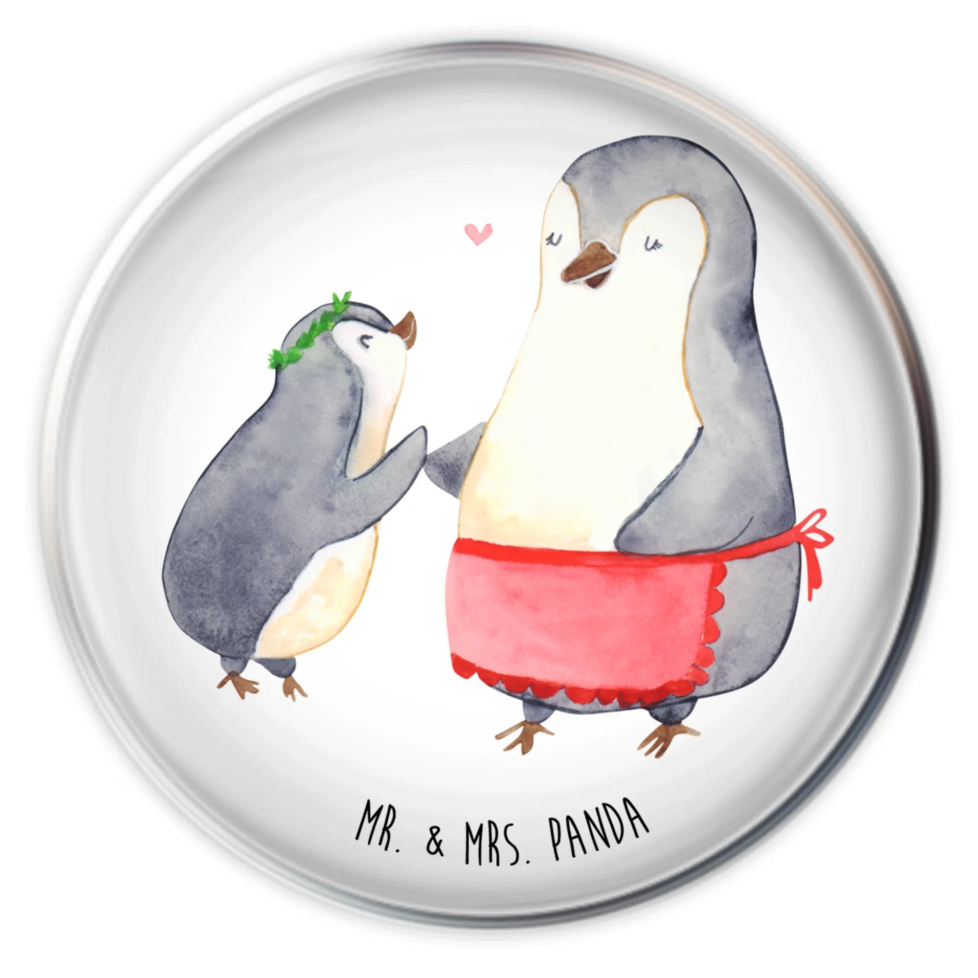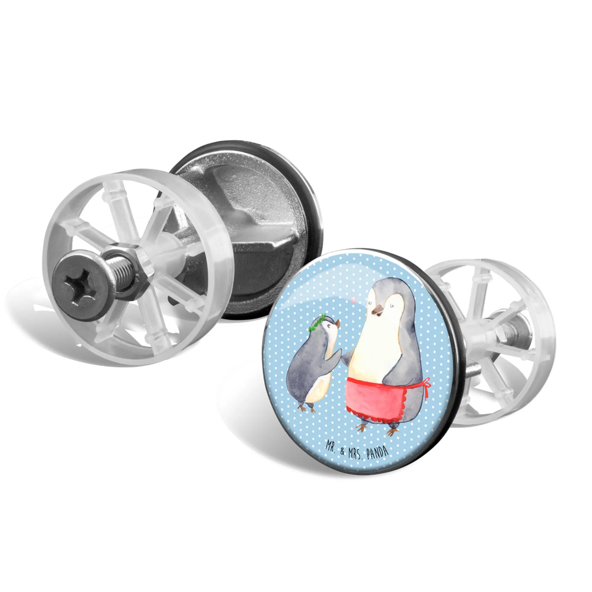 Ein bezaubernder Waschbecken Stöpsel von Mr. & Mrs. Panda – das Motiv „Pinguin mit Kind“ bringt liebevolle Stimmung in dein Badezimmer. Die Szene zeigt eine fürsorgliche Mama-Pinguin mit roter Schürze und ihr Kind mit grünem Kranz, verbunden durch ein kleines Herz. Perfekt als Geschenk für Mama, Mutti oder als Muttertagsüberraschung.