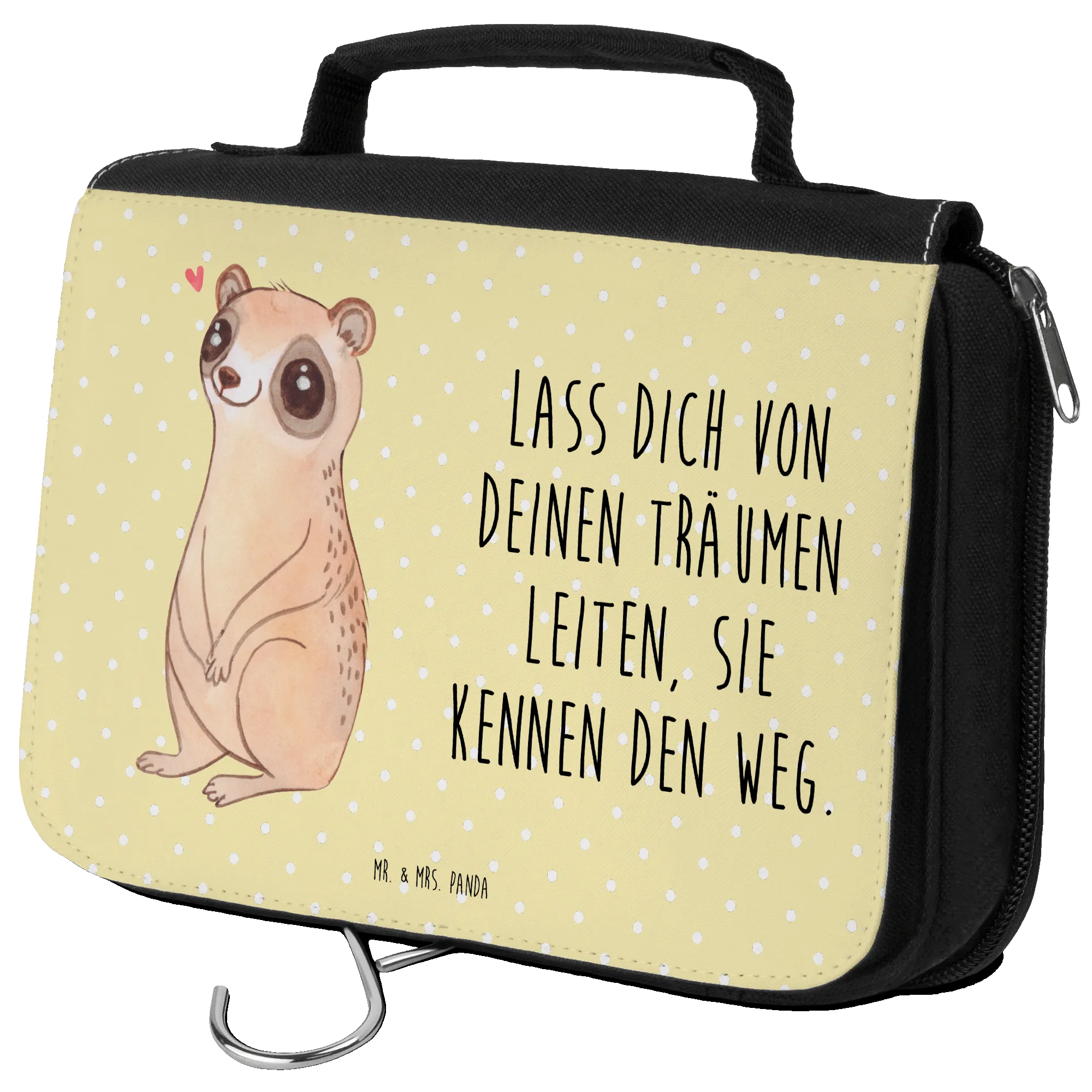 Mit dem Spruch "Lass dich von deinen Träumen leiten, sie kennen den Weg" inspiriert er dazu, die eigenen Träume zu verfolgen. Verschenke Freude, Ordnung und ein Stückchen Glück mit dem schönen Plumplori Kulturbeutel von Mr. & Mrs. Panda.