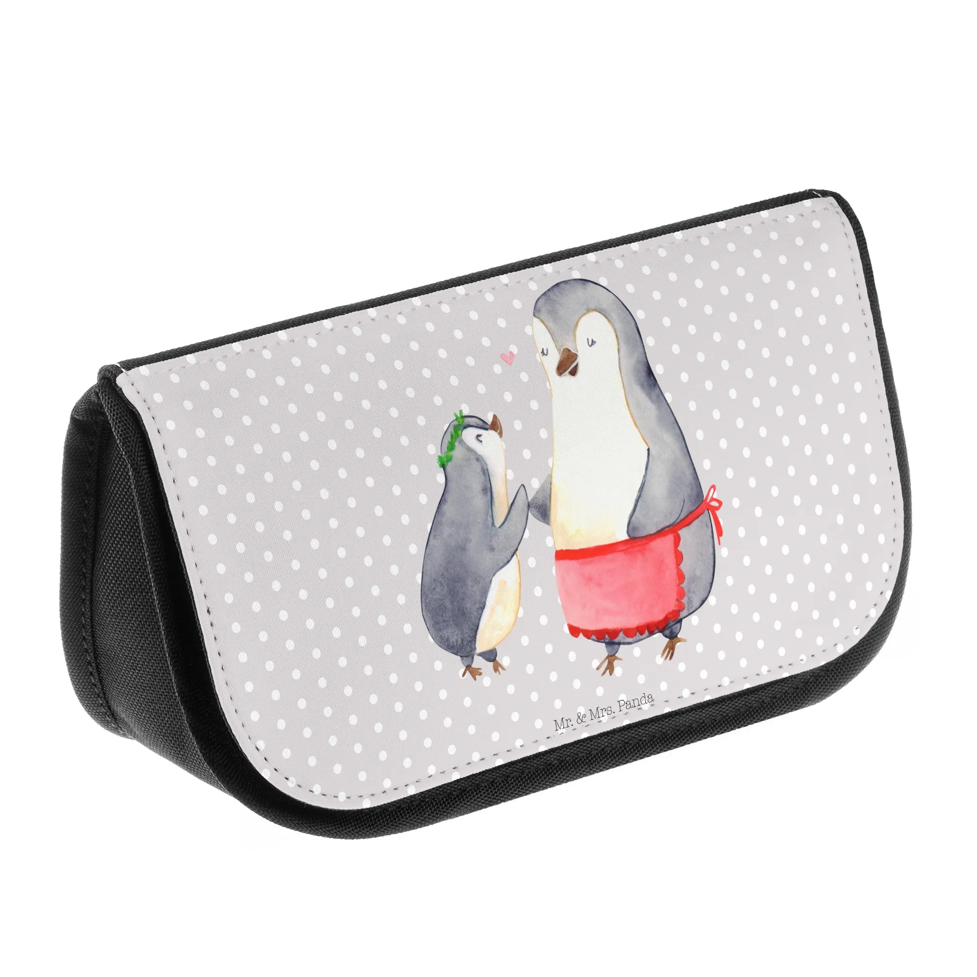 Kosmetyczka Pingwin z dzieckiem - z napisem - biały