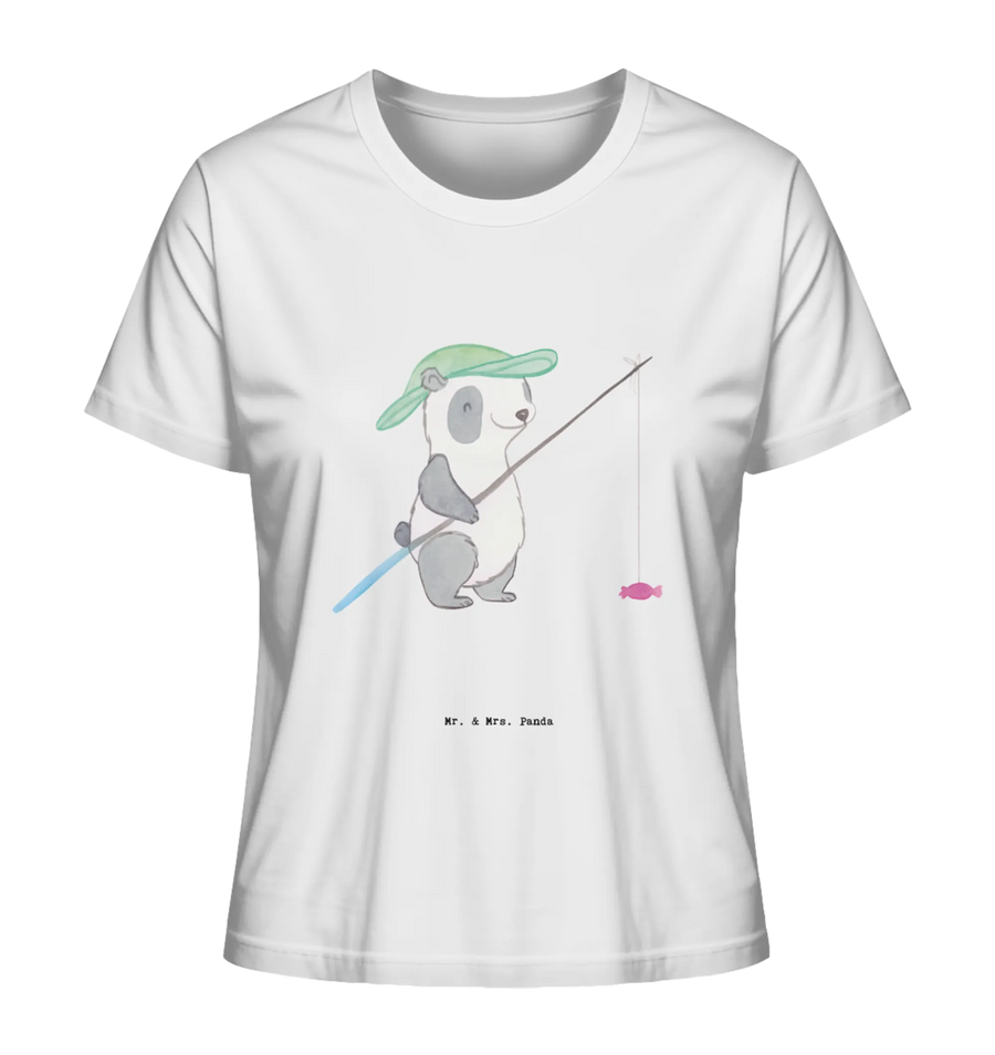 Ein zauberhaftes Shirt Damen von Mr. & Mrs. Panda: Das „Panda Angeln Tage“ Motiv zeigt einen niedlichen Panda mit großem Fischerhut und einer Angel – perfekt für alle, die Angeln lieben oder einem Hobbyangler eine Freude machen wollen. Dieses Damenshirt verbindet niedliches Design mit Alltagstauglichkeit und macht sowohl als Freizeitshirt Damen als auch als T-Shirt Damen eine tolle Figur.