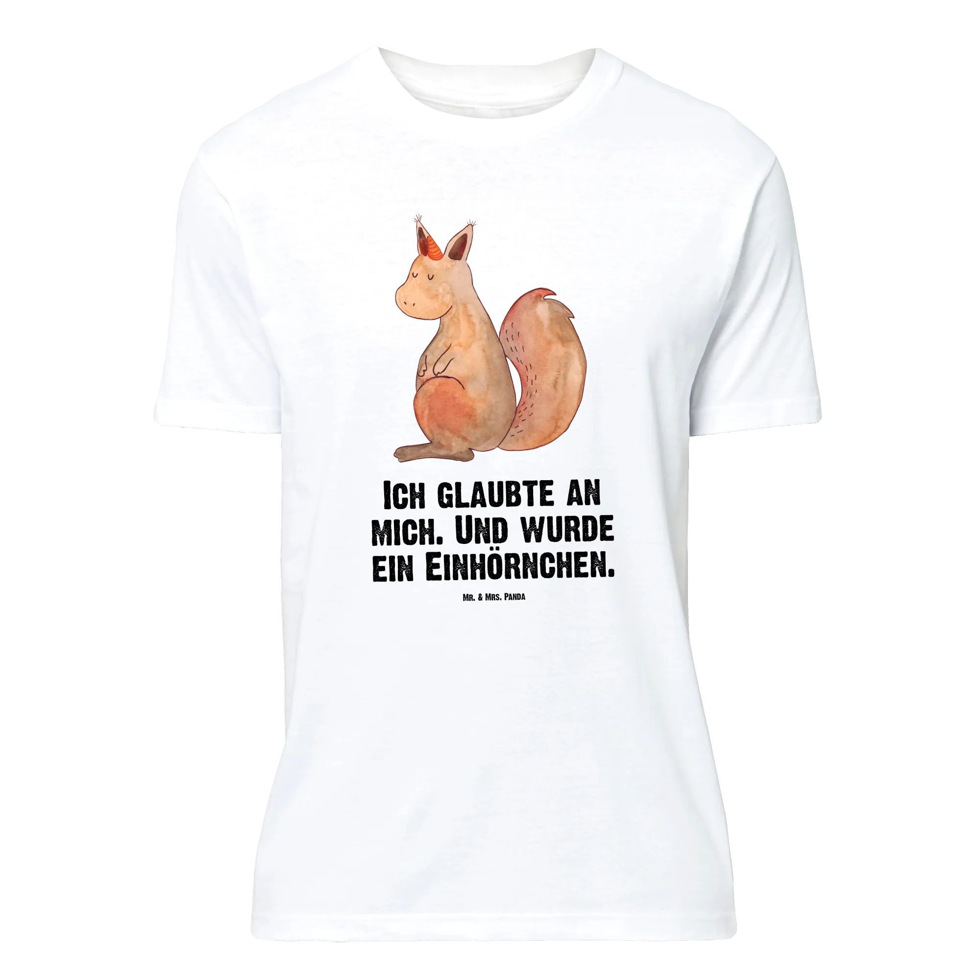 Perfekt zum Kombinieren: Trage das Einhörnchen Glaube T-Shirt zu Jeans, Rock oder Leggings. Es ergänzt deine Einhorn Deko und Accessoires aus der Einhorn Kollektion von Mr. & Mrs. Panda und ist ein tolles Statement-Piece für alle, die niedliche, handgezeichnete Motive lieben.