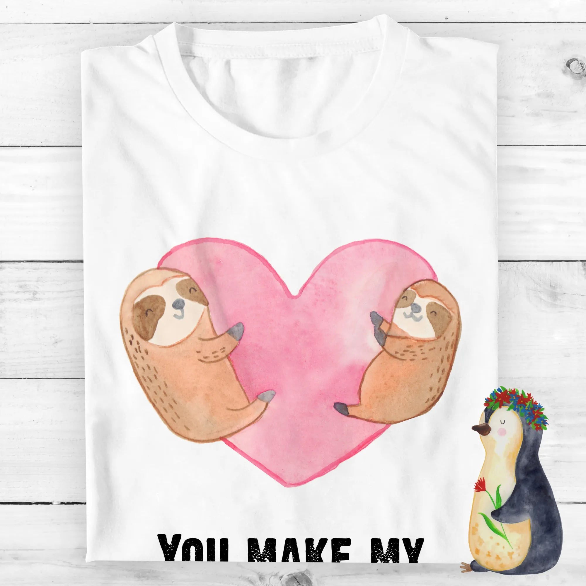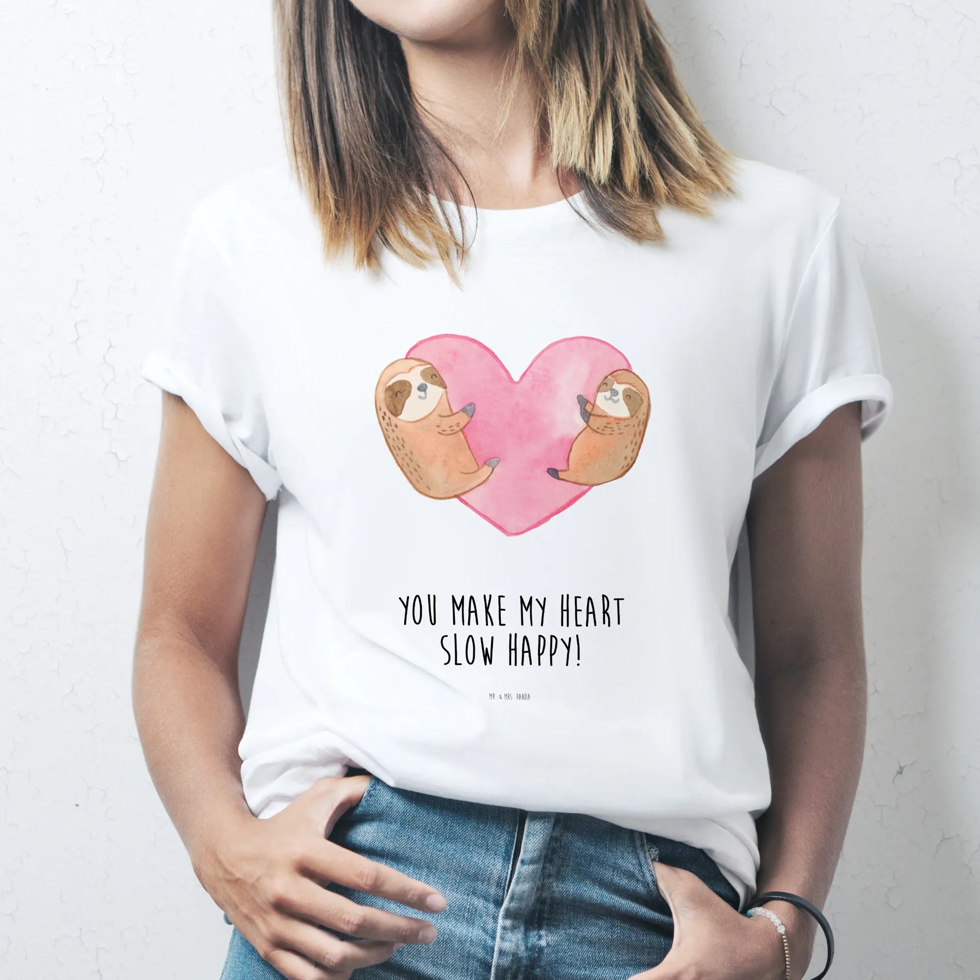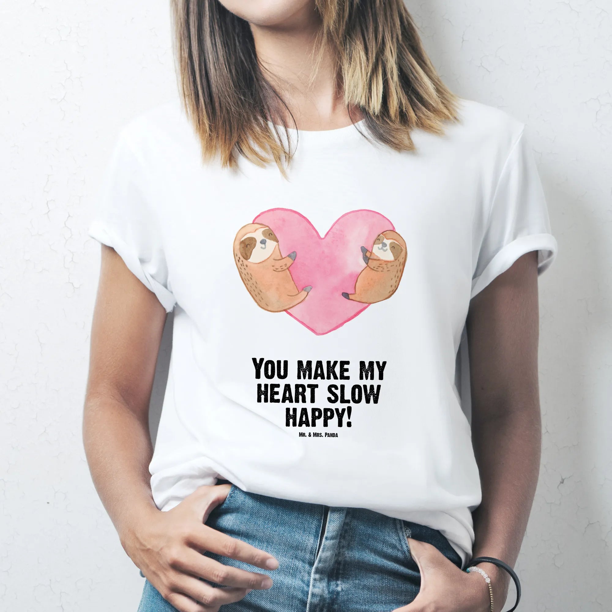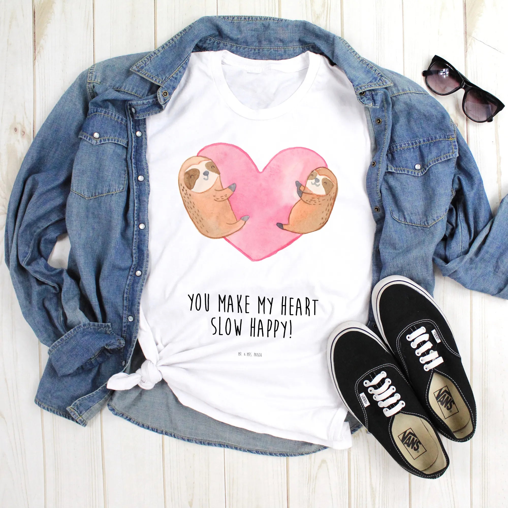 Entdecke das bezaubernde Größe L T-Shirt mit dem zuckersüßen Faultiere Herz Motiv aus der Liebe Kollektion von Mr. & Mrs. Panda! Dieses T-Shirt ist nicht nur ein modisches Statement, sondern auch ein liebevolles Geschenk für alle, die ihre Zuneigung zeigen möchten. Mit dem herzlichen Spruch 'You make my heart slow happy!' unterstreicht es das Gefühl der Verbundenheit und Liebe.