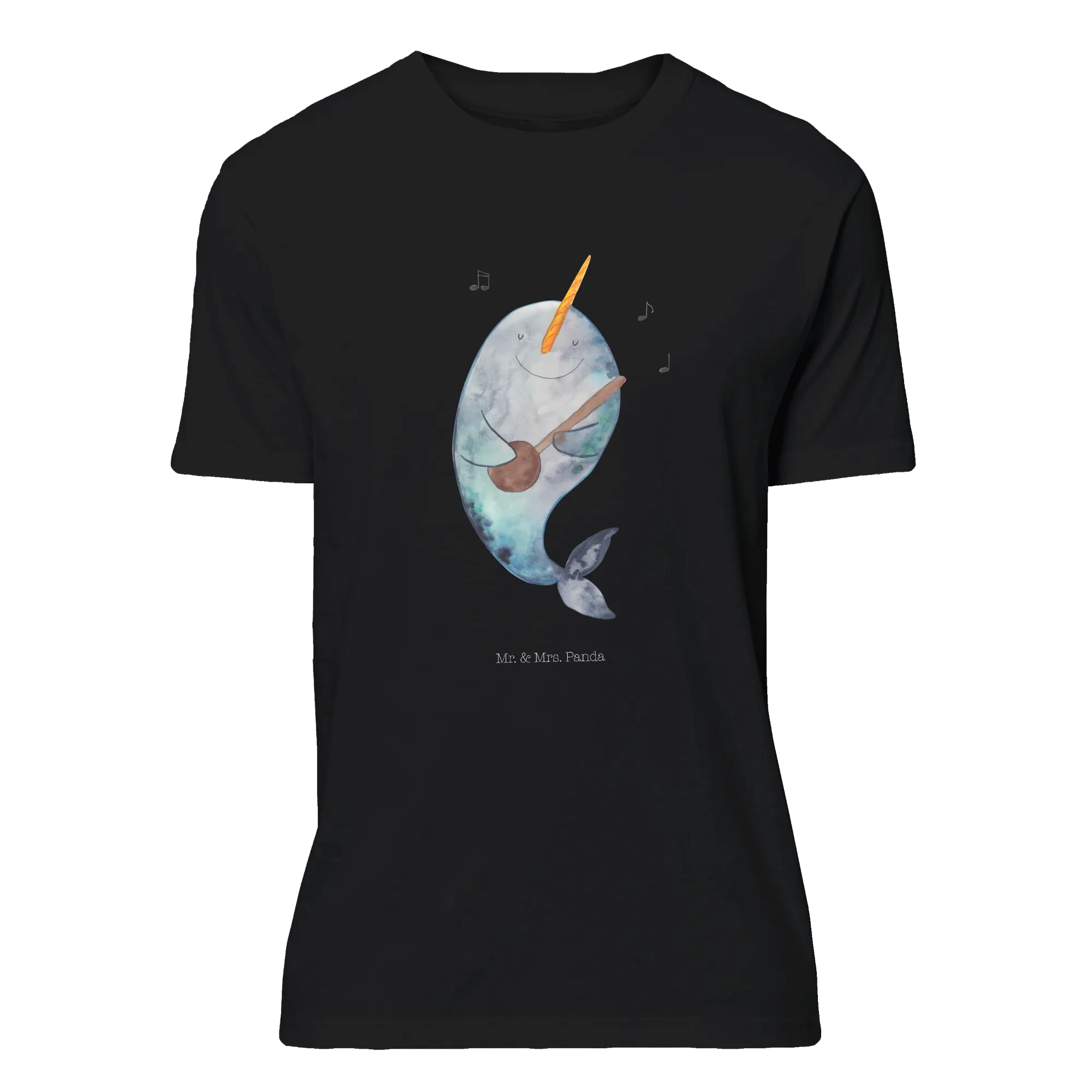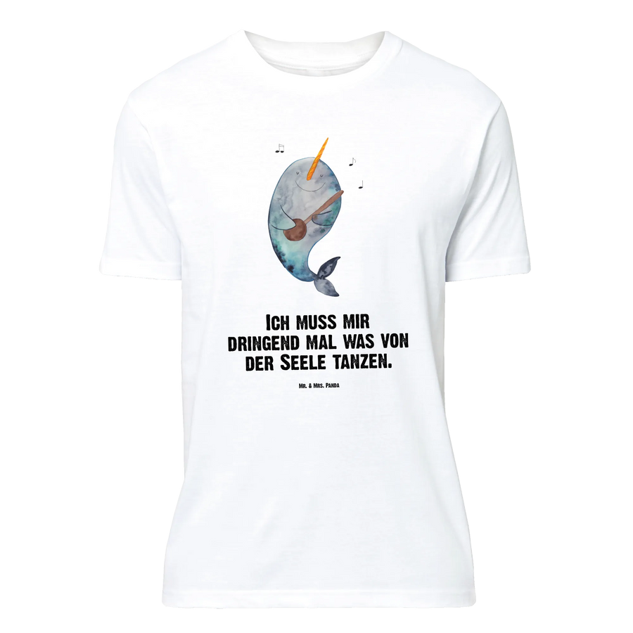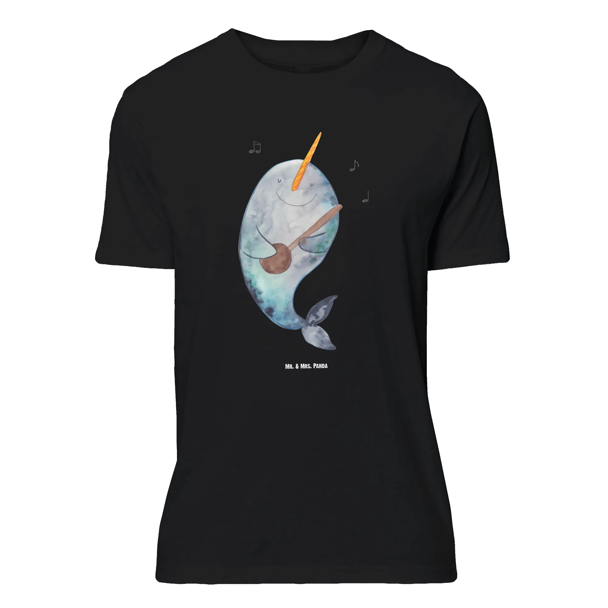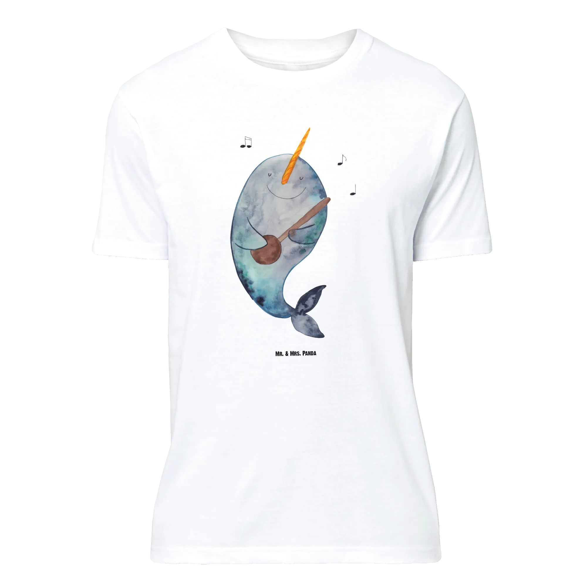Meer, Musik und Freude vereint: Dieses charmante Größe M T-Shirt von Mr. & Mrs. Panda zeigt einen lächelnden Narwal, der auf seiner Gitarre spielt. Der spiralförmige Stoßzahn ragt stolz, der Körper ist in zarten Blau- und Grautönen mit Aquarelleffekten gestaltet und von musikalischen Noten umgeben. Ein maritimer Hingucker aus unserer Meerestiere-Kollektion.