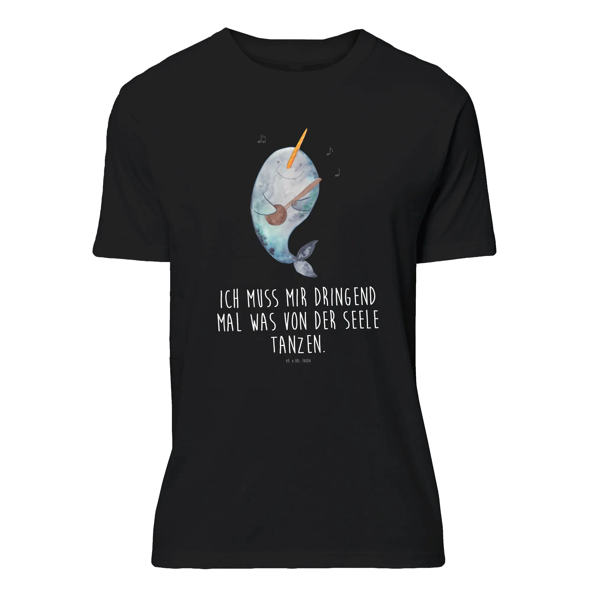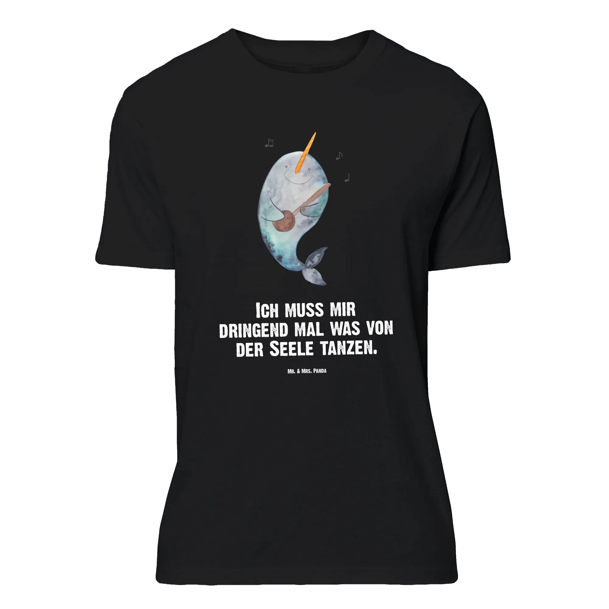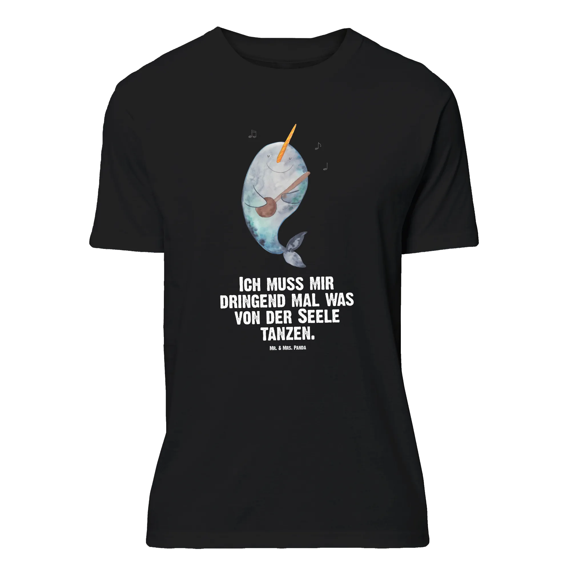 Meer, Musik und Freude vereint: Dieses charmante Größe M T-Shirt von Mr. & Mrs. Panda zeigt einen lächelnden Narwal, der auf seiner Gitarre spielt. Der spiralförmige Stoßzahn ragt stolz, der Körper ist in zarten Blau- und Grautönen mit Aquarelleffekten gestaltet und von musikalischen Noten umgeben. Ein maritimer Hingucker aus unserer Meerestiere-Kollektion.