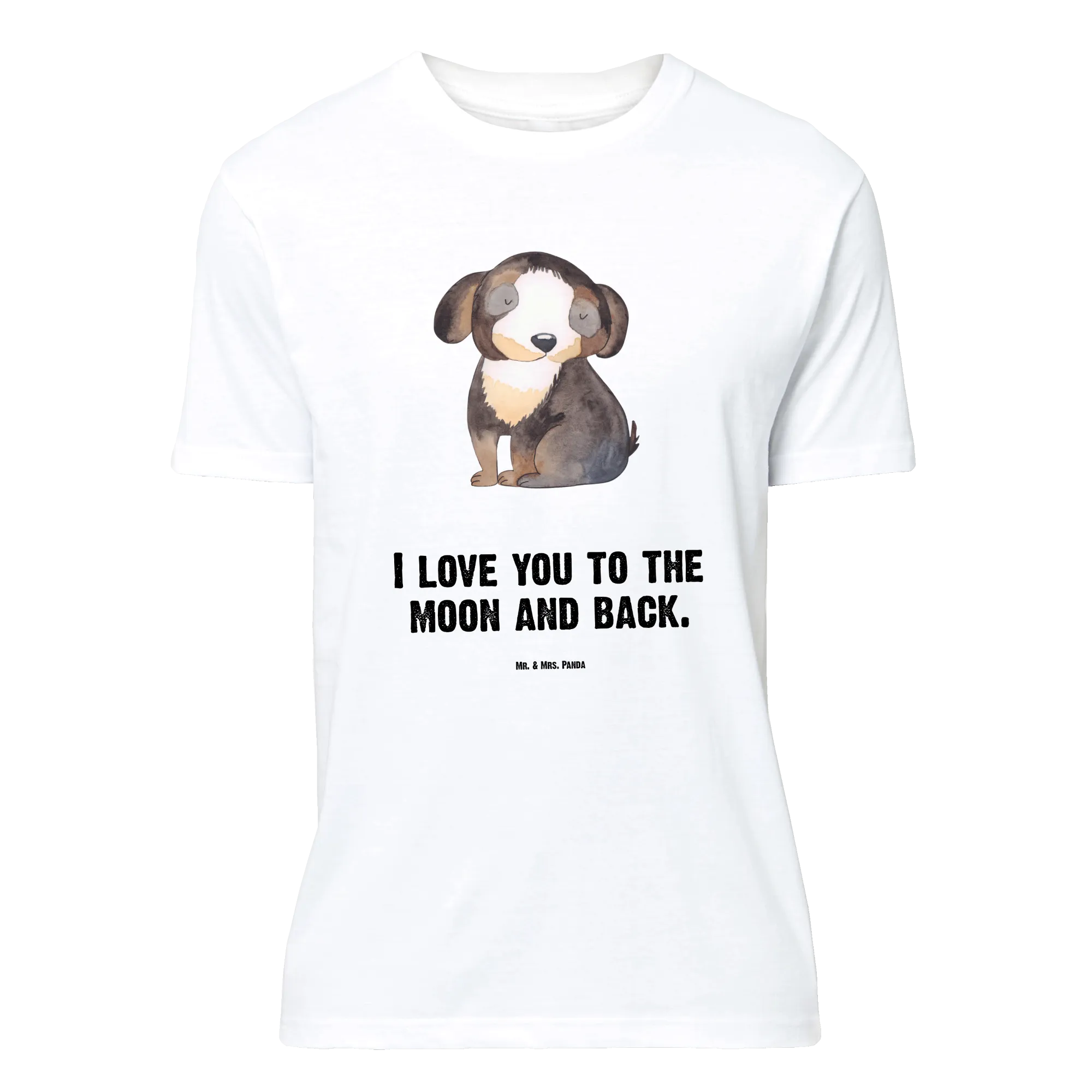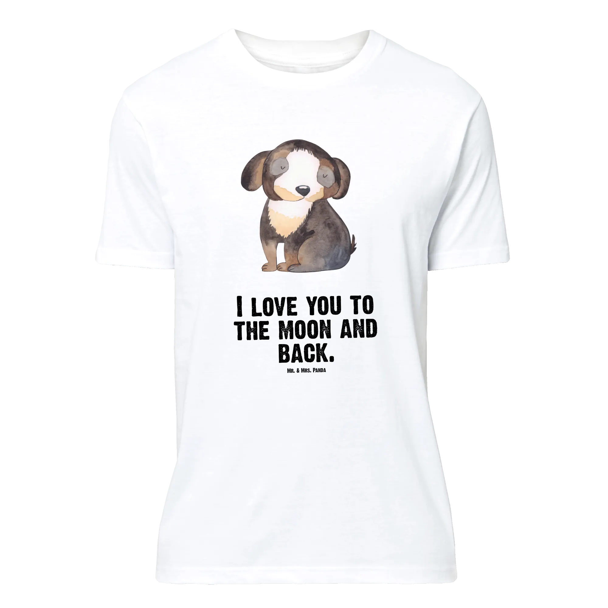 Du suchst etwas Liebevolles, Lustiges und zugleich Stilvolles? Das Mr. & Mrs. Panda Damen T-Shirt Größe S mit dem Motiv „Hund entspannt“ aus unserer Hunde Kollektion ist genau das: ein zauberhaftes Shirt mit einem entspannten schwarz-weiß Hund und dem romantischen Spruch „I love you to the moon and back.“ Dieses besondere Design kombiniert Hundeliebe mit einem Hauch Romantik.