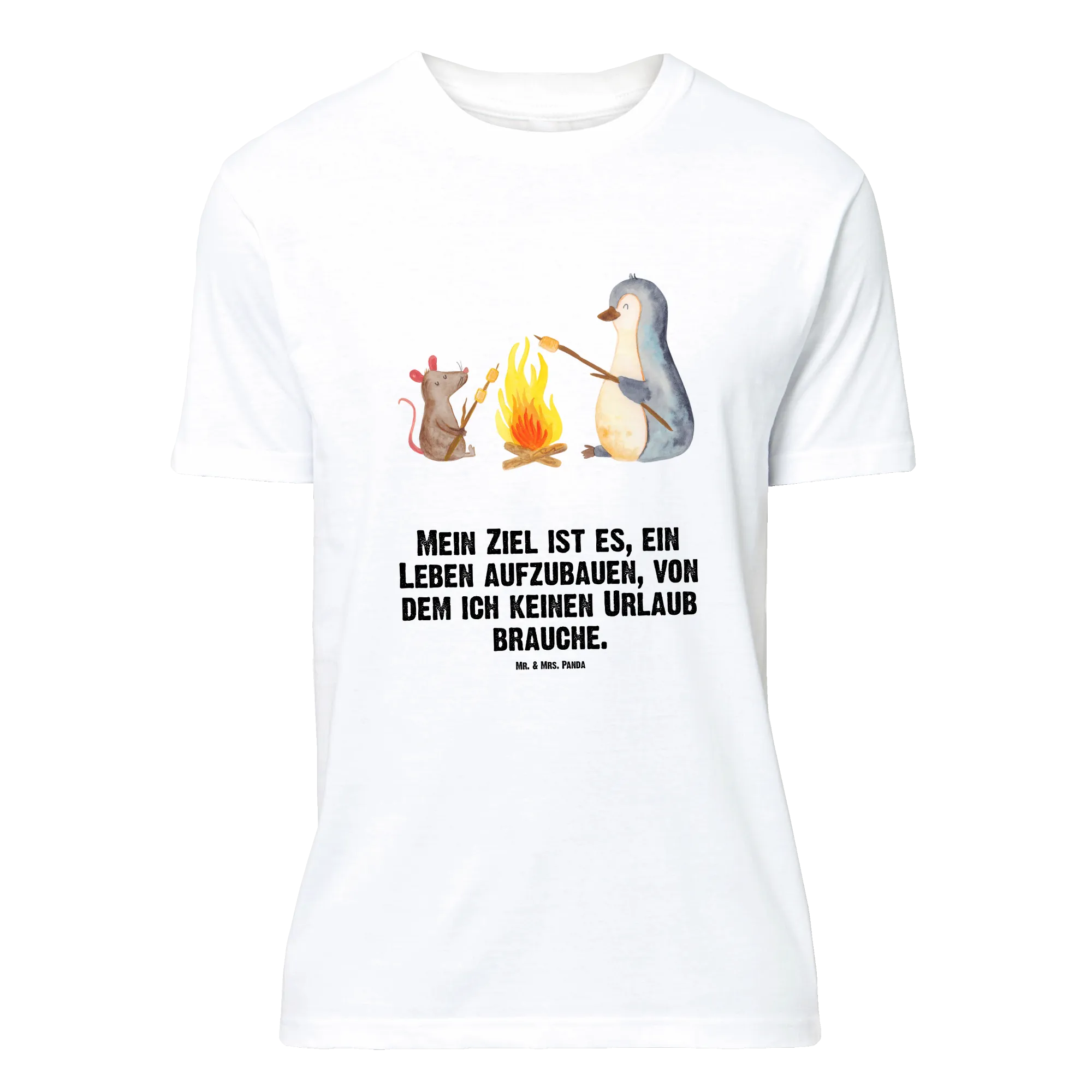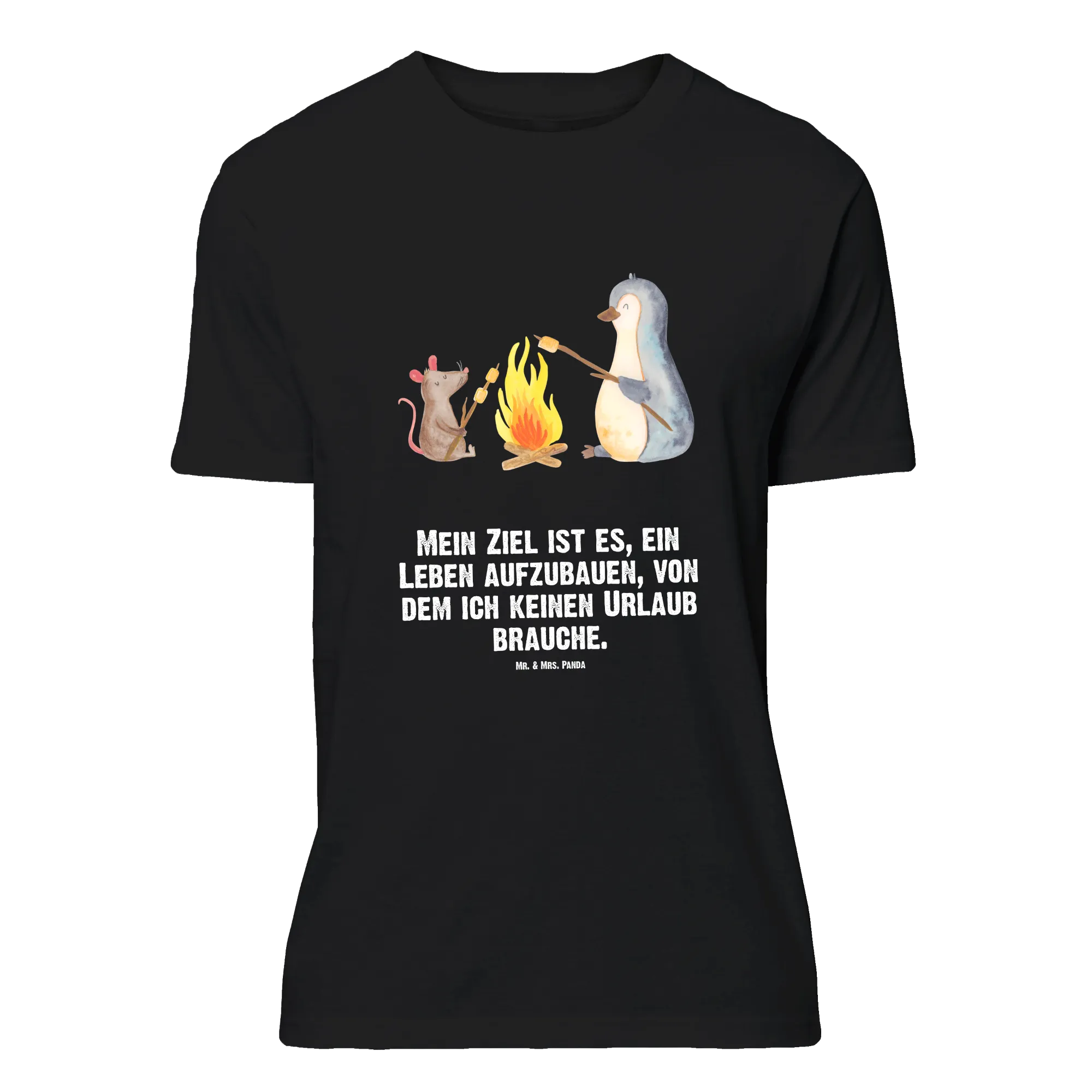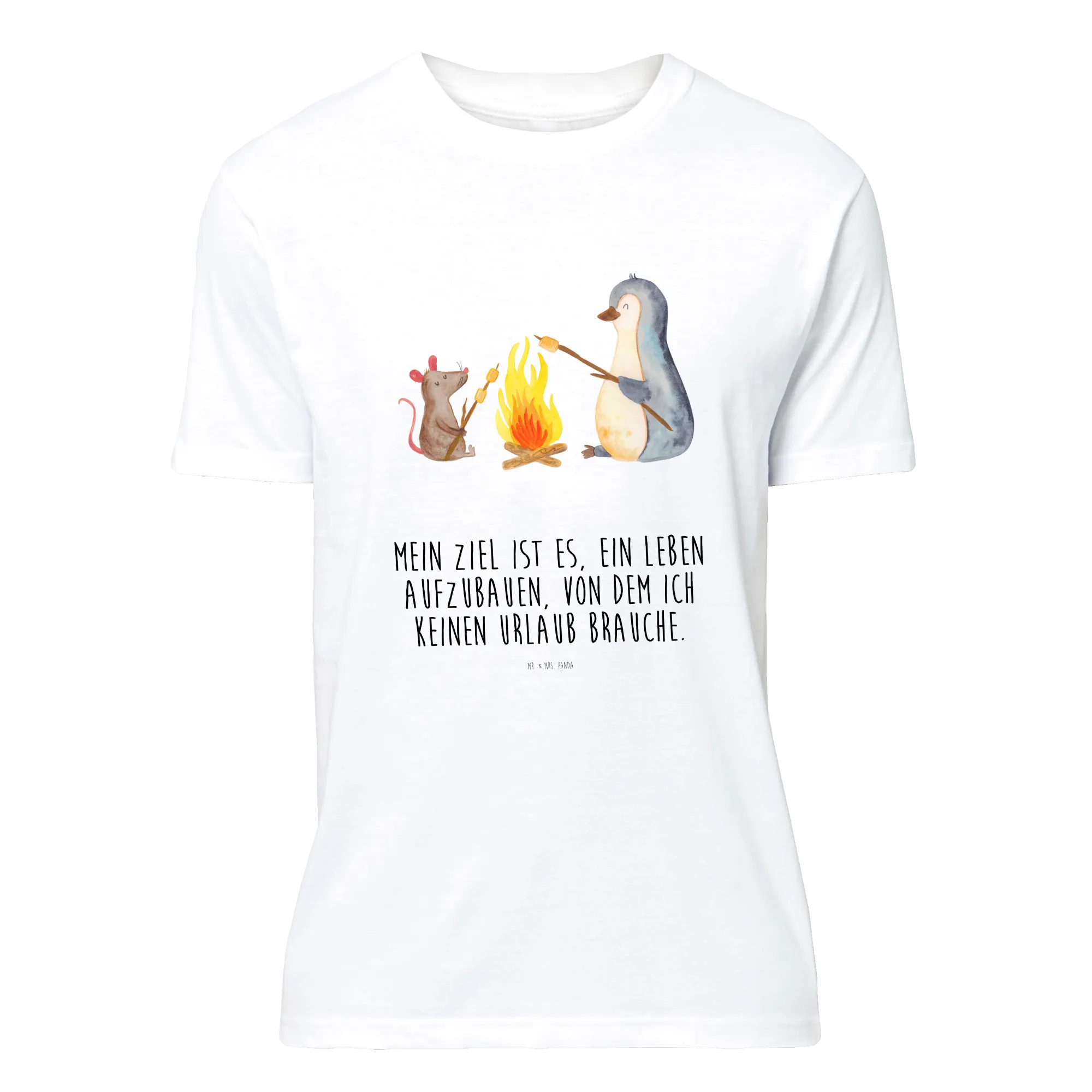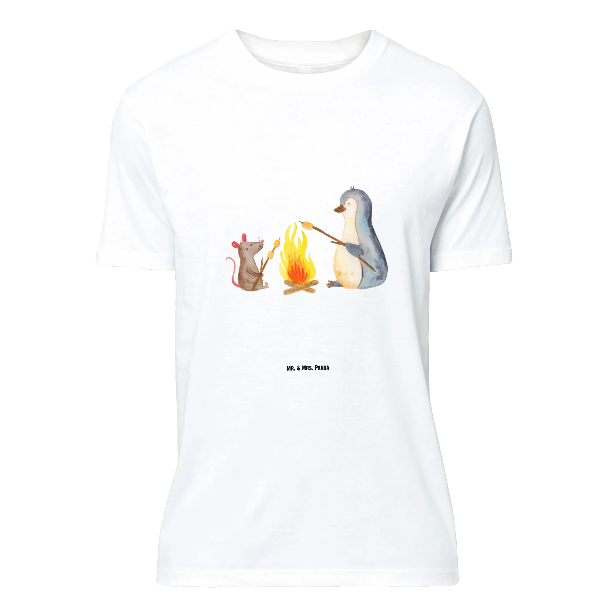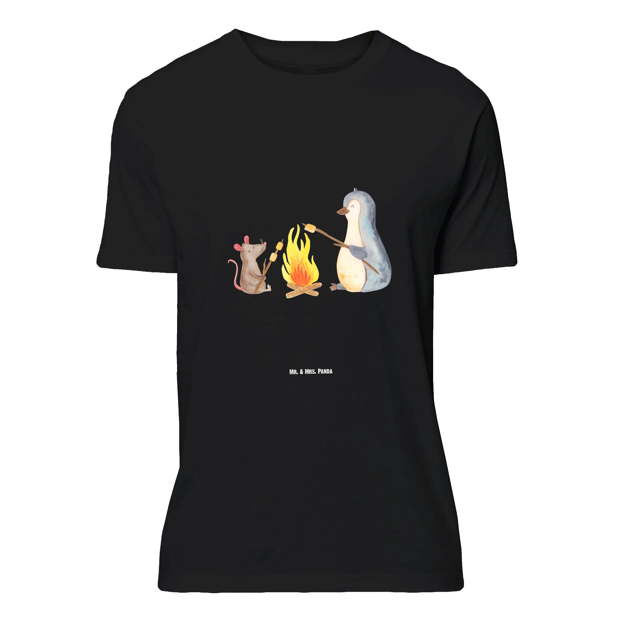 Lieblingsstück aus der Pinguin Kollektion: Unser Mr. & Mrs. Panda T-Shirt mit dem zauberhaften Pinguin Lagerfeuer ist ein echtes Herzensgeschenk. Der niedliche Pinguin sitzt mit einer kleinen Maus am Lagerfeuer und grillt Marshmallows – ein Motiv, das Wärme, Humor und Gemütlichkeit ausstrahlt.