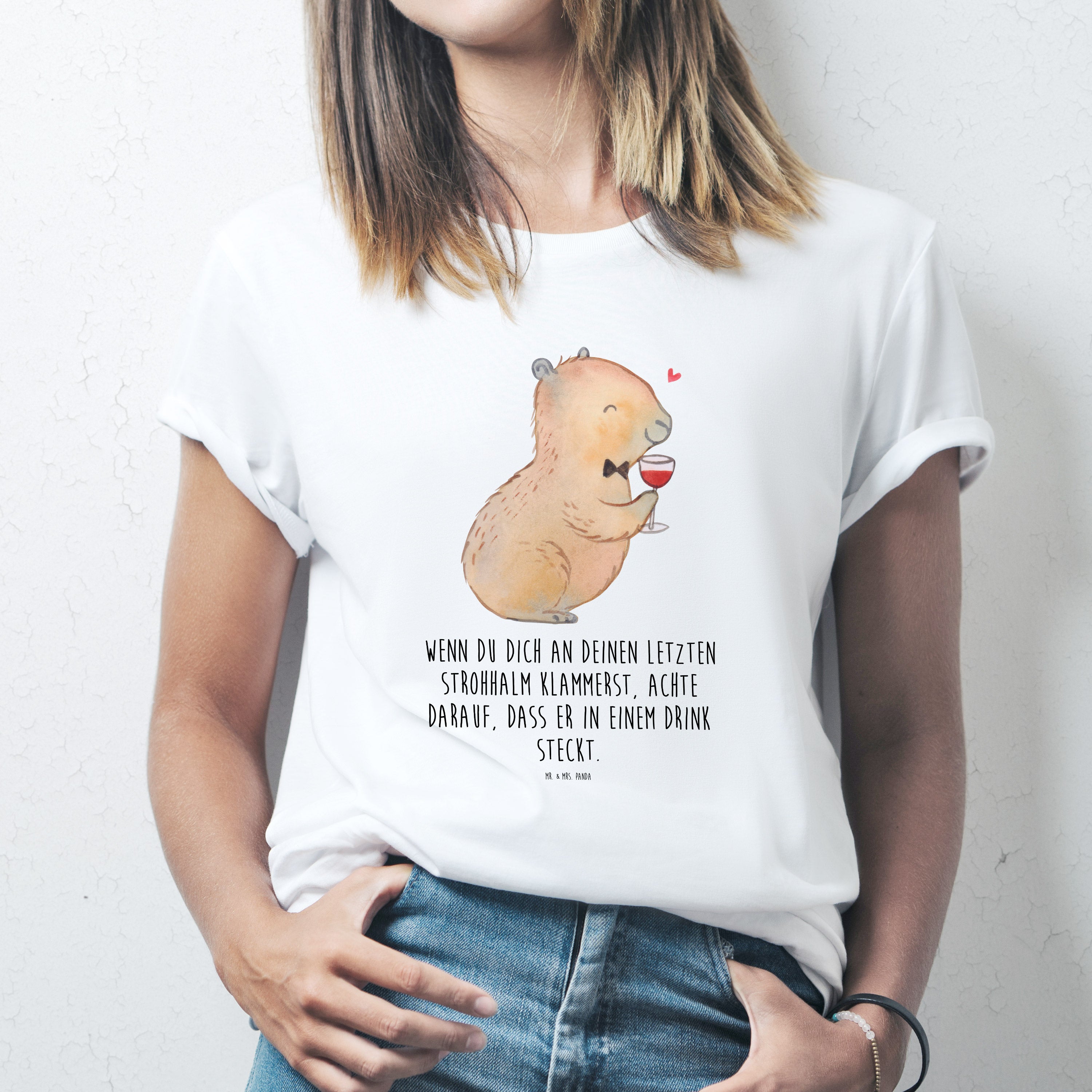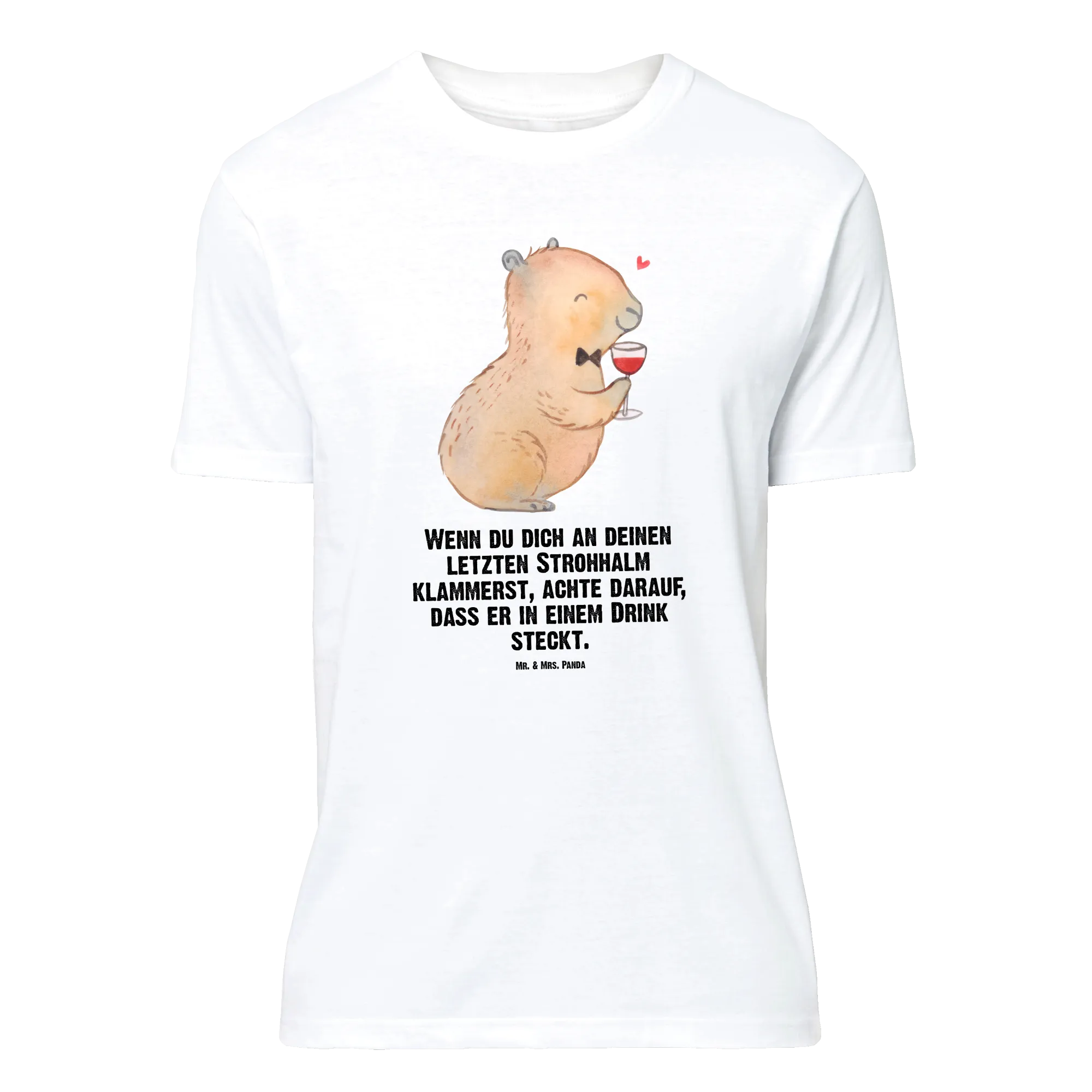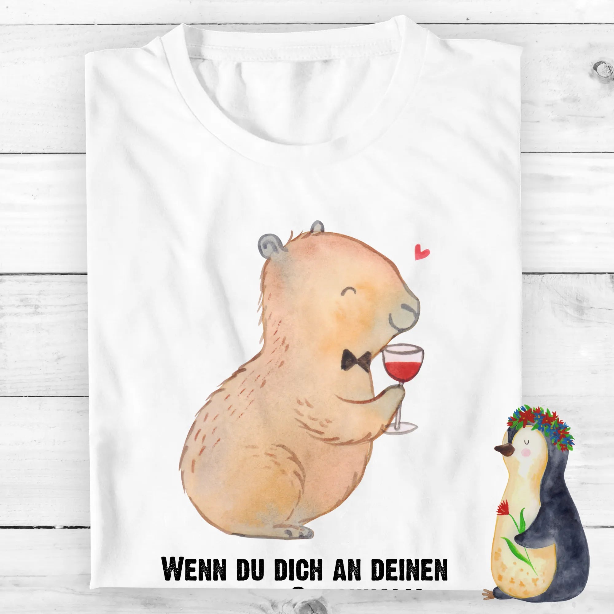 Das Capybara – das adrette Nagetier, das mit einem breiten Lächeln und einer eleganten schwarzen Fliege seine Weinflasche in der Pfote hält, spricht für sich. Mit einem schwebenden Herzen über sich zeigt es die pure Freude am Genießen. Die liebevoll handgezeichnete Aquarell-Illustration sorgt dafür, dass du mit diesem Shirt immer für gute Laune sorgen kannst.